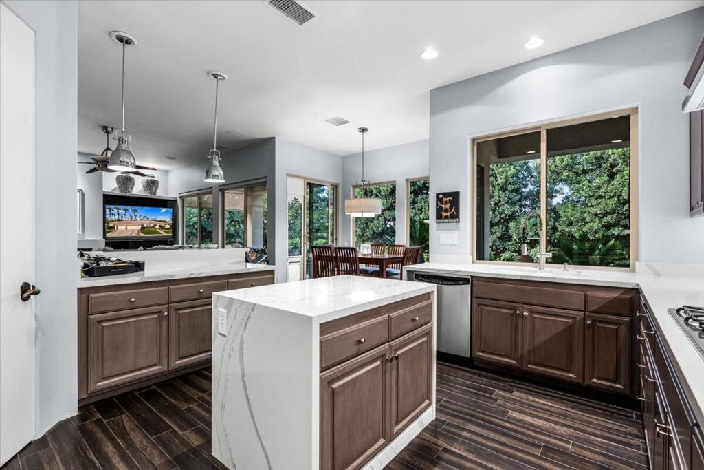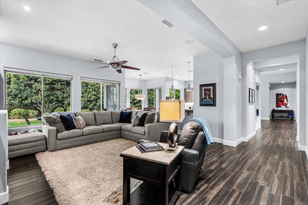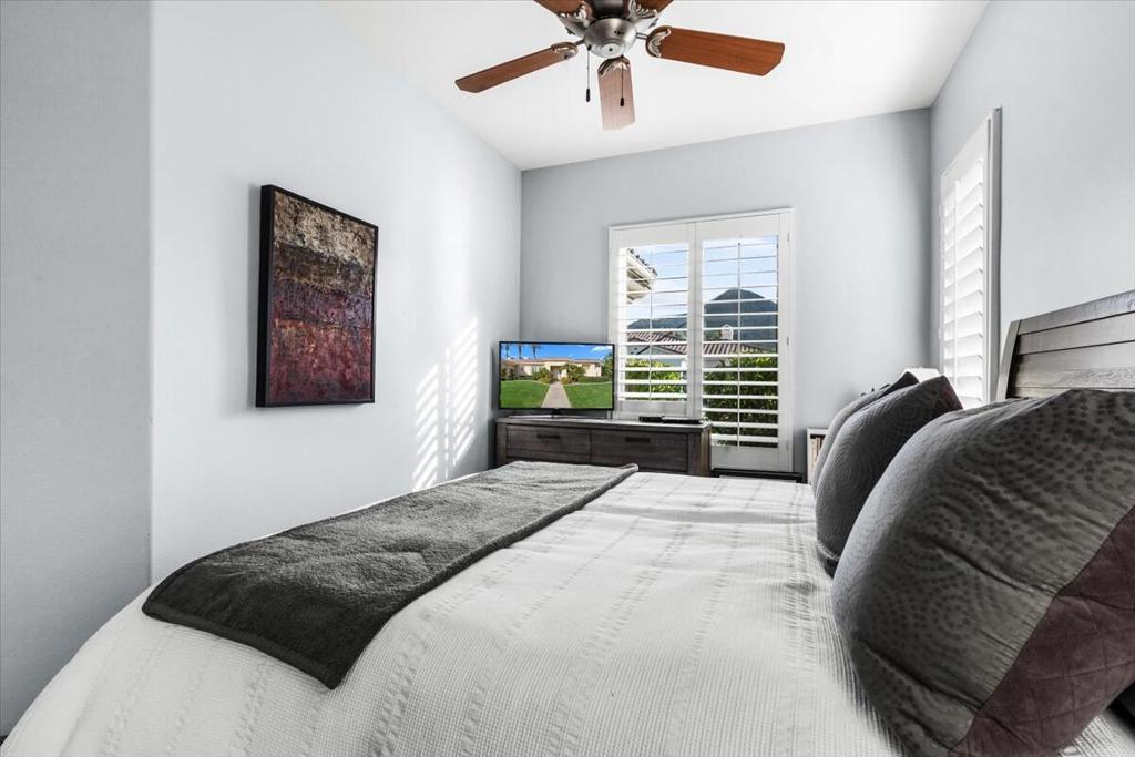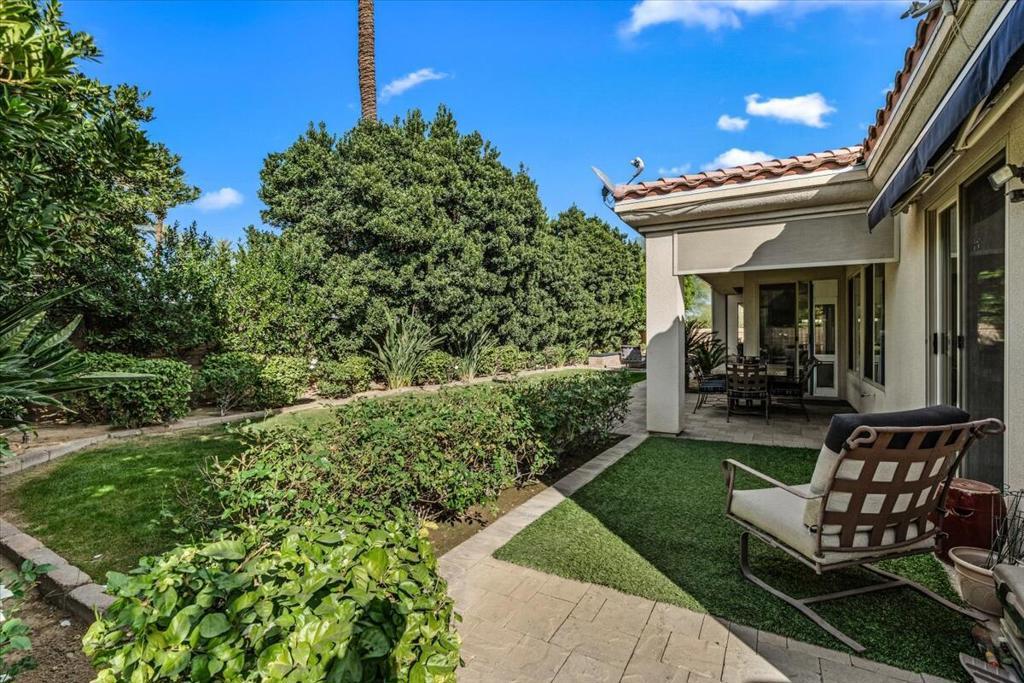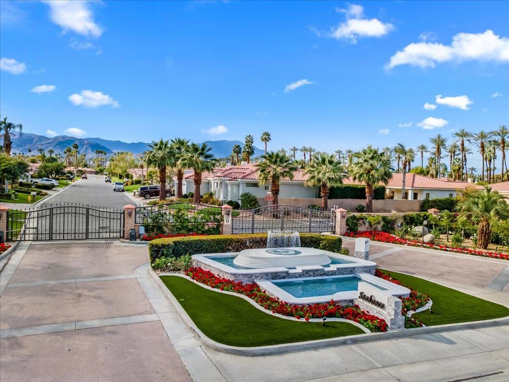 Welcome to refined desert living in the heart of Indian Wells. This centrally located 2,604 sq. ft. residence offers the perfect blend of comfort, style, and sophistication, in one of the desert's most prestigious areas. Featuring three spacious en suite bedrooms, this thoughtfully designed home provides privacy and luxury for both residents and guest alike. Offered fully furnished, the home is move-in ready and beautifully appointed with formal and family living spaces, ideal for both elegant entertaining and relaxed everyday living. Stylish, wood-look ceramic tile flooring flows throughout, complementing the home's modern yet traditional aesthetic. The updated kitchen is a true centerpiece, showcasing the stainless steel appliances with built-in refrigerator, stunning Cambria countertops with waterfall edge, and ample space for gathering and hosting. Every detail has been curated to provide both functionality and refined design. Step outside to a beautifully landscaped backyard retreat. The covered patios are laid with stone pavers, which creates a perfect outdoor area for entertaining. A cozy fire pit serves as the focal point for relaxing under the desert sky. Mature landscaping provides privacy, character and a serene setting. Significant upgrades include a new roof installed in 2024, and HVAC systems replaced in 2019, enhancing both efficiency and long-term value. Whether you're seeking a full-time residence, seasonal retreat or investment opportunity, this exceptional property delivers location, luxury, and lifestyle - all in one remarkable package.