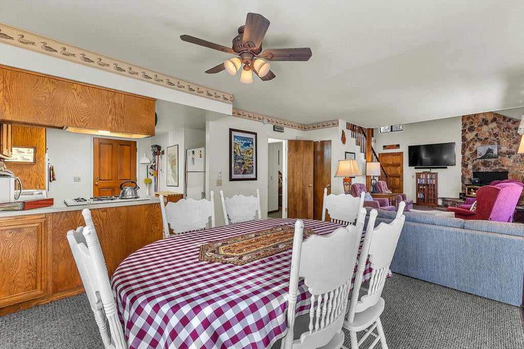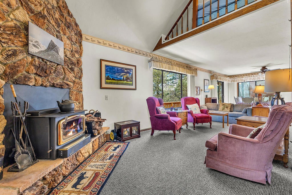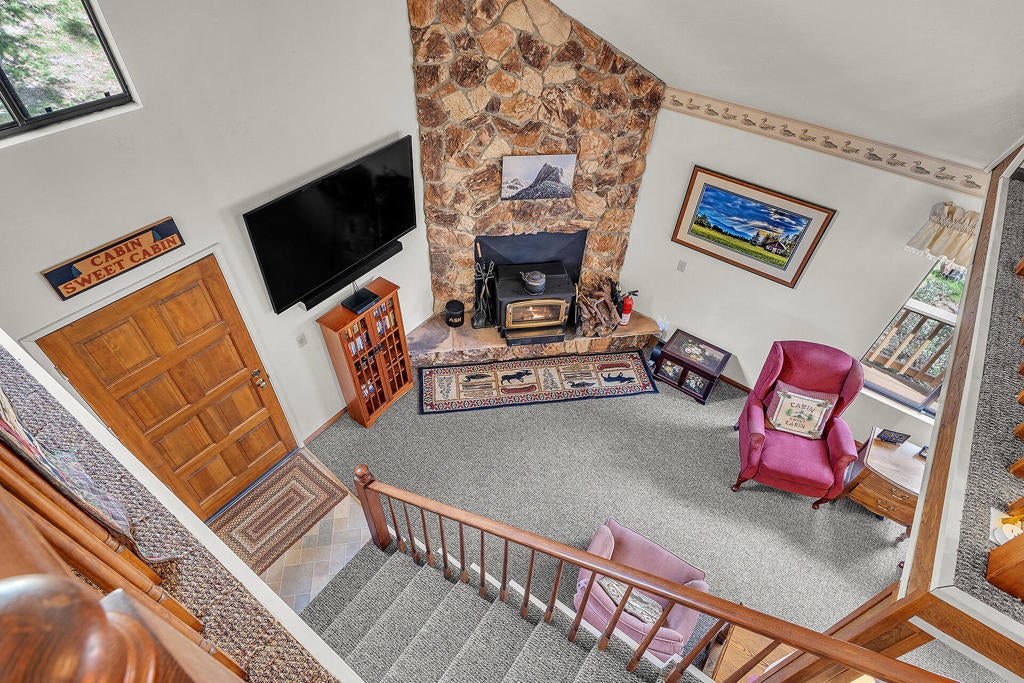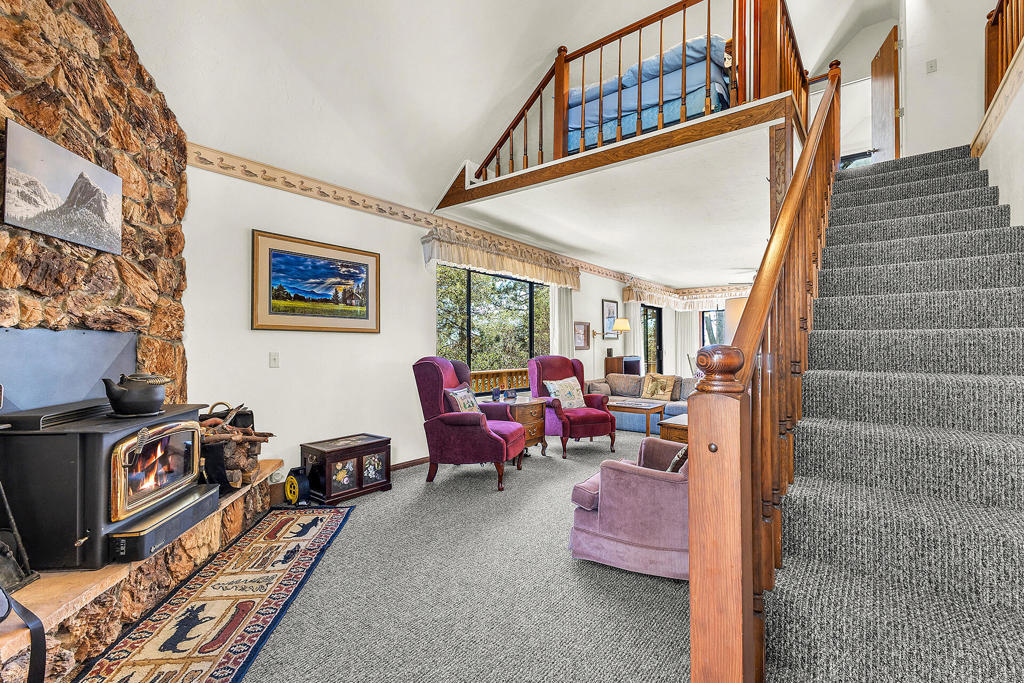 PERFECT VACATION OR FULL-TIME HOME!Spacious, well maintained home with new roof, new propane forced air heating, new flooring and newly painted exterior. Cathedral ceiling living room has large rock fireplace with wood stove insert, roomy kitchen with generous cabinet and counter space plus adjoining dining area with access to large wrap-around deck. There are 2 bedrooms (including large primary on main floor) plus large loft with plenty of room for overflow guests, 1.75 baths, laundry and outside tool/storage shed. Large, usable yard and plenty of extra parking. Home comes furnished. Hard to beat this well-maintained home at this price!