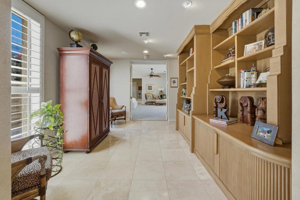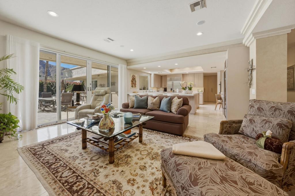 Welcome to luxury desert living behind the private gates of Indian Wells Country Club. This stunning custom estate offers breathtaking south-facing mountain views and the privacy of a 22,216 sq. ft. corner lot--your own serene desert sanctuary.Designed for both everyday comfort and upscale entertaining, the home flows effortlessly from one impressive space to the next. The intimate living room features a beautiful fireplace, soaring ceilings, and polished travertine floors, opening to a perfectly placed step-down bar, a formal dining area with a built-in buffet and a tasteful Powder Bath for your guests. The inviting family room and newly remodeled kitchen capture sweeping views of the sparkling saltwater Pebble Tec pool and mountains beyond. Complete with custom cabinetry, quartz countertops, a breakfast bar, and center island, the kitchen is ideal for casual gatherings and effortless hosting.A thoughtful split-wing floor plan creates exceptional privacy. The expansive primary suite is a true retreat with a separate sitting area, office alcove, soaking tub, walk-in shower, dual vanities, and a large walk-in closet. Across the home, a Guest Retreat includes a full bath with sauna, walk-in closet and private yard with patio. Two additional ensuite bedrooms offer a perfect guest setup in the guest wing.Step outside to a resort-style backyard oasis featuring an outdoor patio living room with fireplace, multiple dining and lounging areas, and a covered patio with built-in BBQ bar and outdoor kitchen. Lush landscaping surrounds the home, while a rock wall waterfall adds a tranquil touch to the pool setting.Additional highlights include an epoxy-floor, 3-car garage with ample storage and A/C. All of this--plus NO HOA.