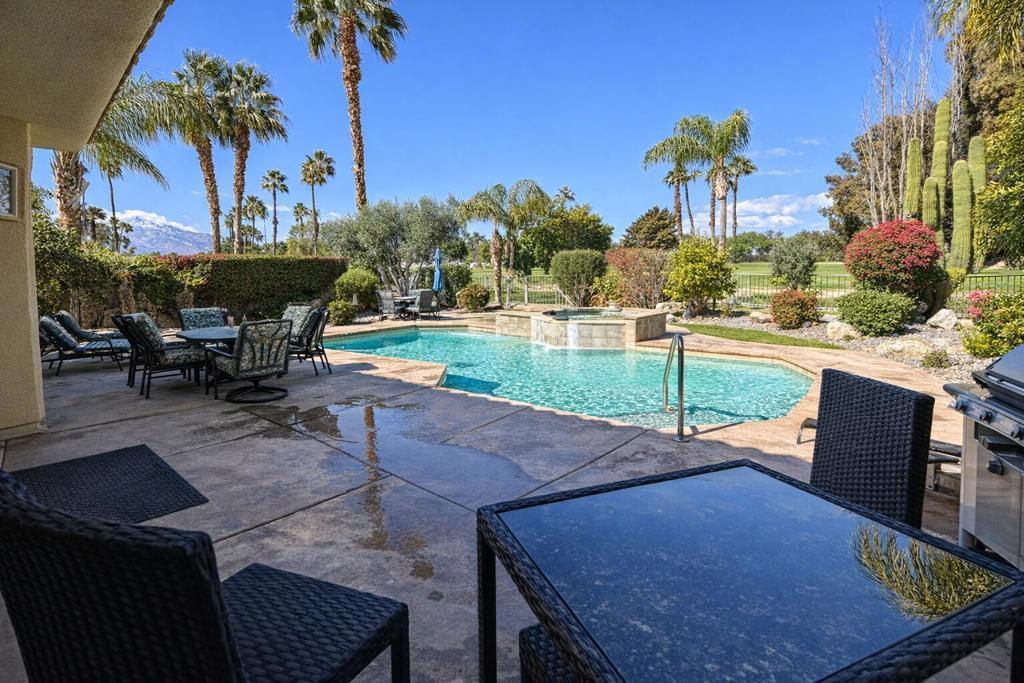 Enjoy classic desert resort living in this freestanding home located within the 24-hour guard-gated Rancho Mirage Country Club. Built in 1998 and impeccably maintained, this residence is ideally positioned on the golf course with fairway, lake, and mountain views.A gated courtyard entry with fountain leads to a light-filled interior featuring high ceilings, stone-look tile flooring laid on the diagonal, plantation shutters, and walls of glass that showcase the serene outdoor setting. The open great room includes a fireplace, formal dining area, and seamless indoor-outdoor flow.The home offers 2 bedrooms plus a private guest casita, and 3 bathrooms, providing comfort and privacy for both owners and guests. The spacious primary suite enjoys patio access and tranquil views, while the kitchen is bright and functional with skylights and generous storage.Outdoors, relax and entertain in the private pool and spa, surrounded by professionally landscaped desert grounds and unobstructed west-facing views.Centrally located near Bob Hope Drive and Frank Sinatra Drive, just minutes from El Paseo, The River, Eisenhower Medical Center, and world-class dining and shopping.Offered turnkey furnished as a seasonal rental only, available September through May. Inquire for monthly rate. Monthly home expenses and maintenance covered by owner. Utilities covered up to $200/m. Rental price starting at $6500/m