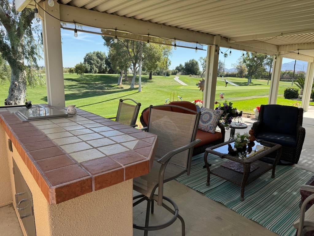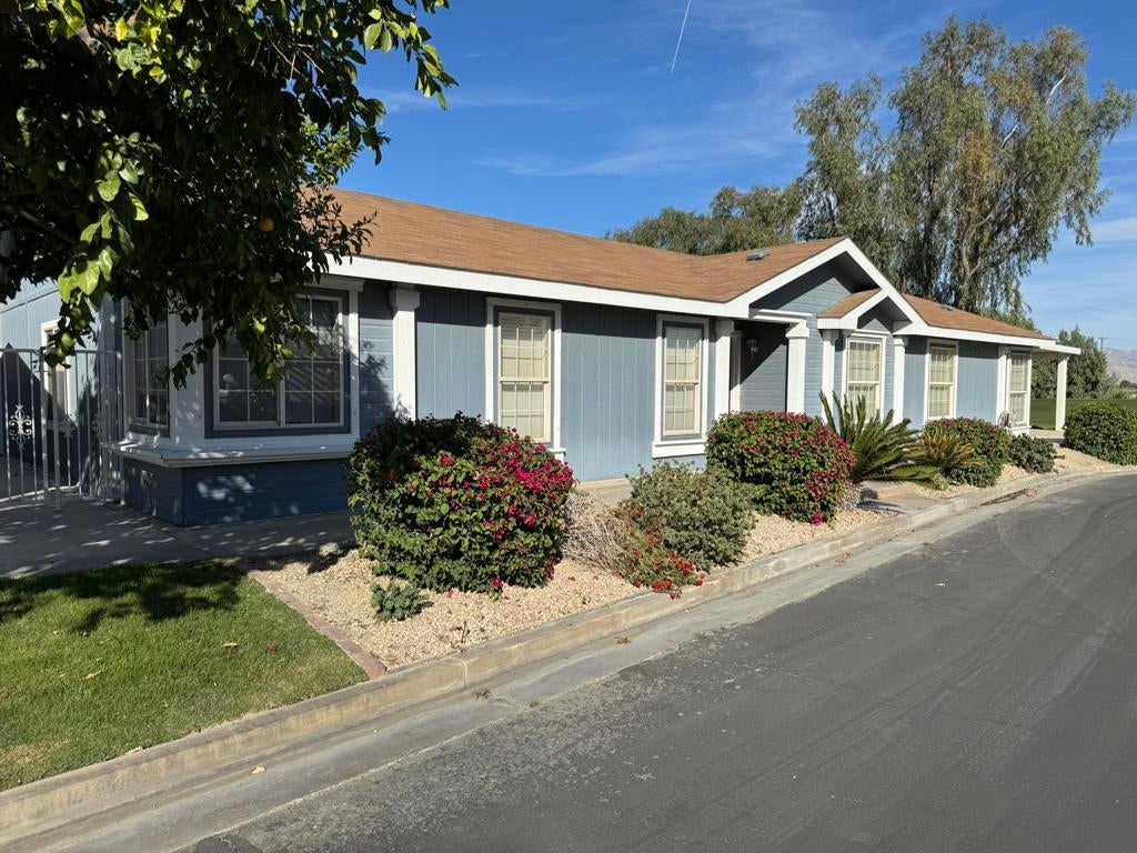 Welcome to resort-style living in Ivey Ranch Country Club, a 55+ community.Situated on a desirable corner lot, this beautifully remodeled 2,310 sq. ft. home offers breathtaking golf course and mountain views from the expansive patio -- complete with a built-in natural gas BBQ, perfect for entertaining or enjoying peaceful desert evenings. Inside, you'll find 3 spacious bedrooms, including a luxurious primary suite featuring an attached study/sitting room and a beautifully upgraded en suite bath. A large guest bedroom also offers its own private en suite bathroom, providing comfort and privacy for family or visitors. The thoughtful floor plan creates an inviting flow throughout the tastefully remodeled interior. This home, has been meticulously maintained -- truly move-in ready.Additional highlights include: New roof installed in March 2026. Oversized 2-car garage plus dedicated golf cart garage. Furniture is Optional Golf cart included in the sale A 433A Permanent Foundation for easy financing.Enjoy stunning fairway views, exceptional indoor-outdoor living, and all the amenities that make Ivey Ranch such a sought-after community. Ivey Ranch CC & GC, is a gated, senior community of manufactured homes integrated with a 9 hole golf course, Pro-shop, Driving Range, 4 community pools, 2 community spas, Club House and a Seasonal Restaurant. In Ivey Ranch you own the land.