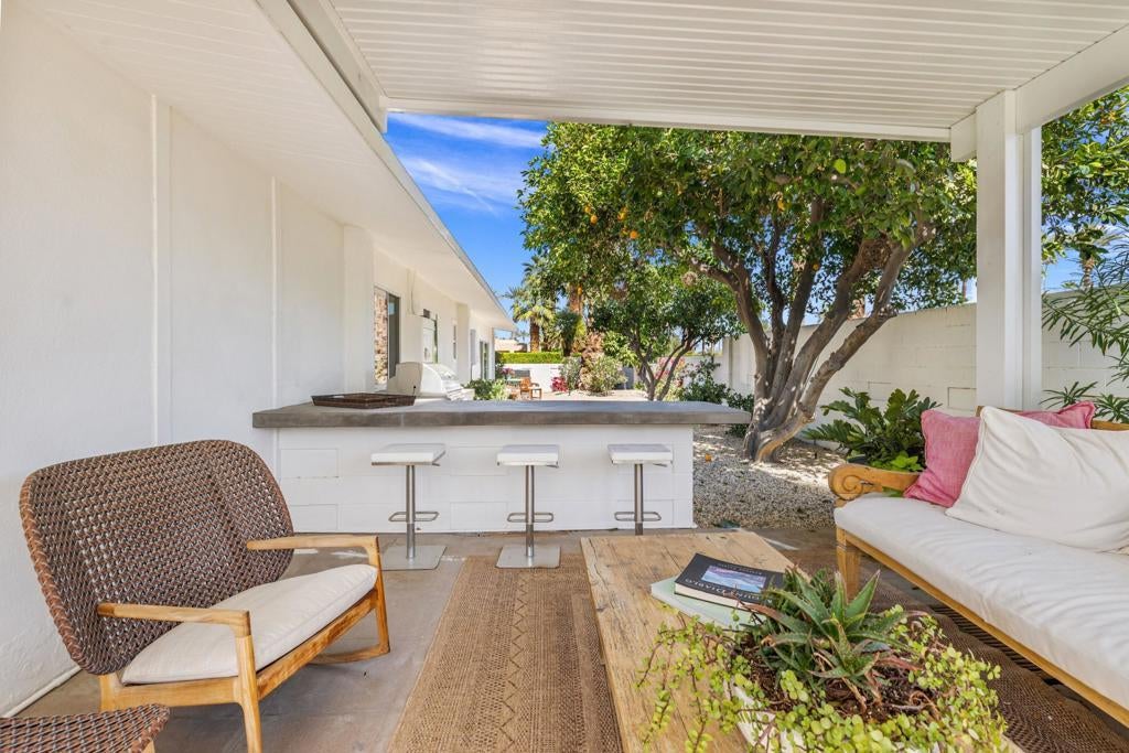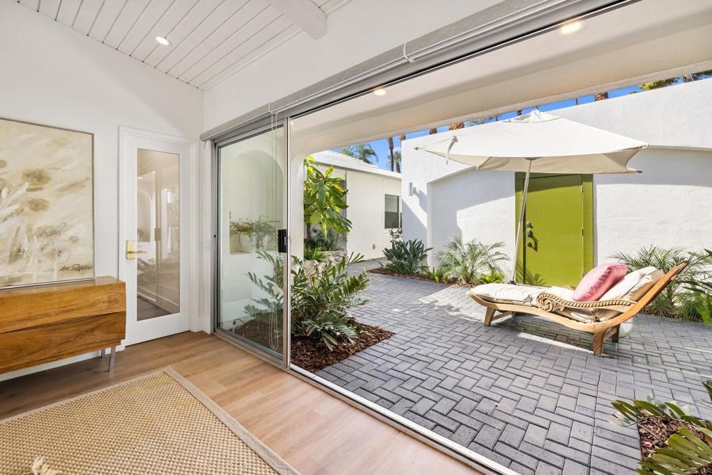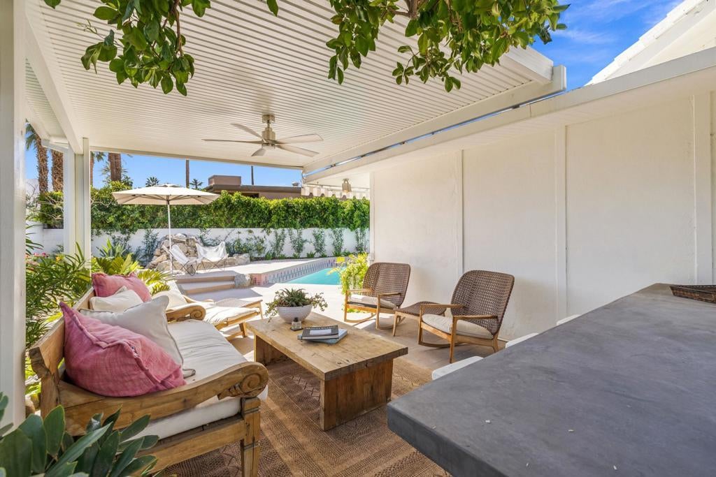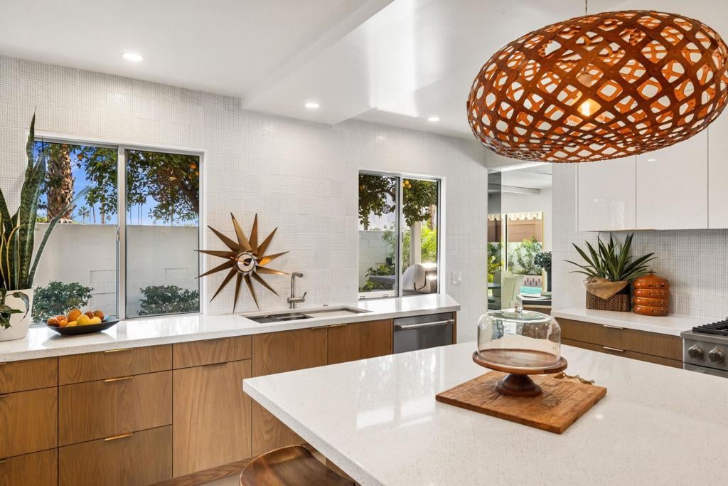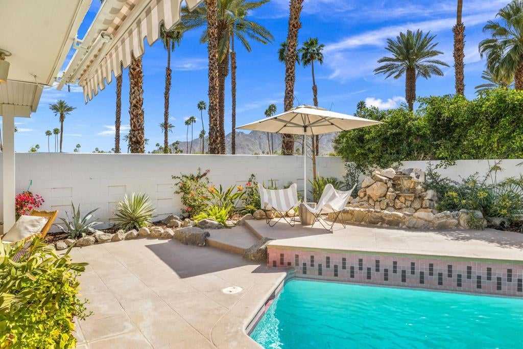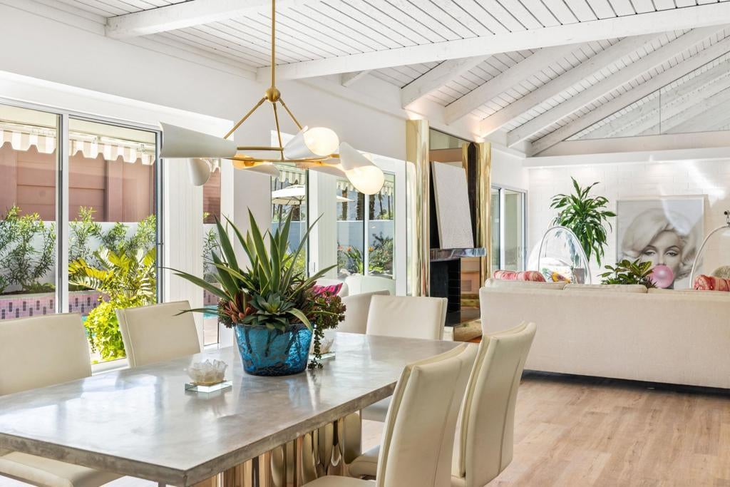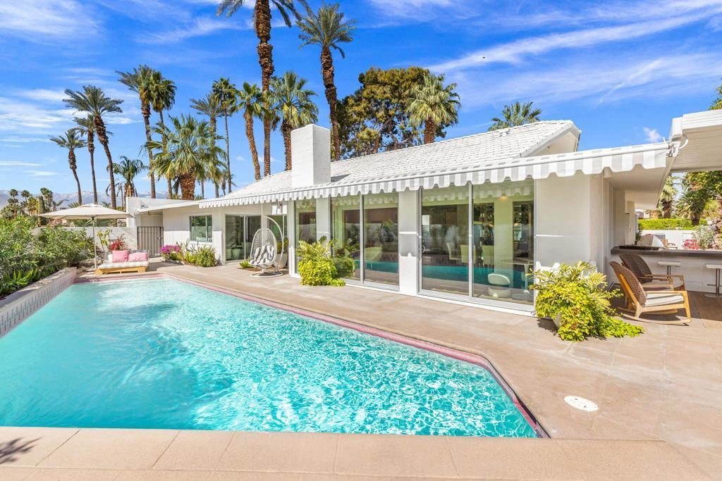 Authentic Steve Chase-designed mid-century residence in Indian Wells, offering a rare blend of architectural pedigree, privacy, and indoor-outdoor desert living.Defined by classic mid-century lines, vaulted ceilings, and expansive walls of glass, the home captures the essence of desert modernism while seamlessly integrating updated finishes for today's lifestyle. Natural light fills the open-concept living spaces, creating a warm and inviting environment that connects effortlessly to the surrounding outdoor areas.The thoughtfully updated kitchen features clean, modern finishes, custom cabinetry, and an oversized island, ideal for both entertaining and everyday living. Multiple living and dining areas provide flexibility while maintaining the home's original architectural integrity.The private backyard is a true desert retreat--complete with a pool, built-in BBQ, covered patio spaces, and multiple lounge areas--all oriented to capture beautiful mountain views and sunset skies.With four bedrooms, the layout offers versatility for full-time living, seasonal use, or hosting guests, all within minutes of El Paseo, world-class golf, dining, and the best of the desert lifestyle.A rare opportunity to own a design-forward home with architectural significance in one of Indian Wells' most desirable locations.