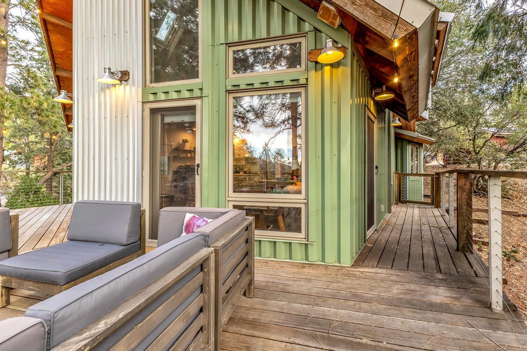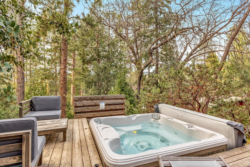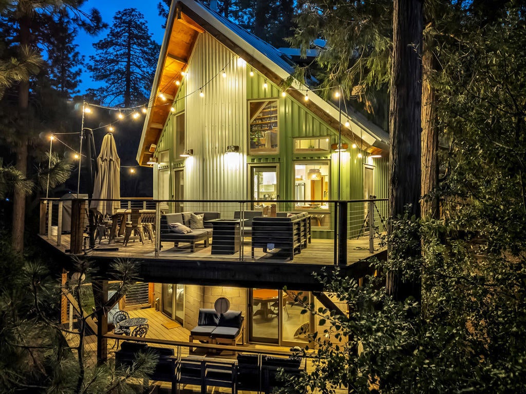 Tucked among the pines, this updated A-frame blends an industrial edge with rustic mountain charm. Vaulted ceilings with exposed wood beams soar above an open-concept living space anchored by a freestanding wood stove and warmed by heated floors. The bright, modern kitchen with breakfast bar flows effortlessly to the open living area. The spacious deck was designed for sunset views and easy entertaining. A dedicated mud room adds everyday function & the main level also offers a comfortable bedroom and full bath, ideal for guests or single-level living. Upstairs, a private bedroom suite features its own bath and deck for treetop morning coffee. The lower level includes a third bedroom with covered deck access, an additional bath, laundry, and ample storage. Mini splits provide efficient year-round comfort. Outside, unwind in the hot tub under the stars or gather with friends on the expansive deck. Additional amenities include: Generac generator, low maintenance siding, parking on Crestview and off of Live Oak, near hiking trails and within minutes of the artsy town of Idyllwild. Cozy yet refined, this mountain retreat delivers style, space, and that perfect Idyllwild getaway vibe!