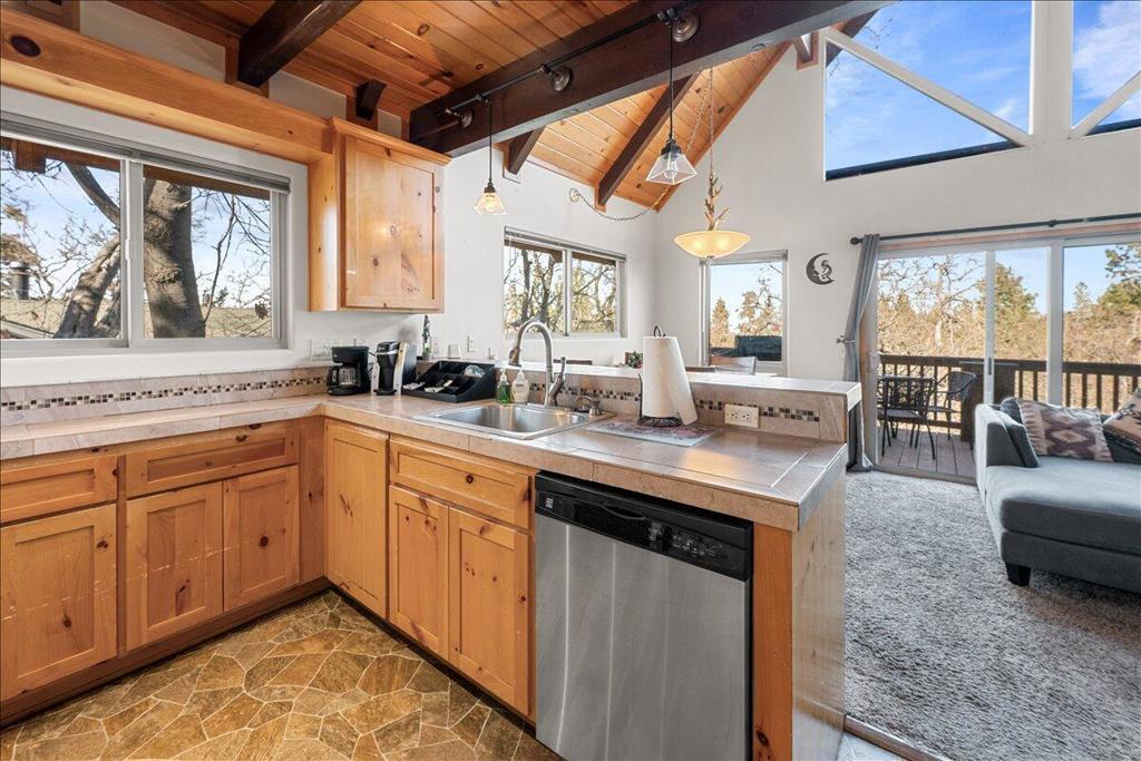 Experience the best of Moonridge in this quintessential 2-bedroom, 1-bath mountain cabin. Perfectly located near Bear Mountain Resort, the Alpine Zoo, and the newly renovated Moonridge corridor, this turnkey home is an ideal four season retreat or investment property. The interior features an open concept great room with soaring vaulted wood beam ceilings, a classic rock fireplace, and large windows offering serene forest views. The functional kitchen includes a breakfast bar for easy entertaining. The layout provides a main floor bedroom and full bath, complemented by a spacious upstairs loft serving as a second bedroom. Outside, a large rear deck provides a peaceful space to enjoy the treed lot and mountain air. Additional features include level entry & ample off street parking. Offered fully furnished and ready for immediate use.