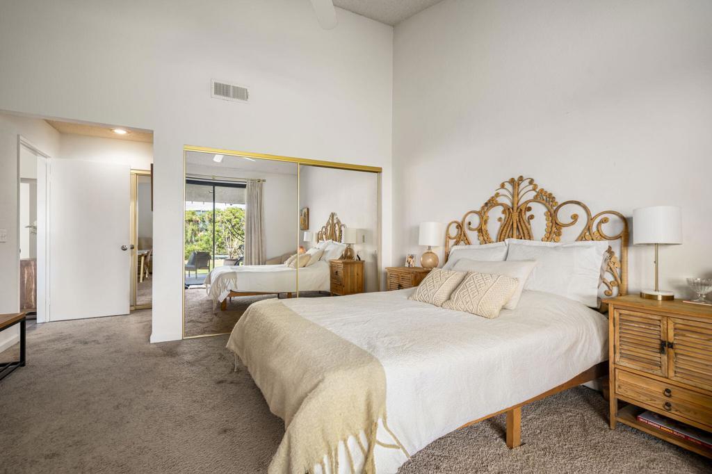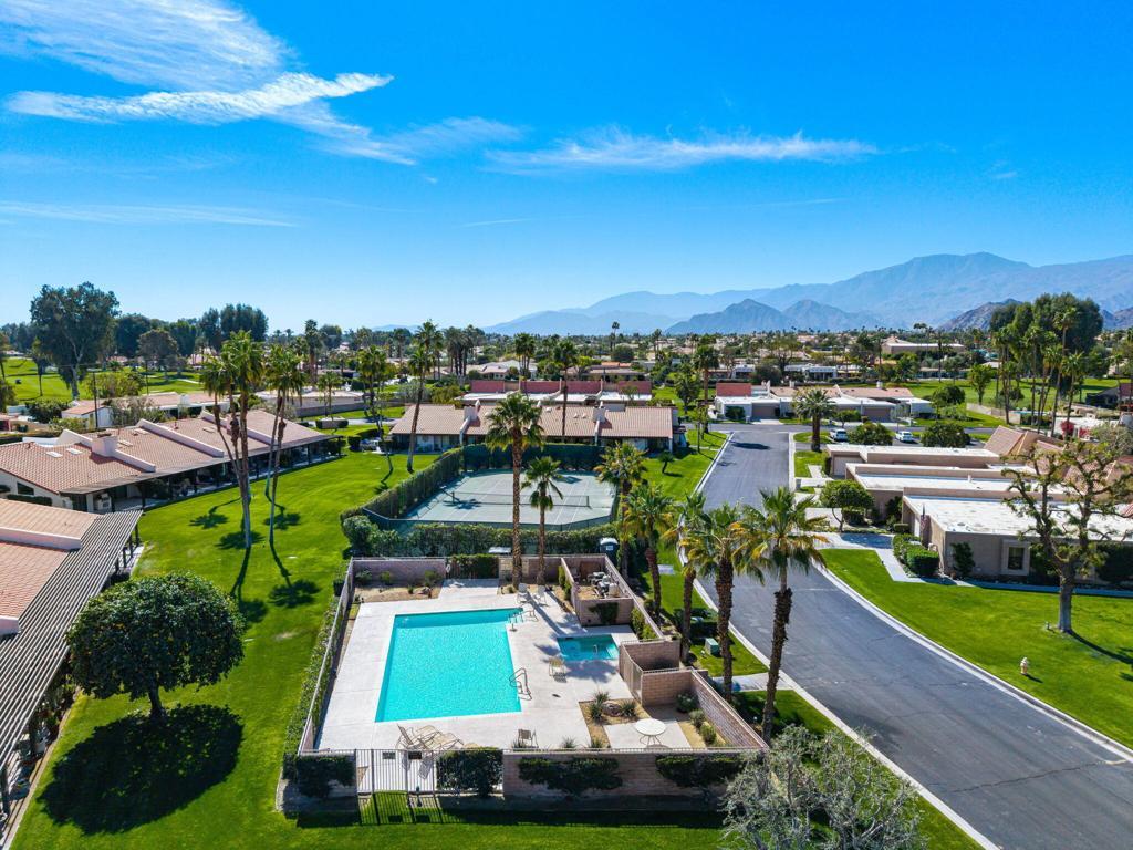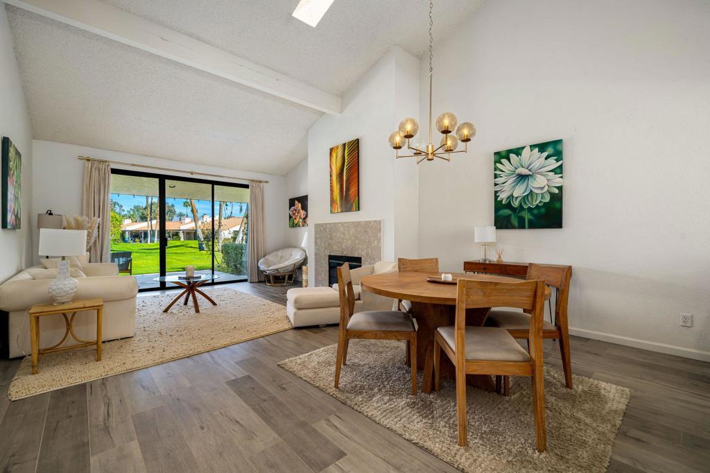 Welcome to Montego Circle, an exclusive gated enclave within Bermuda Dunes Country Club. This gorgeous, well-appointed condo offers 2 bedrooms, 2 bathrooms, and 1,415 square feet of light-filled living space. Soaring ceilings and an open-concept floor plan create an airy atmosphere perfect for both everyday living and entertaining. The beautifully updated kitchen showcases quartz countertops, a new stovetop, oven/microwave combo, dishwasher, upgraded sink and faucet, and modern finishes throughout. Additional recent upgrades include a new washer and dryer, elegant dining room chandelier, custom drapes for the sliding glass doors, and laminate flooring throughout.Enjoy the ease of resort-style living with HOA amenities that include exterior maintenance, five community pools and spas, tennis court, lush landscaping, 24-hour security, water, trash, internet, and cable. Located in the private Montego Circle community, this condo offers comfort, convenience, and a premier desert lifestyle.
