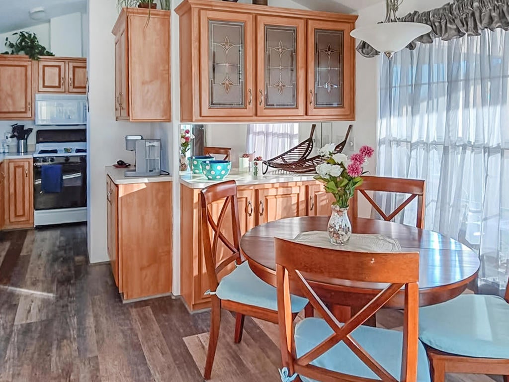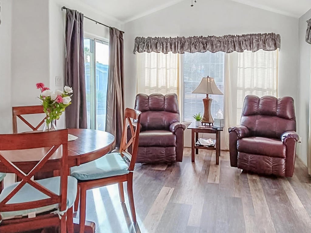 This beautifully maintained 2007 Cavco Park model showcases owner pride and is in pristine condition. Offering approximately 640 sq. ft. with 2 bedrooms and 1 bath, this residence features modern finishes, attractive Luxury Vinyl Plank flooring, washer/dryer, furnished and all of this with great views of Mt. San Jacinto and surrounding hills from its front deck--a true hidden gem in a tranquil desert oasis. The home provides flexibility for use as a dream vacation retreat or a peaceful full-time residence. Located in the prestigious 55+ Caliente Springs Resort, residents enjoy outstanding amenities such as a mineral hot spring-fed pool and spas, a state-of-the-art fitness center, a 9-hole golf course, 8-pickleball courts, tennis courts, laundry facilities, a library, and an active, welcoming community. In addition to the impressive features and amenities, the community promotes a vibrant lifestyle with regular social events, wellness classes, and opportunities to connect with fellow residents. Its convenient location offers easy access to nearby shopping, dining, and entertainment, making everyday living both enjoyable and effortless. Whether you are seeking relaxation or activity, this home at Caliente Springs Resort is perfectly situated to provide the best of both worlds in a secure, friendly environment. Please note: the lot is not included in the sale; monthly space rent is $707.