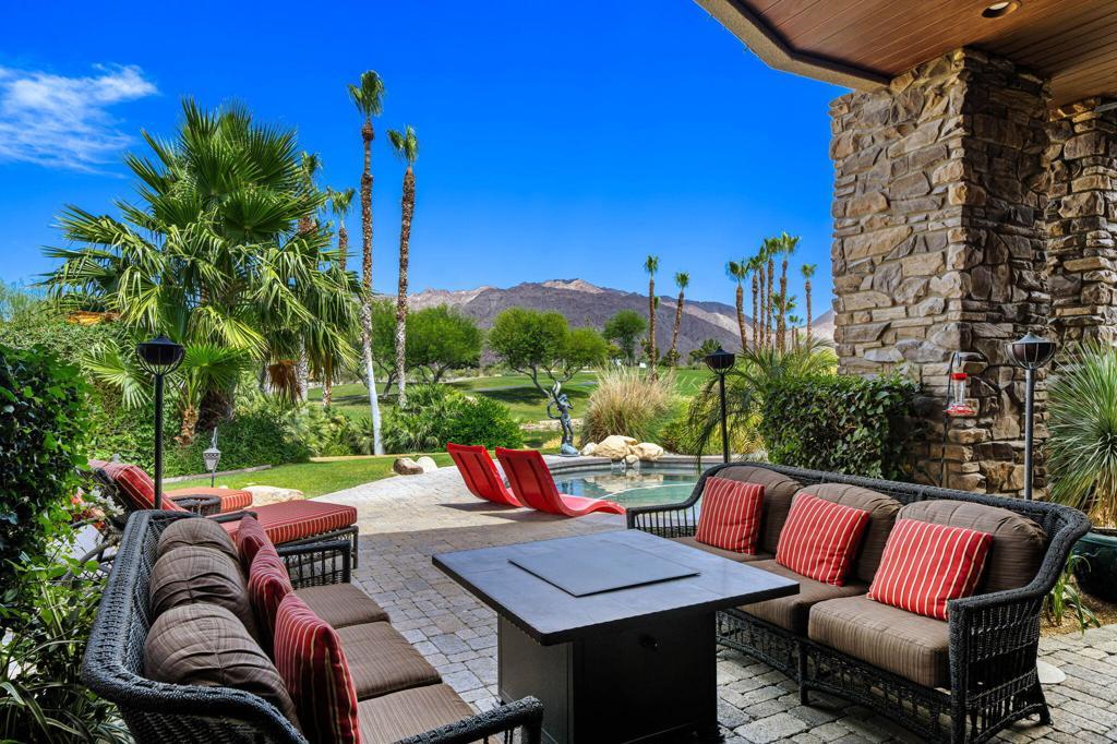 Set within the exclusive Canyon View Estates at Ironwood Country Club, this remarkable fairway estate is a masterful expression of architectural sophistication, modern innovation, and refined desert luxury. Perfectly positioned along the 16th fairway, the residence captures breathtaking mountain views and tranquil water feature views, creating an extraordinary backdrop for elevated living. A grand living room with soaring wood-beamed vaulted ceilings and a statement fireplace sets a dramatic yet inviting tone. Four spacious en-suite bedrooms provide comfort and privacy, with the primary suite serving as a peaceful retreat. The saltwater pool and spa showcase elegant deck jets, customizable LED lighting, fountain accents. Four en-suite bedrooms offer privacy and comfort.The outdoor kitchen is tailored for upscale entertaining, while inside, dual 100-bottle wine refrigerators and a stunning illuminated onyx bar provide a sophisticated setting for intimate gatherings or grand celebrations.The chef's kitchen is both impressive and functional, appointed with premium stainless steel appliances. An exceptional opportunity to enjoy luxury living in one of Ironwood's most desirable communities.