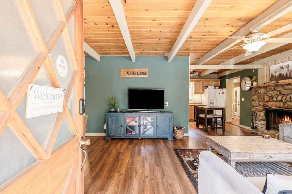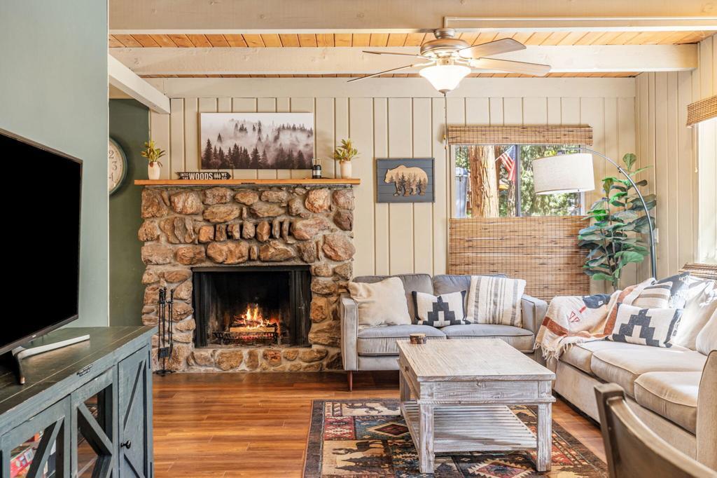 Escape to your own storybook retreat in Idyllwild! This fully furnished 3-bedroom, 3-bath cabin is a magical blend of rustic charm and modern comfort, ready for your mountain getaway--or turnkey investment property! Rich wood ceilings, exposed beams, and a rock fireplace make the living space warm and inviting, while sunlight fills every corner. The charming kitchen is nicely equipped with stainless appliances, granite counters, and maple cabinetry, and is adjacent to the mudroom off the attached garage.The spacious primary wing is conveniently secluded from the other rooms and features room for an office or reading nook, plus an ensuite bath. Two additional bedrooms and bathrooms ensure comfort for all.Step outside to relax under the stars in your private above-ground Jacuzzi or host unforgettable alfresco dinners on the front deck, all surrounded by towering pines and panoramic mountain views.Fully furnished and move-in ready, this cabin is the ultimate Idyllwild escape--charming, serene, and investment-ready.