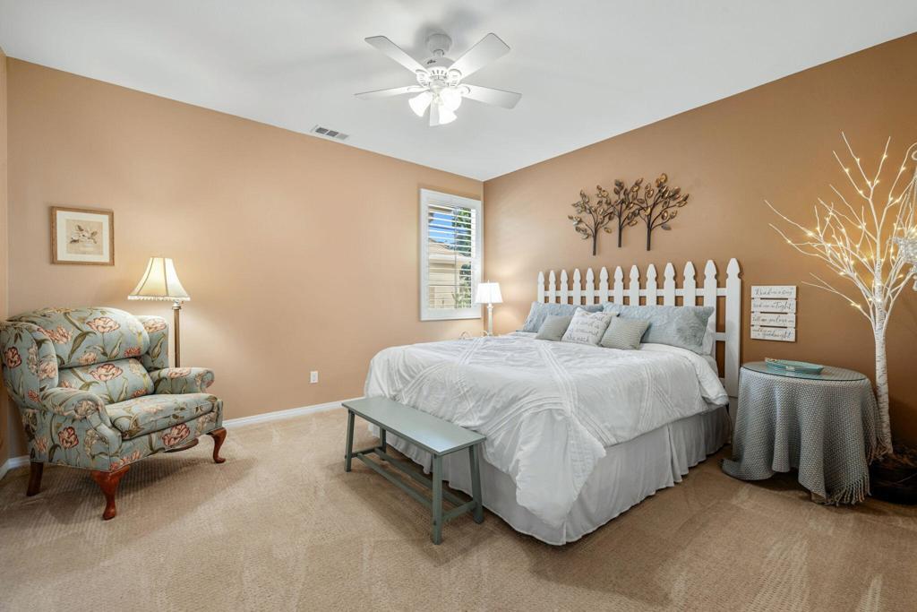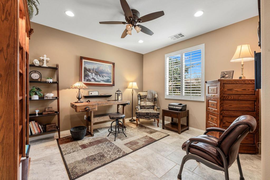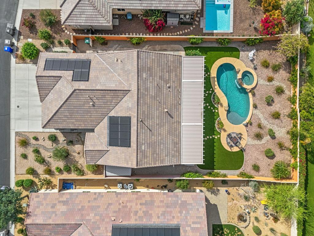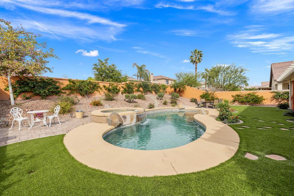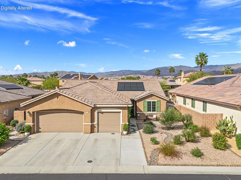 TRULY A MUST SEE! Nestled in the securely gated community of ALIANTE in North Indio, which is bustling with nearby shopping and dining, bordering Championship public golf courses, Terra Lago and Eagle Falls, and the Fantasy Springs Resort and Casino, with easy access to the I-10 freeway for convenient commuting.Within the gates of Aliante you will experience a community park with a playground, basketball courts, soccer field, barbecue grills for recreation surrounded by stunning mountain views plus low HOA fees.Step inside the charming designer door to an exquisite open concept living, dining and kitchen gathering area with cozy fireplace for entertaining family and friends with views of a backyard oasis with pool, spa and firepit for outdoor fun with multiple sitting areas....maintained impeccably!This 3 bedroom, 2 bath, plus an office/den, has a master suite with a large sitting area which can easily be converted back to a 4th bedroom. The 3 car epoxy floored garage can also be used as a exercise/flex/game room.The home is equipped with solar panels, low maintenance artificial turf, and exquisite landscaping with drip system and lighting front and back. The backyard patio has an alumawood patio cover and also a storage shed with a planting area.Come and see for yourself our comfortable and hard to describe home, so many extras included, and enjoy desert living under the stars!!!!FURNITURE AVAILABLE.