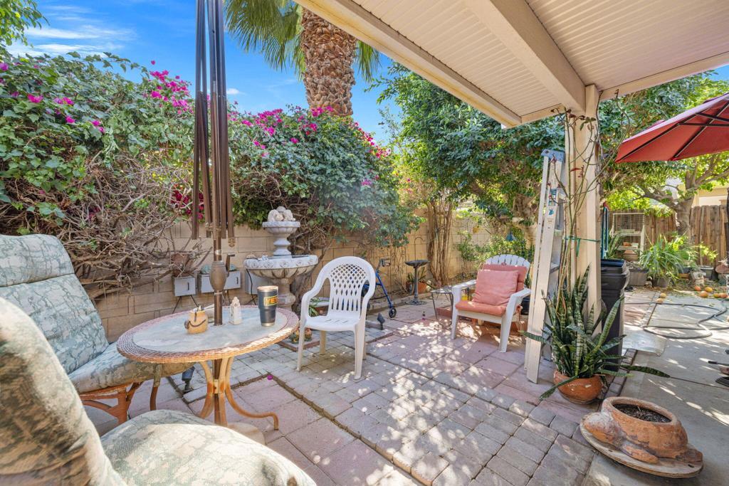 This charming stick-built single-family home in the desirable 55+ Desert Grove community offers comfort, style, and low-maintenance desert living. Both large bedrooms feature walk-in closets, and the attached 2-car garage provides ample storage, including an extra refrigerator that can stay.The backyard is a private oasis with citrus trees, perfect for relaxing or entertaining. Recent upgrades include a new AC system (2024), hot water heater, kitchen appliances and counters, front courtyard pavers and block wall, Alumawood patio cover, and new garage door.Residents enjoy resort-style amenities: 2 pools and spas, tennis and pickleball courts, clubhouse, billiards, and paved RV parking available for rental onsite. This home blends comfort, modern updates, and an active community lifestyle -- perfect for enjoying all that Desert Grove has to offer.