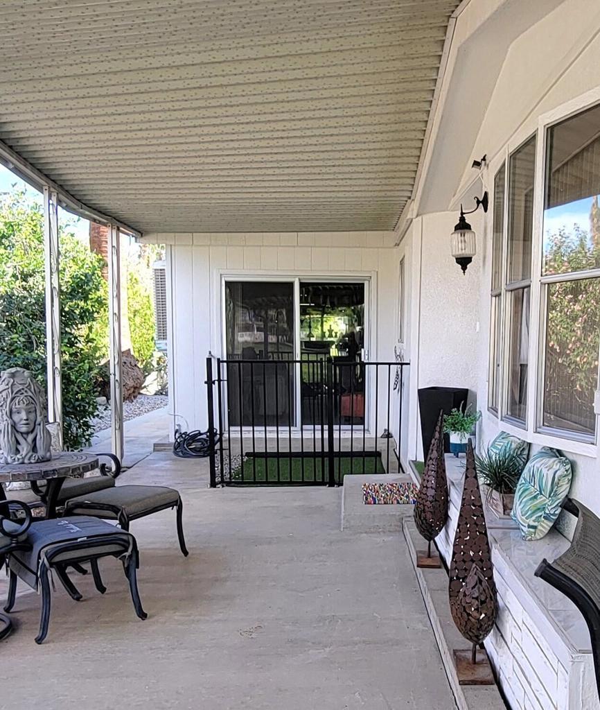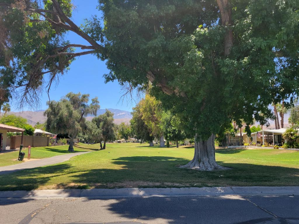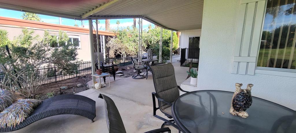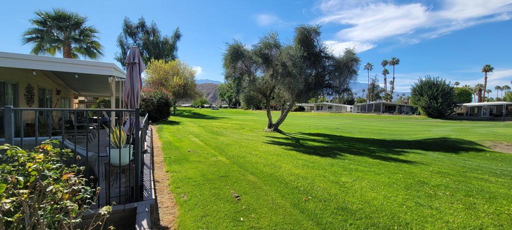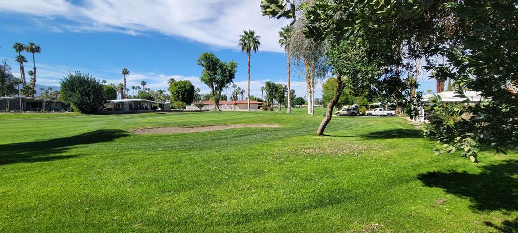 For gorgeous views and spacious living.....look no further! Located on the back 9, 12th hole, this beautiful 2 bed/2 bath home has been upgraded and is waiting for you! Remodeled features: 2019 - Bedrooms, primary bath, dining/livingroom flooring. 2021 - guest shower and toilet, utility sink in laundry room, refrigerator, oven, stove, backsplash, stove hood and microwave. 2022 - AC, custom primary shower, recessed lighting and water heater. Bonus of side by side covered parking, Beautiful space indoor and out. Added bonus of a fenced in dog area with artificial turf for your furbaby's safety. Please note, the diningroom chandelier is not included, Seller will either replace or credit buyer for replacement chandelier. Homeowners enjoy a discounted golf rate for the executive 18-hole public golf course. Nick's Bistro and bar is a local favorite in the community with live music, karaoke night and amazing food. You can dine indoors or on their beautiful outdoor lighted patio with firepit for chilly nights. If activities are your thing.....Date Palm CC offers several to choose from, something for everyone! Located near Hwy 111, shopping, dining and entertainment. Check this one out before you miss it!