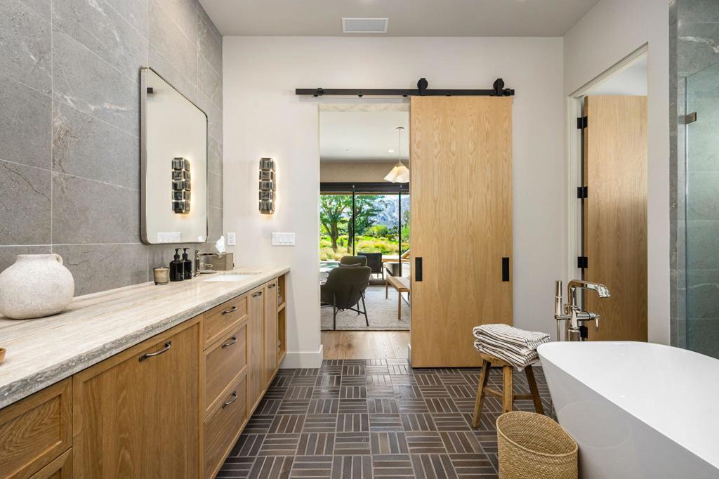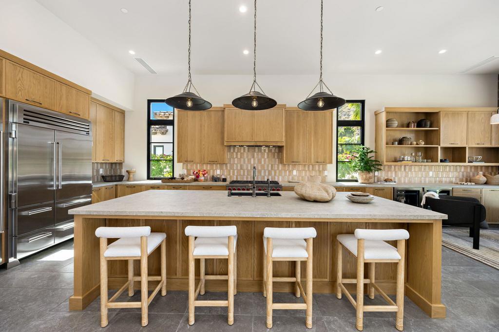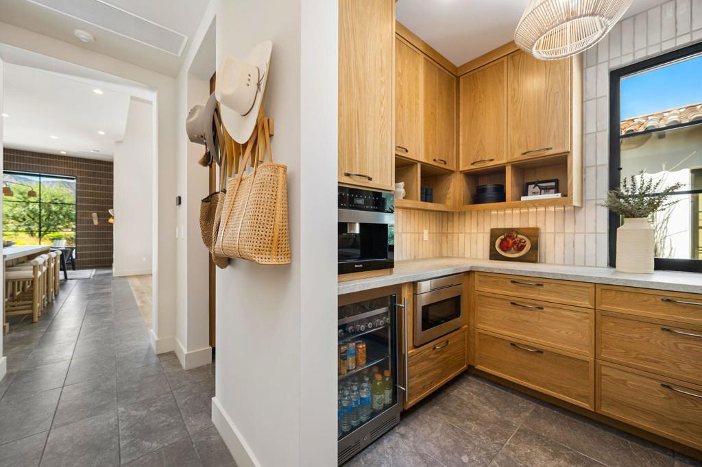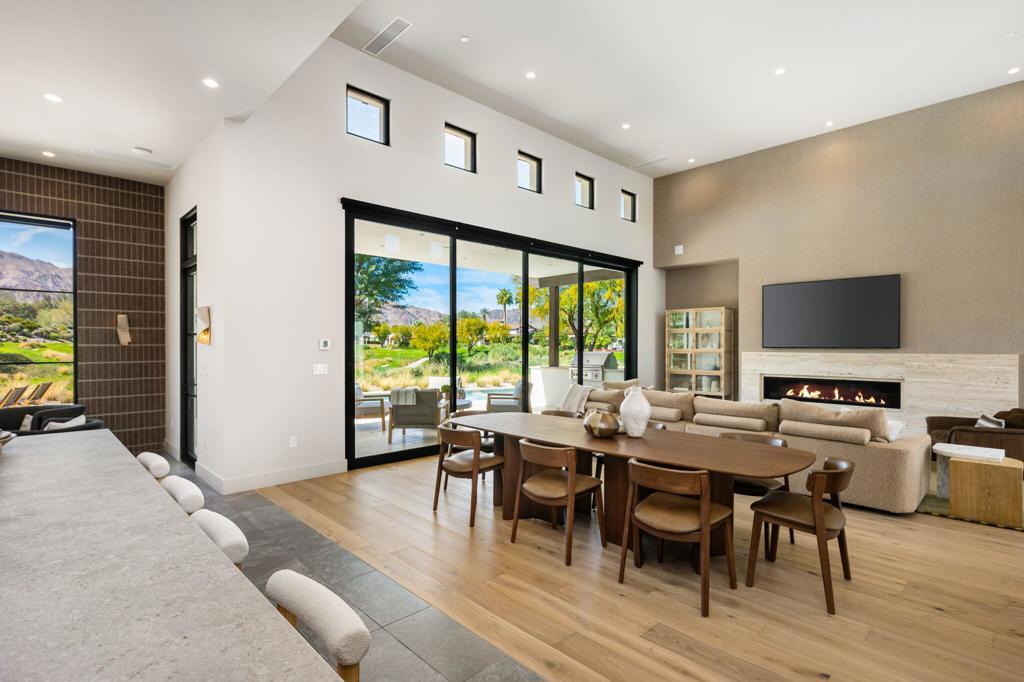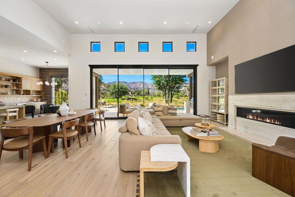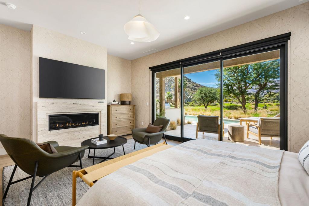 Experience refined desert living in this newly constructed 3-bedroom residence, including a private casita, ideally positioned on the 2nd hole of the renowned Tradition Golf Club. Showcasing a sophisticated transitional design with warm, earthy tones, this home blends modern architecture with the natural beauty of the surrounding mountains. The great room floor plan creates a seamless flow between the kitchen, dining, and living areas--perfect for both everyday living and entertaining. Expansive multi-slide glass panels open the great room to the outdoors, creating true indoor-outdoor living while framing breathtaking mountain and golf course views. The chef's kitchen features natural wood cabinetry, a large center island with seating, and high-end appliances, all anchored by clean lines and organic textures that complement the home's contemporary desert aesthetic. Step outside to your private resort-style backyard where a beautiful pool, fire feature lounge area, and built-in BBQ set the stage for unforgettable gatherings. The outdoor spaces overlook the lush fairway of the second hole, offering a serene backdrop of manicured greens and dramatic mountain vistas. Primary suite has cozy fireplace, stunning views and gorgeous bath with expansive shower and soaking tub. Families will appreciate the generous guest suite with two queen beds and spacious en-suite bath with dual vanities. The detached casita provides the perfect retreat for guests, offering privacy and comfort. Offered turnkey furnished, this exceptional residence allows you to move in and immediately enjoy the luxury lifestyle.