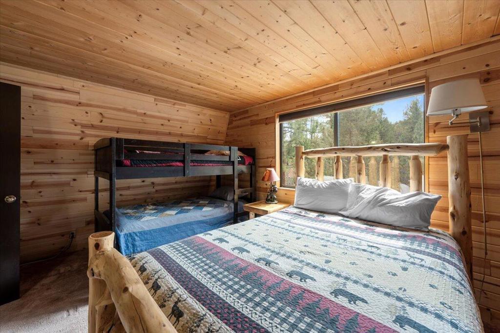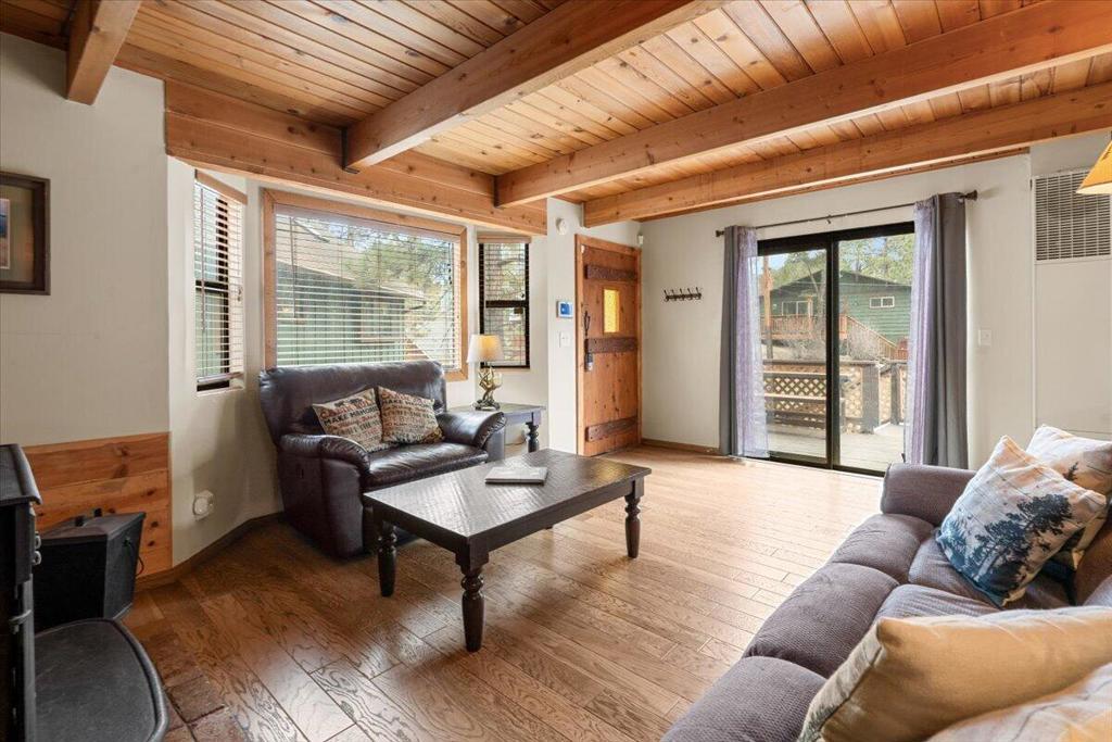 Escape to the mountains in this charming Big Bear cabin, being sold fully furnished and ready to enjoy! This cozy retreat has everything you need for the ideal mountain getaway or vacation rental. Step inside to a warm and inviting living room featuring a Franklin wood-burning fireplace, perfect for those snowy Big Bear evenings. The kitchen has been beautifully upgraded with granite countertops, stainless steel appliances, and knotty pine cabinets, giving it that perfect blend of modern comfort and classic mountain charm. The bathroom is tastefully updated with modern tile, new fixtures, and a relaxing jetted bathtub--the perfect place to unwind after a day on the slopes or hiking the trails. With two oversized bedrooms that can accommodate multiple beds, there's plenty of room for guests, making this an ideal vacation home or income-producing rental. Step outside and enjoy summer BBQs on the spacious deck, accessible from both the kitchen and living room. The property also offers plenty of parking for two or more cars plus additional storage space beneath the home. Tucked away on a short private road and just steps from the National Forest, this cabin offers the peace, privacy, andmountain lifestyle you've been looking for in Big Bear.