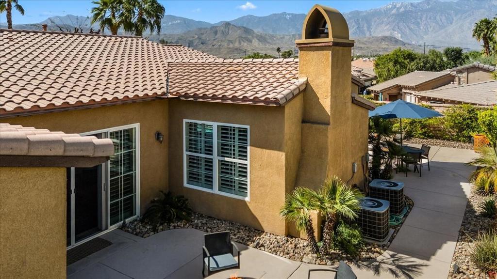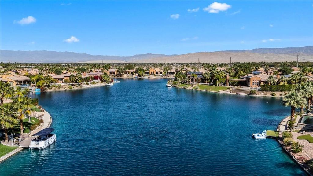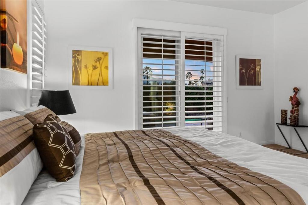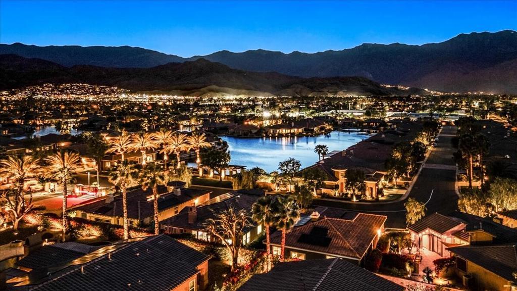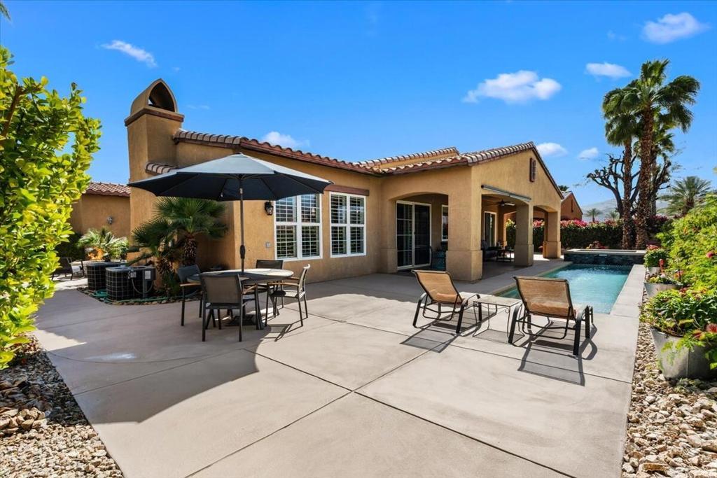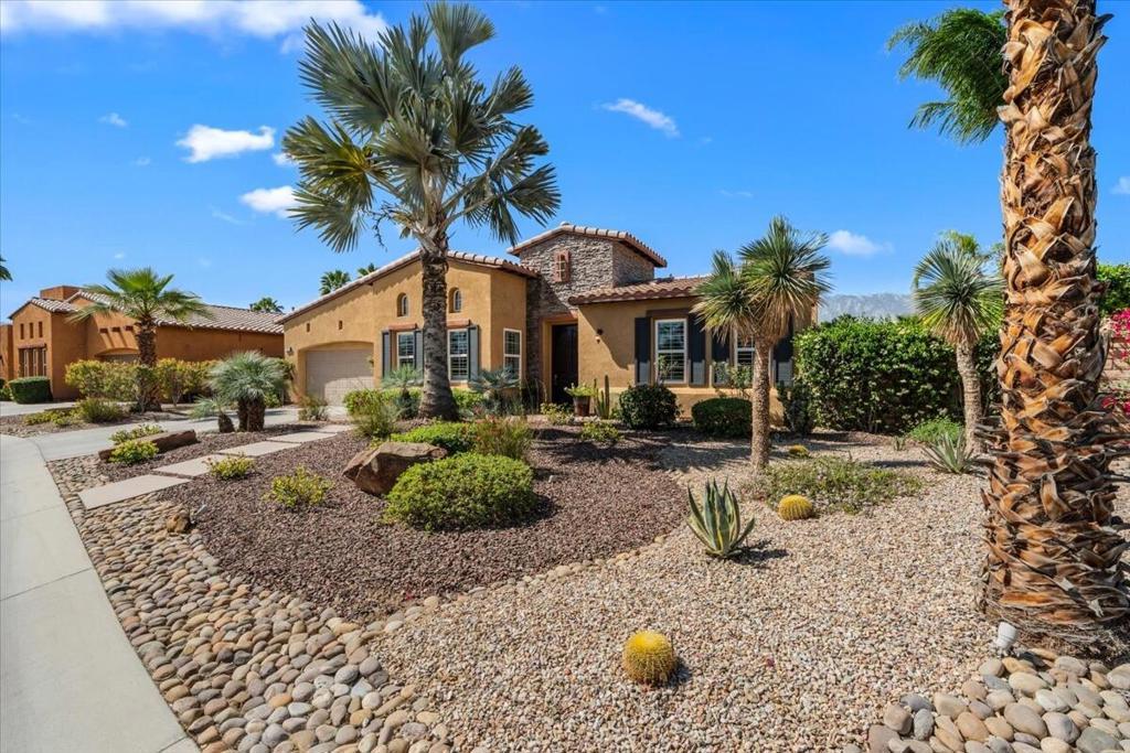 Tranquil Oasis in the exclusive gated enclave of Santo Tomas in Rancho Mirage built around a central 9-acre private lake offering the ultimate in Desert Luxury Living. This contemporary desert retreat is light, bright, and beautifully designed. Perfect for entertaining or just taking in the expansive mountain views. The primary suite is a serene escape featuring a generous walk-in closet, spa-like walk-in shower, and dual vanities designed for comfort and convenience. The 3rd bedroom can be used as a casita. Every space in the home is thoughtfully positioned to maximize natural light and seamless indoor-outdoor living. Step outside to your private backyard oasis where unobstructed mountain views provide a breathtaking backdrop. Enjoy the beautifully finished pool and spa, gather around the firepit under the desert sky, and relax to the soothing sounds of the water feature. The low-maintenance desert landscaping enhances the home's clean contemporary aesthetic. 27 fully owned and paid for Solar Panels w/10.8KWH. Residents enjoy mountain views with full lake rights, along with Social & Sports Membership at the adjacent Mission Hills Country Club offering tennis, croquet courts, pickleball, dining, and an active social lifestyle. Also, add-on an additionally paid Golf Membership offering world-class golf. Highly desirable and ideally located, this home captures the essence of a true retreat and refined desert living. Fee land (you own the land).