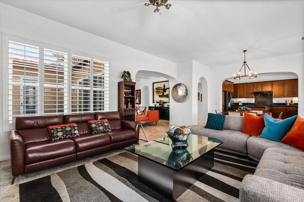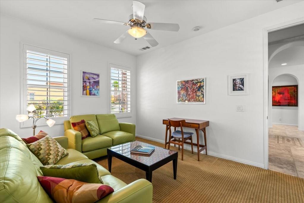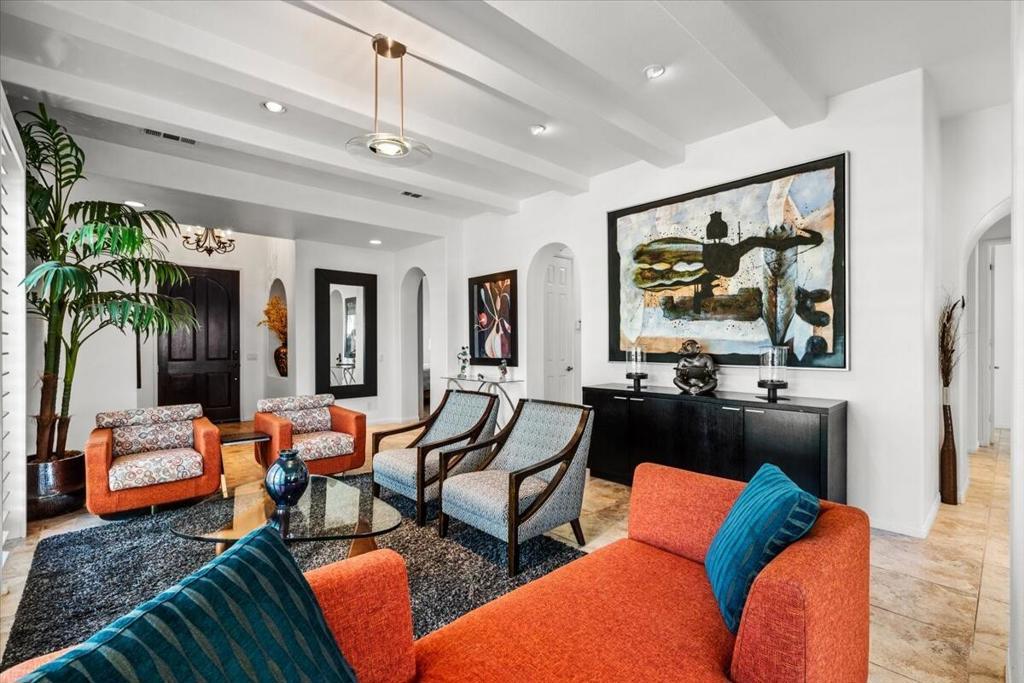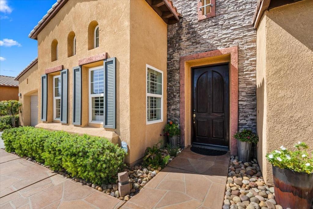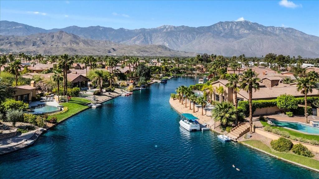 Tranquil Oasis in the exclusive gated enclave of Santo Tomas in Rancho Mirage built around a central 9-acre private lake offering the ultimate in Desert Luxury Living. This contemporary desert retreat is light, bright, and beautifully designed. Perfect for entertaining or just taking in the expansive mountain views. The primary suite is a serene escape featuring a generous walk-in closet, spa-like walk-in shower, and dual vanities designed for comfort and convenience. The 3rd bedroom can be used as a casita. Every space in the home is thoughtfully positioned to maximize natural light and seamless indoor-outdoor living. Step outside to your private backyard oasis where unobstructed mountain views provide a breathtaking backdrop. Enjoy the beautifully finished pool and spa, gather around the firepit under the desert sky, and relax to the soothing sounds of the water feature. The low-maintenance desert landscaping enhances the home's clean contemporary aesthetic. 27 fully owned and paid for Solar Panels w/10.8KWH. Residents enjoy mountain views with full lake rights, along with Social & Sports Membership at the adjacent Mission Hills Country Club offering tennis, croquet courts, pickleball, dining, and an active social lifestyle. Also, add-on an additionally paid Golf Membership offering world-class golf. Highly desirable and ideally located, this home captures the essence of a true retreat and refined desert living. Fee land (you own the land).