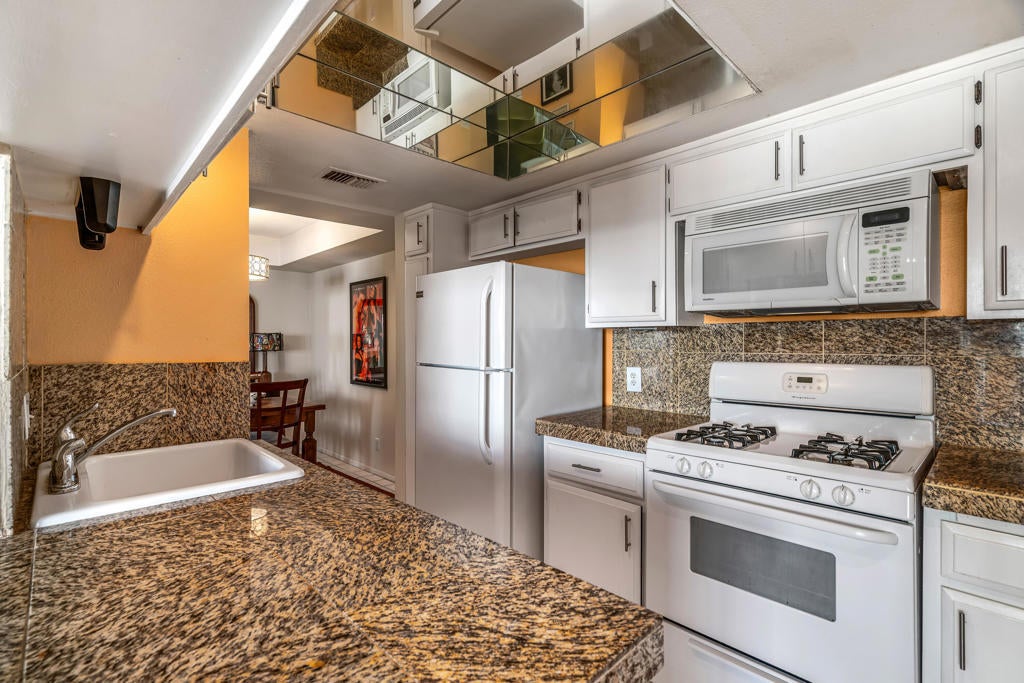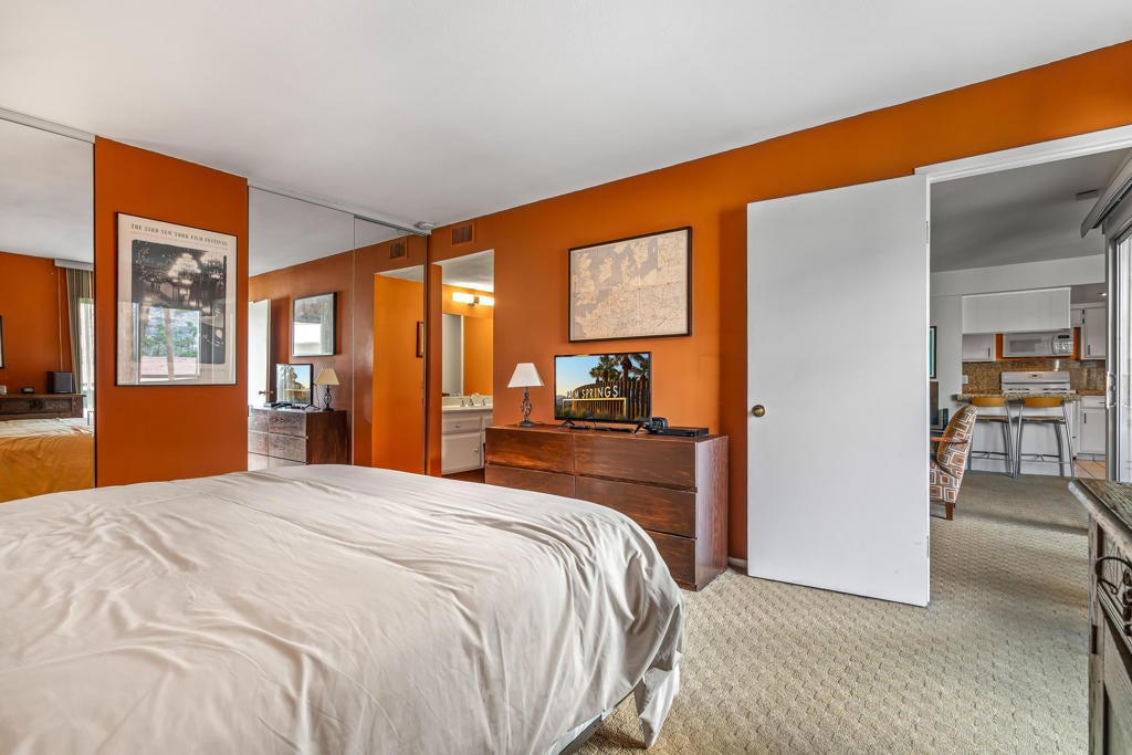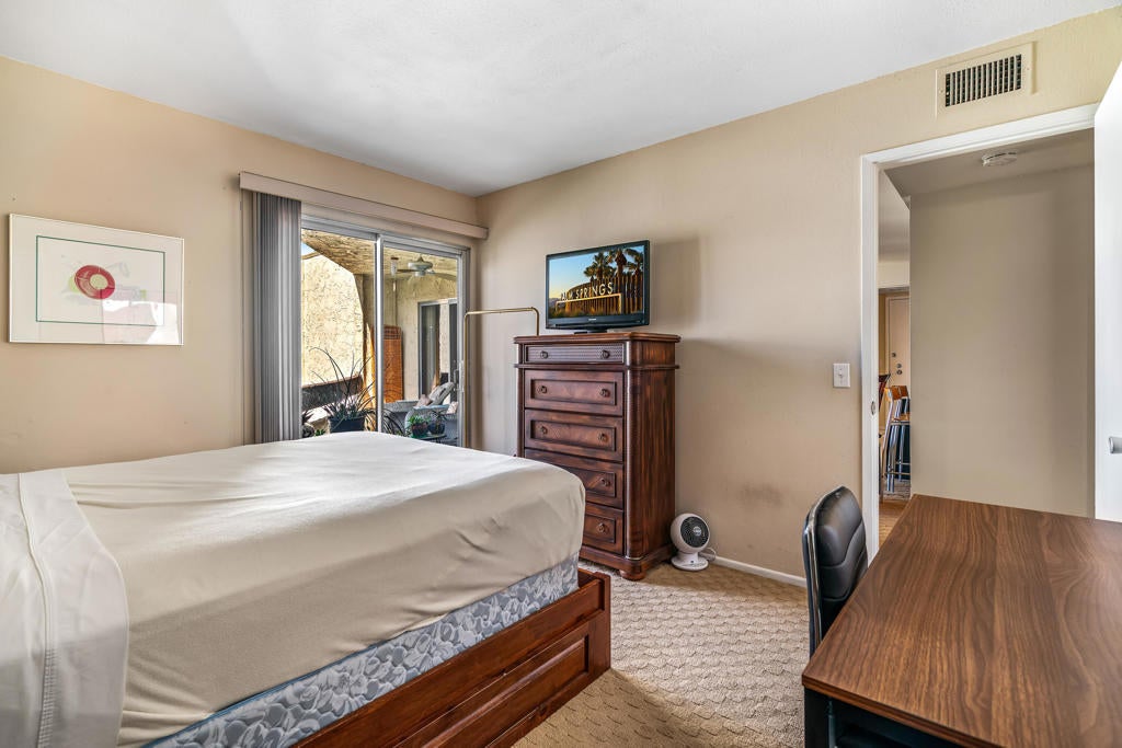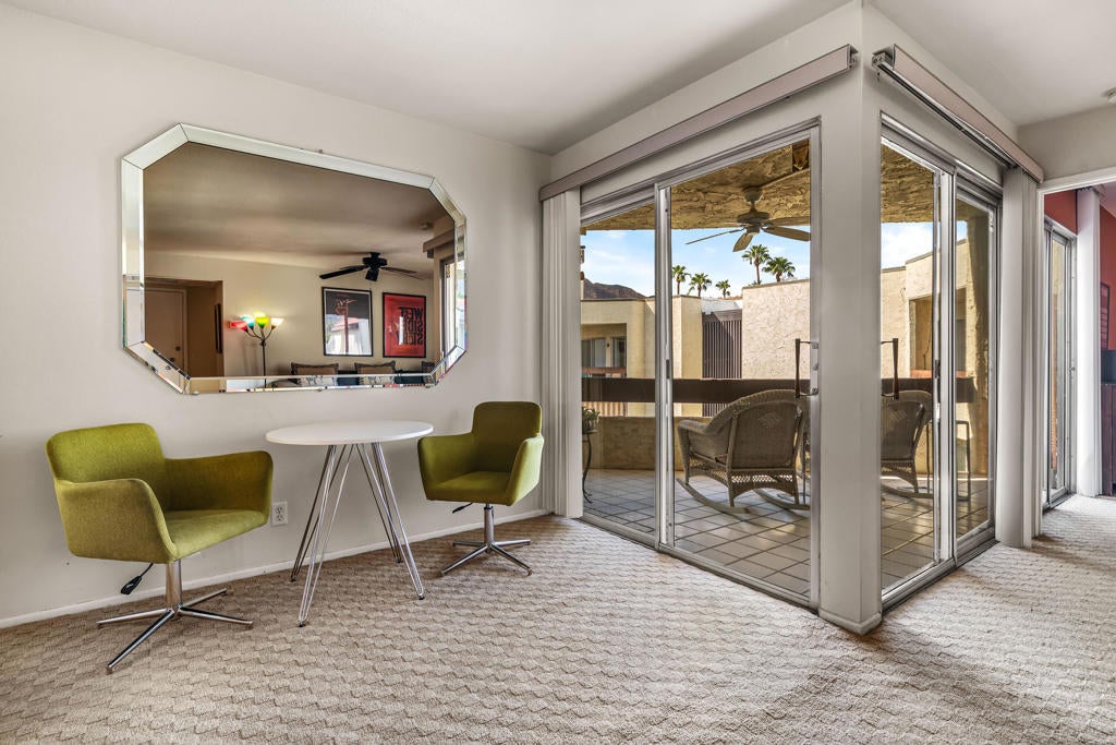 Stunning South End Biltmore II Condo with Spectacular Mountain Views! Nestled in the highly desirable South End of Palm Springs, this exceptional fully furnished Biltmore II condo offers breathtaking west-facing mountain views and unforgettable desert sunsets. Overlooking the beautifully heated pool and spa, this residence is surrounded by lush landscaping, creating the perfect retreat--whether you're seeking a full-time home, a seasonal getaway, or a lucrative rental investment. Step inside and be captivated by the bright and airy layout, where sliding glass doors lead to a private, covered balcony--perfect for savoring your morning coffee or unwinding with a glass of wine as the sun dips behind the mountains. The spacious primary suite boasts an elegant en-suite bath with a sleek walk-in shower, providing a serene space to relax and recharge. The stylishly updated kitchen features modern granite countertops, a breakfast bar, ,wine bar and an open-concept design that seamlessly flows into the living area--ideal for entertaining. Additional highlights include a dedicated carport just steps away, secure building access with an elevator, and an unbeatable location just minutes from downtown Palm Springs' vibrant dining, shopping, and entertainment scene. Enjoy resort-style amenities, including a sparkling heated pool and spa, a shaded cabana, and three gas barbecues--all designed for effortless outdoor living. Whether you're looking for a tranquil escape or a high-demand rental opportunity, this rare gem checks every box. Don't miss your chance to own a piece of the iconic Palm Springs lifestyle!