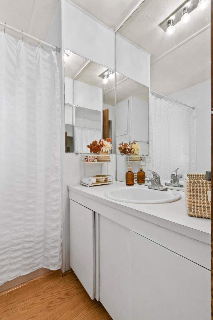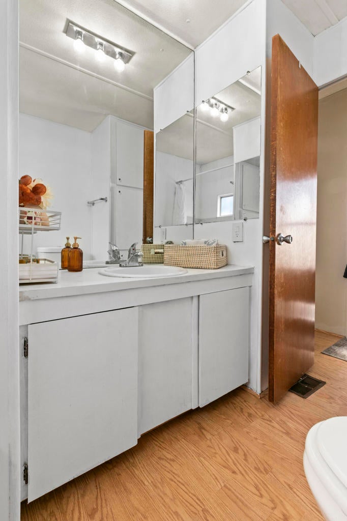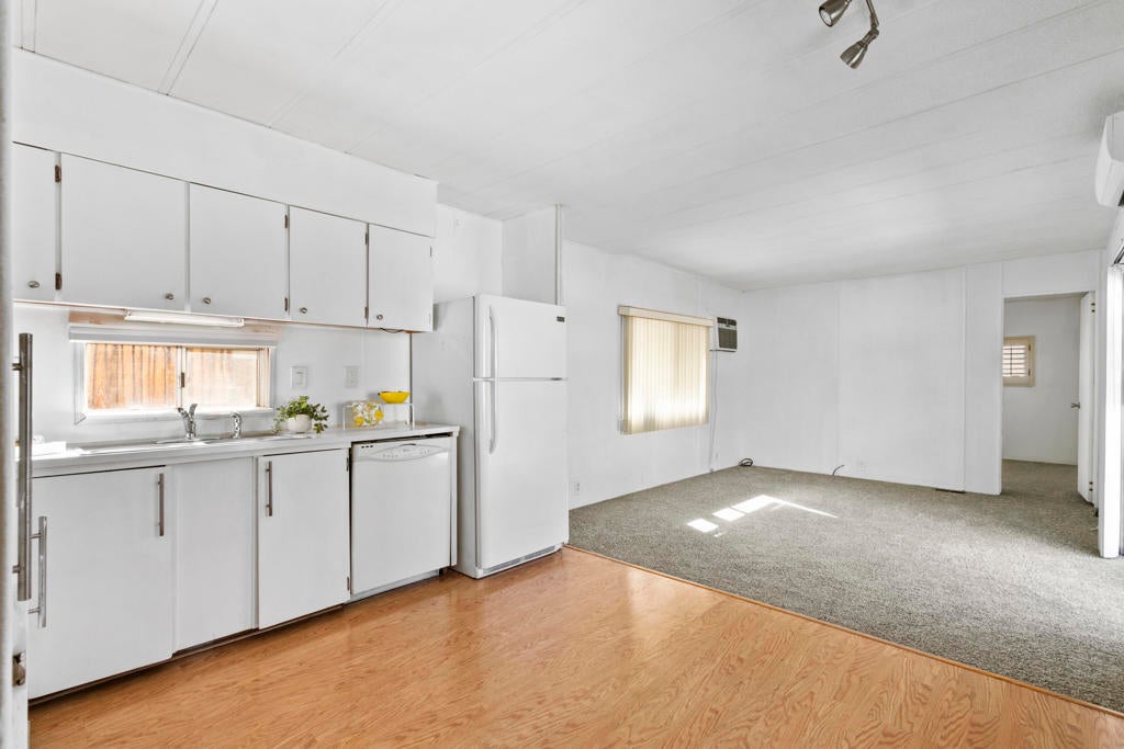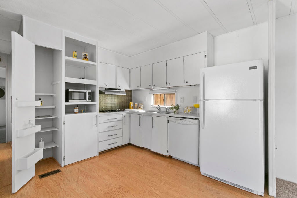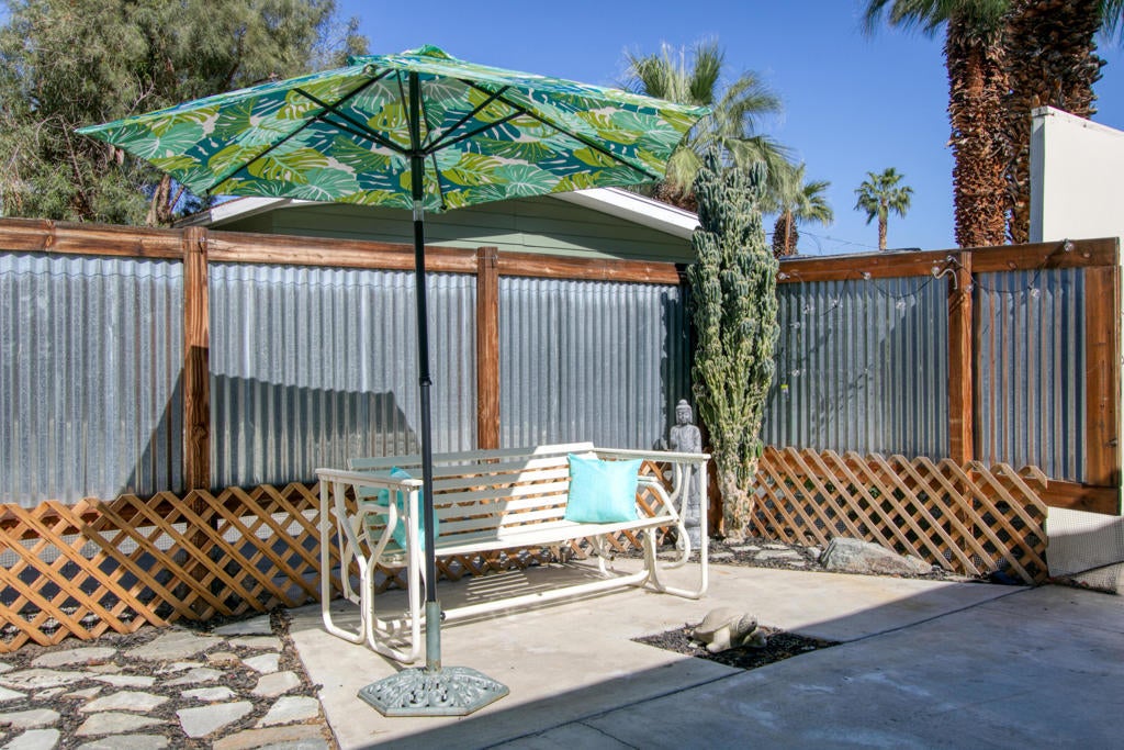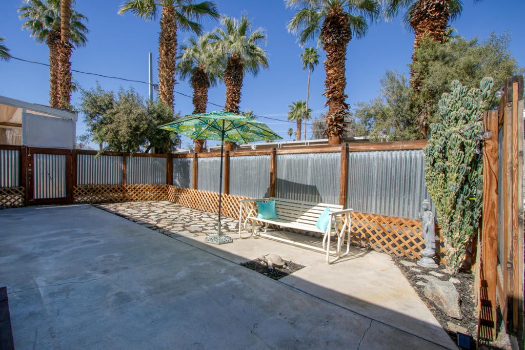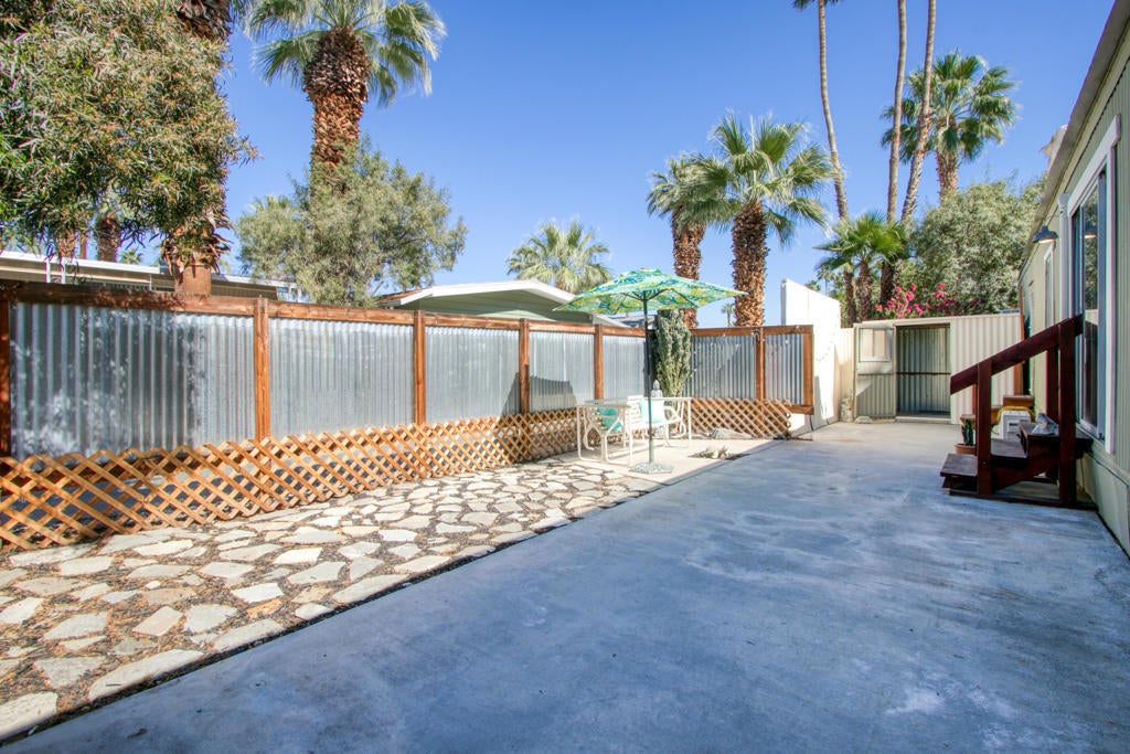 Vintage Mobile, Prime Location in Palm Springs cute and clean ready for move in ''Any Age'' park, A Must See. Priced to Sell Soon.2 separated ample sized bedrooms. Primary bedroom has a ensuite half bath. Full bath has tub/shower combo extra cabinets for towels and toiletries. Kitchen has Light blonde wood flooring, Pantry, Refrigerator, Dishwasher, Microwave, Gas Cooktop area ready for Oven or AirFryer. Washer/Dryer are full size and protected inside one of two storage sheds provided. Lot has 2 vehicle parking. Enjoy your very own gated private ''Outdoor Courtyard Patio'' perfect for gatherings with friends and family, amazing mature Cactus easy care landscape and the San Jacinto Mountains behind you. Homeowners enjoy the year round amenities which include a Clubhouse, Dog Park, Pool/Spa, Fitness Room, Library. Onsite Manager, New infrastructure going on in park gas/electric meters and paved streets will be done before summer. Mini Splits and Swamp Cooler keep the utilities affordable in this home. There is no excuse not to own your full time or second home here in Palm Springs at this price. Park Rent is $925. per month.