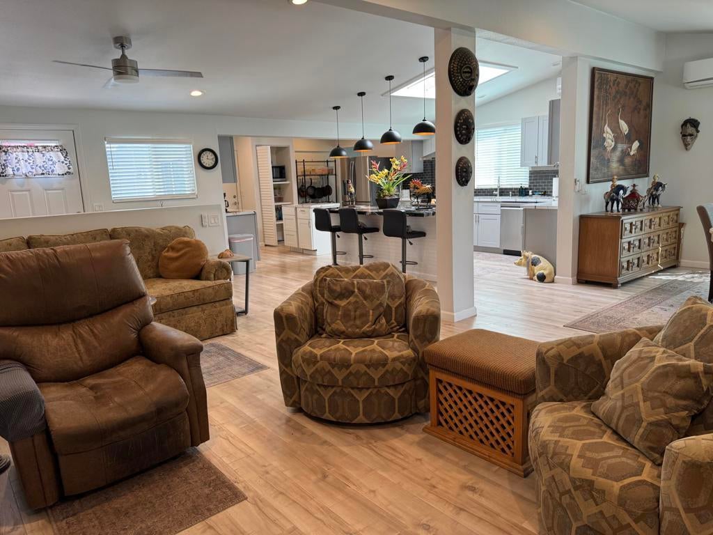 Highly upgraded 2BR/2.5BA manufactured home ideally situated on the 2nd hole in Ivey Ranch Country Club, offering beautiful mountain, golf course, and pond/fountain views. This spacious home features an open floor plan with a large island kitchen and expansive countertop space, perfect for entertaining. The remodeled kitchen includes modern finishes and a convenient instant hot water feature.The primary suite includes a private sitting room/study with mountain views, a remodeled en-suite bathroom, and generous closet space. The second bedroom is a junior suite with its own remodeled bathroom. A large office/study with golf course views provides additional flexible living or workspace.Energy-efficient features include six mini-split A/C systems and a tankless hot water heater. Additional highlights include an extra-large two-car garage with ample storage.This Property is offered Furnished per Seller's Exclusion List and has a 413 permanent Foundation for Easy Financing. Just a few minutes walk to the Clubhouse with Pool and Spa. Ivey Ranch CC & GC, is a gated, senior community of manufactured homes integrated with a 9 hole golf course, Pro-shop, Driving Range, 4 community pools, 2 community spas, Club House and a Seasonal Restaurant. In Ivey Ranch you own the land.