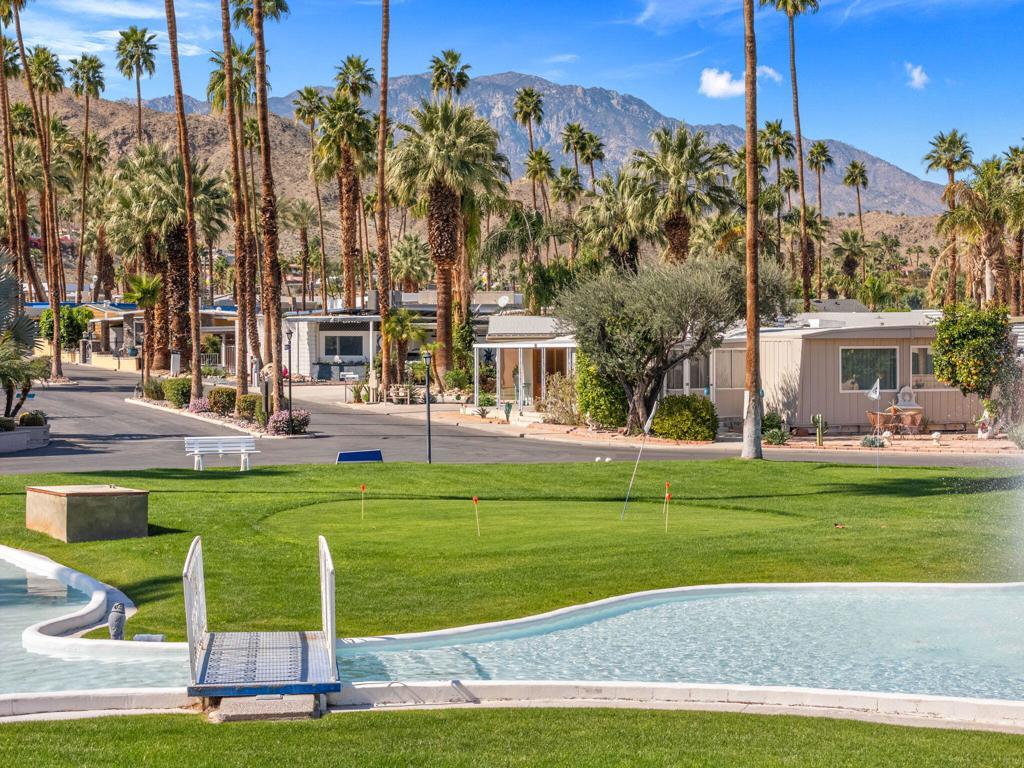 Welcome to Blue Skies Village, a gated senior community steeped in Hollywood history and established by Bing Crosby and his famous friends in the 1950s. This delightful 1-bedroom, 1-bathroom mobile home offers 856 square feet of comfortable living space, perfect for a relaxed lifestyle. Inside, you'll find 2 new mini splits, to save utility costs. The electrical and plumbing have also been recently updated. The bathroom features a single vanity and a spacious walk-in shower, adding a touch of luxury to your daily routine. The bedroom is cozy, providing a tranquil retreat at the end of the day. The property includes a carport with an overhead garage door, ensuring your vehicle is protected from the elements. Location is everything, and this home is ideally situated within a short distance of the community's saltwater pool, card room/library, billiard room, and fitness area. There is a bus stop just outside the main gate for added convenience. Socialize with neighbors or enjoy some quiet time in these well-maintained amenities. The heart of Blue Skies Village, Tanner Hall, was designed by renowned architect William F. Cody, adding a touch of mid-century modern architectural elegance to your community gatherings. Don't miss this opportunity to live in a piece of Hollywood history, surrounded by beautifully landscaped grounds and a welcoming community. Contact us today to schedule a viewing and make this charming mobile home your new residence in Blue Skies Village