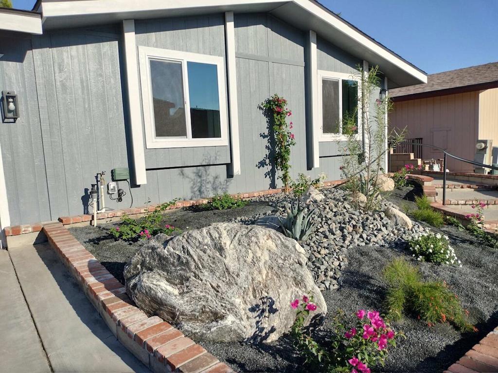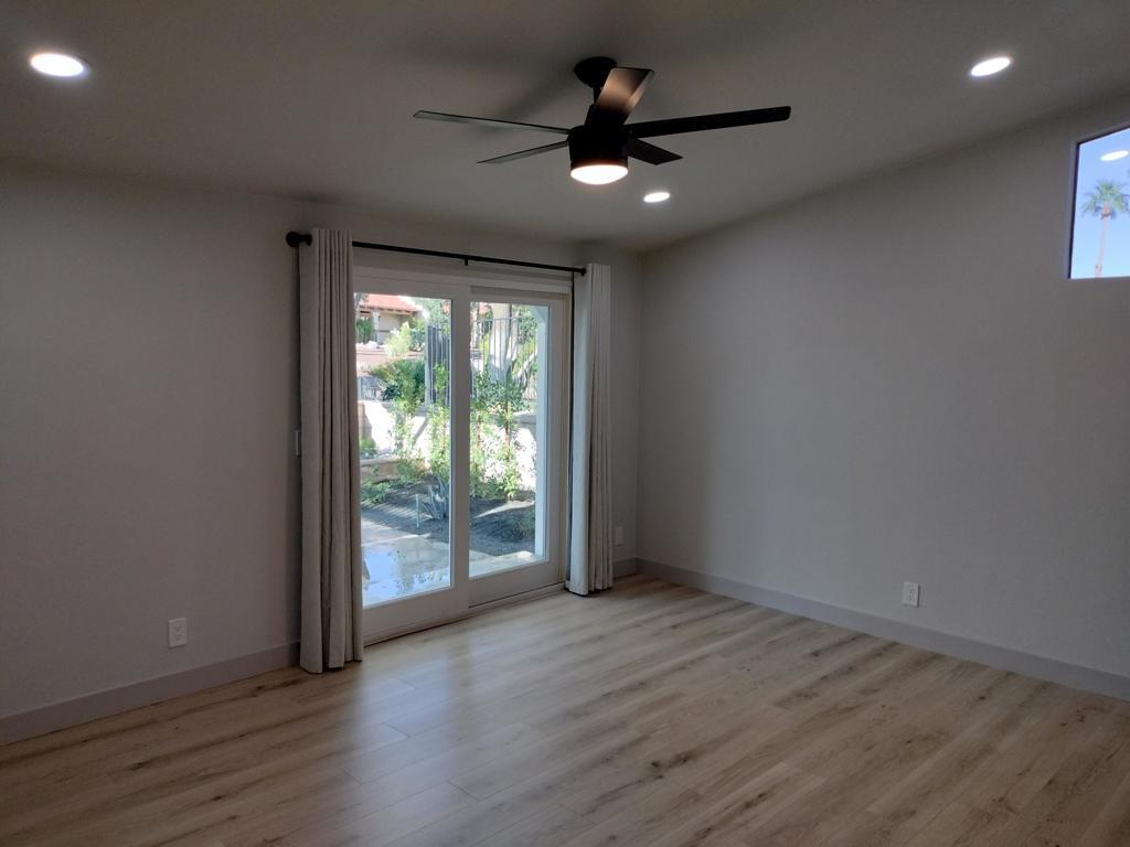 Totally remodeled from top to bottom beautiful 3-bedroom and 2 bath home in desirable Desert Willows community with beautiful grounds and amenities for a low HOA fee. This home is on a prime interior lot and location in the community with easy access to the beautiful clubhouse with wonderful amenities, pool, tennis courts and gardens. This home is located in the middle of the block and is a standout with the newly painted exterior and new coordinated drought tolerant landscape with all new timed irrigation. When you pull up to this property you will notice new windows and a new dimensional roof. The roof was a complete tear off and re-sheeting along with new fascia all the way around.The new front door and tiled exterior landing lead you into a bright newly remodeled entry, living and dining room space which is open concept to a stunning kitchen. From this space you are drawn to the outdoor patio and colorful lush landscape complete with 2 new custom pergolas. The backyard has a rear gate to the HOA amenities such as the clubhouse, pool, tennis courts and more. The HOA grounds are beautiful and meticulously maintained. There are vaulted ceilings, recessed lighting and remote-controlled ceiling fans throughout. This kitchen is above what anyone would expect. There are white full height shaker soft close cabinets, quartz countertops, marble backsplash, upgraded stainless LG appliance suite, double ovens with convection cooking and gas cooktop. The kitchen sink overlooks the patio and garden with easy access to the outside for BBQing and entertaining. This is a split floorplan with two generous sized bedrooms with ample closet space with mirrored doors and matte black accents. In the hallway to the guest bedrooms there is a laundry closet with a new full size LG washer and dryer and new cabinetry above. Also, there is a beautifully remodeled guest bath with custom tile, a tub/shower, new light wood vanity with matte black faucets and finishes.On the other end of the home there is a very large master suite with walk-in closet and attached remodeled spacious bath. This bath has a large double sink vanity with lots of storage and drawers, quartz counters, oversized custom tiled walk-in shower with custom glass enclosure, comfort height low flow toilets and matte black fixtures.Other improvements are waterproof flooring throughout, new electrical, new plumbing, new windows and sliders, cold AC, tankless H2O heater, attached 2 car garage and more!