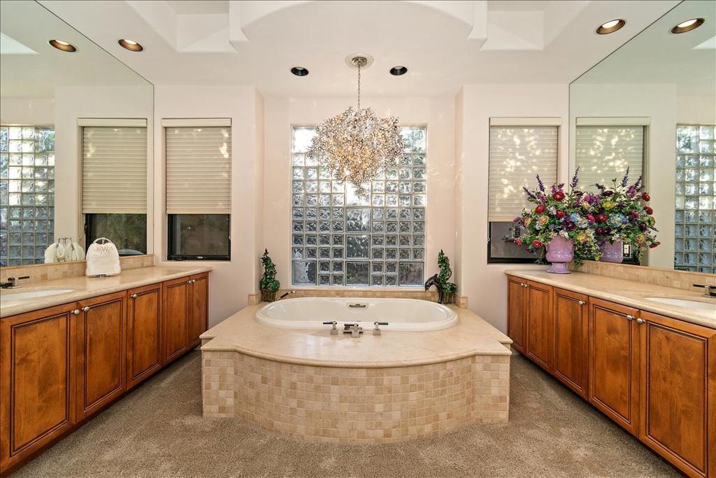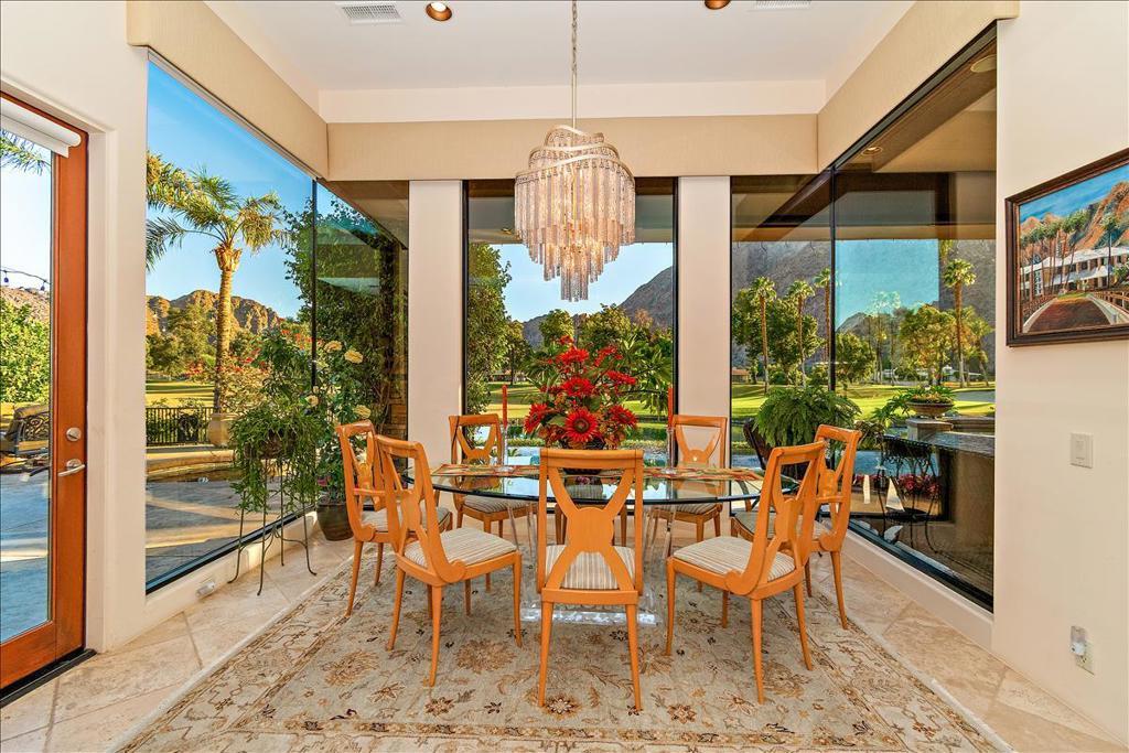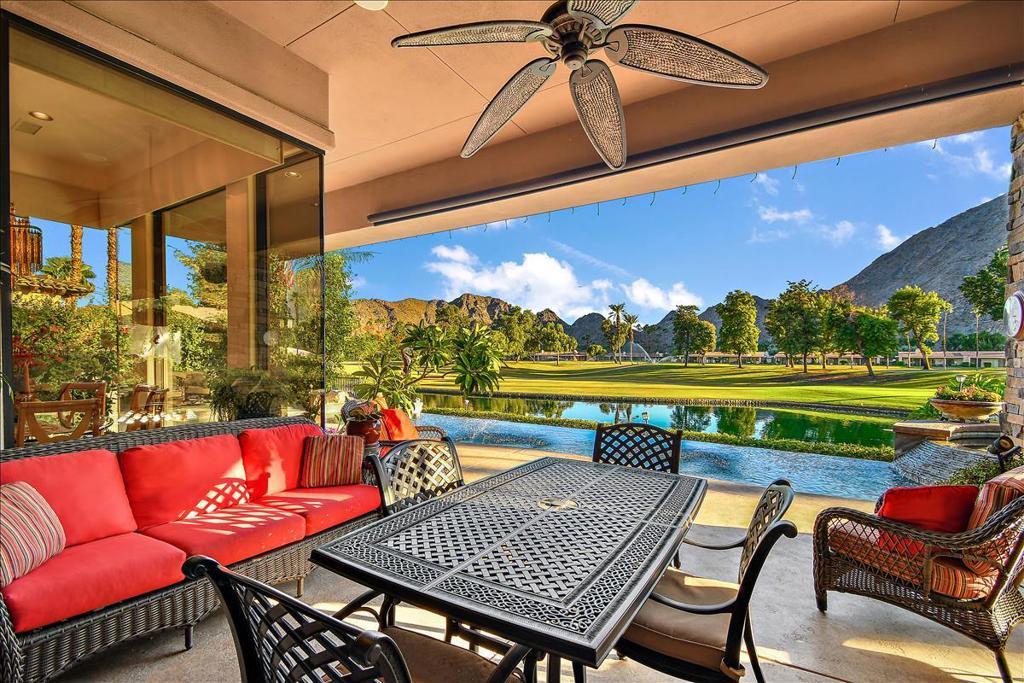 This is the home you have been waiting for! You will be amazed as you enter the gate of this picture perfect home in Indian Wells CC with 4 bedrooms (one bedroom is a detached casita), 4.5 baths, 3 car garage plus golf cart garage. The spectacular panoramic south mountain, lake, and golf course views are some of the best in the desert. This immaculately maintained gorgeous home has it all- great room plan with high ceilings and fireplace, chiseled travertine floors, slab granite in the kitchen with almost new appliances and oversized walk in pantry, dry bar, built in office or 4th bedroom, master suite with fireplace, double vanities, large tub, bidet, walk in shower, and supersized double closets. All the bedrooms have ensuite baths. The oversized detached courtyard casita has breakfast bar and mini refrigerator, fireplace, living area, ensuite bath, walk in closet, and private patio. The fabulous lushly landscaped outdoor area features a rose garden, fruit trees, large area for entertaining, artificial turf, misters, fire pit, built in BBQ with stacked stone facade, and bar, covered patio area with stone pillars and wall with fireplace, misters, large infinity pool and spa, coated concrete throughout the outdoor area. The garage has a split AC, cabinets, and epoxy floors. There many more upgrades that are too numerous to name. There is no HOA fee though there is manned gate. Please come and view this unbelievably beautiful home and see for yourself! You can enjoy paradise with a breathtaking view in a prime location every day.