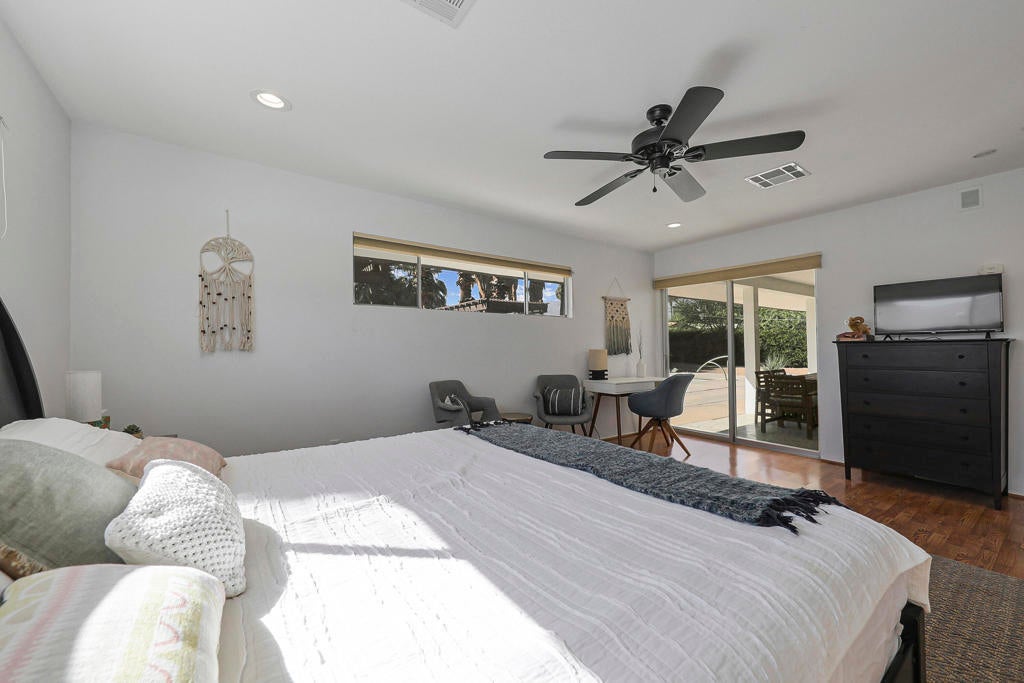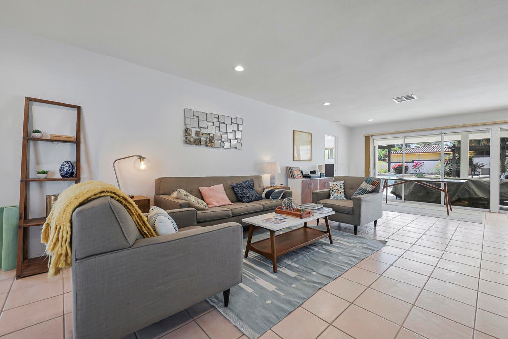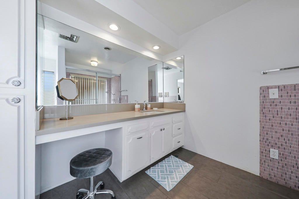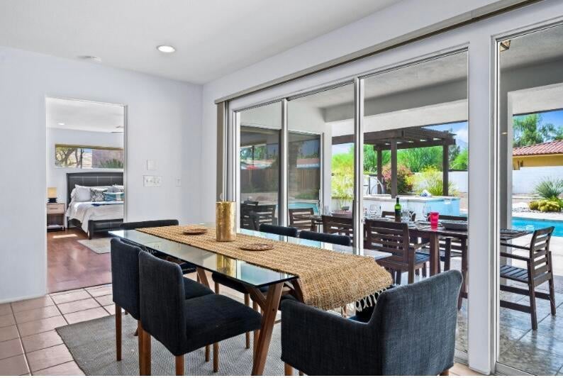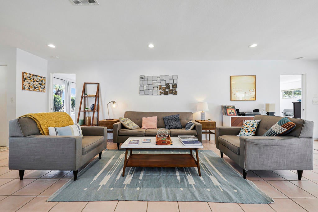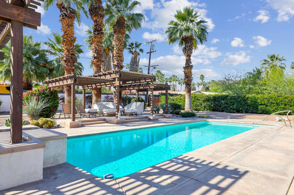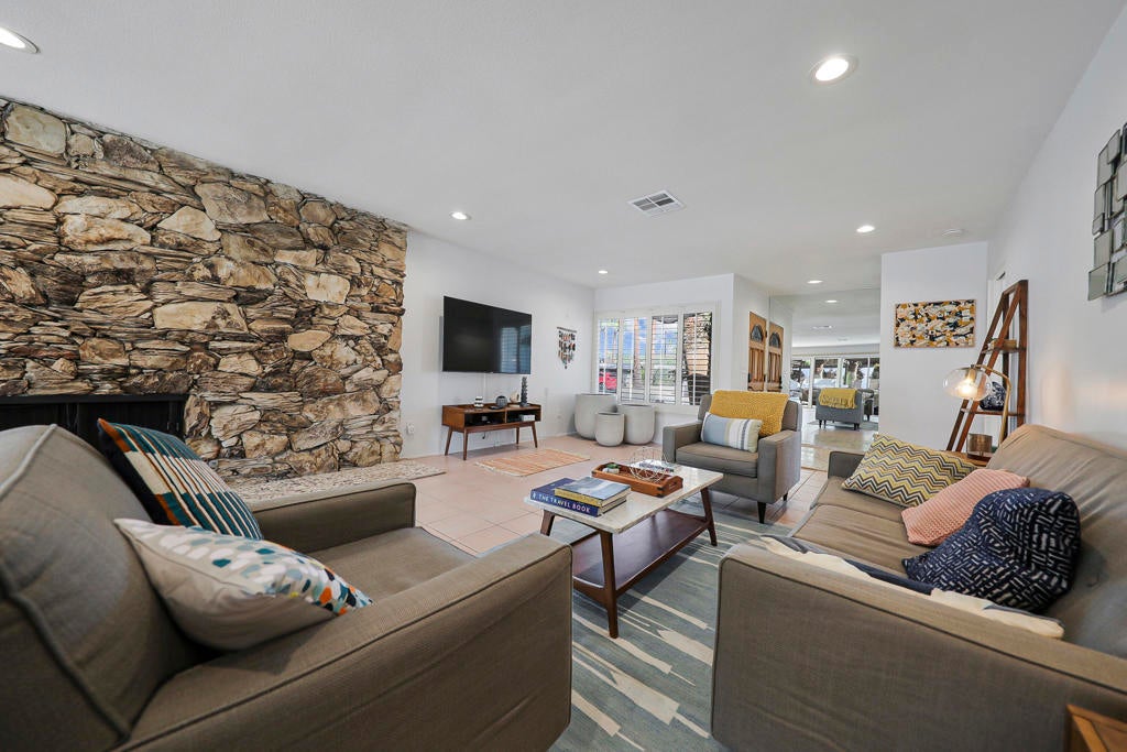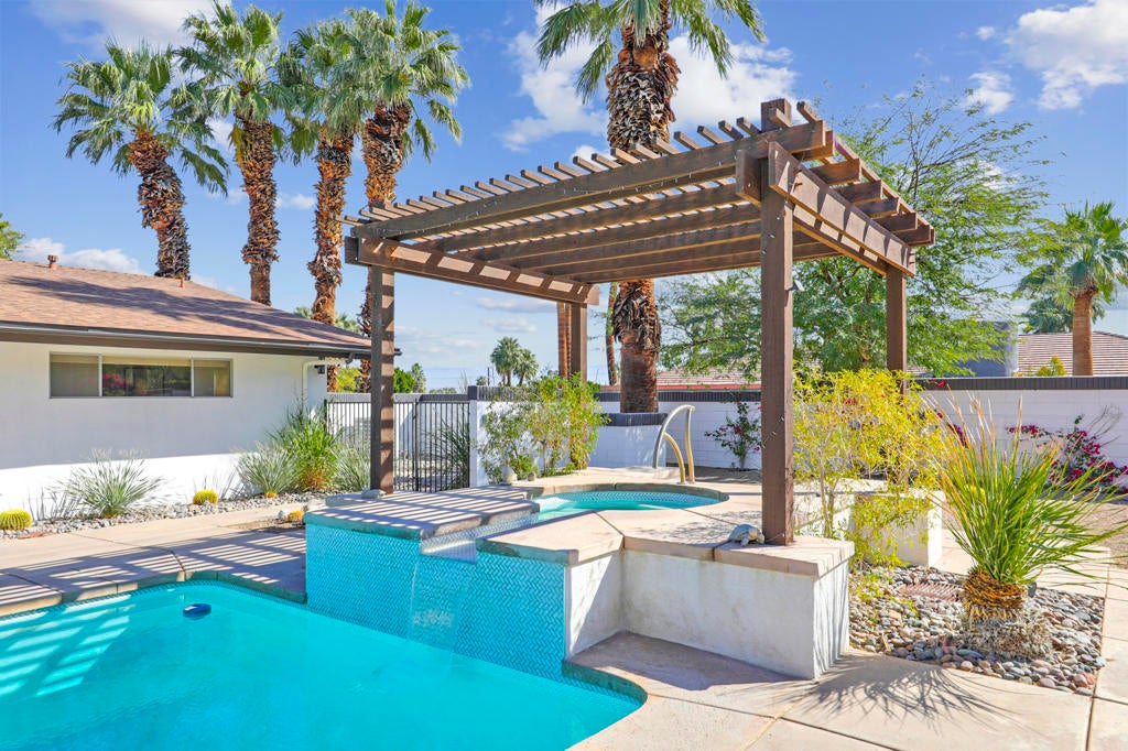 This one checks ALL the boxes!!! Prime location in sought-after prestigious neighborhood of SOUTH PALM DESERT! This spacious Mid-Century Modern 3-bedroom 3-bathroom ( all with walk in closets) is on a large 14520 square foot (1/3 acre).lot. Beautifully maintained by the discerning homeowner, retaining the originality of yesteryear, the 2,156 square-foot home is conveniently located near El Paseo with its fine-dining options and shopping, It boasts spectacular views from the large patio-shaded backyard outdoor living area, with backyard access from the dual master bedrooms. Not to be missed is the picturesque full-size slider window in the living room, with unobstructed Southerly views and the renovated 1960's pool and waterfall spa. There is a side gate for RV parking or a potential ADU for someone looking to build on for guests aging parents, or rental income. All three bedrooms have ensuite bathrooms and expansive walk-in closets. The stacked rock fireplace and sunken tubs is a time capsule for architects like Burns, Meiselman and Wexler in the 1960.s. The back yard and pool area is exactly what the desert lifestyle is all about!!! NO HOA , easy to show!!