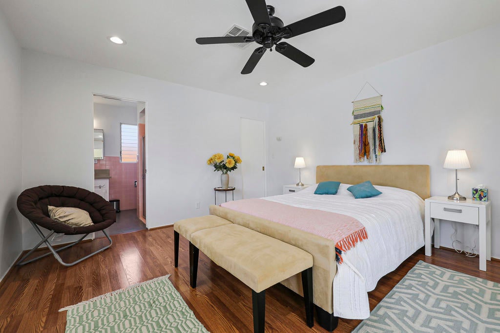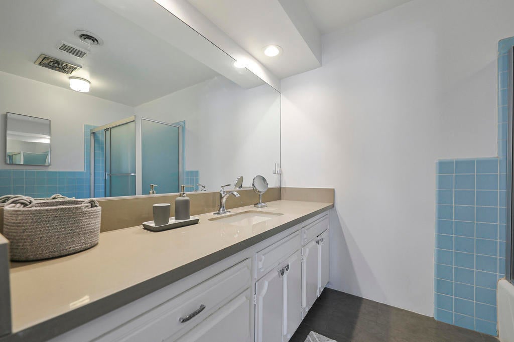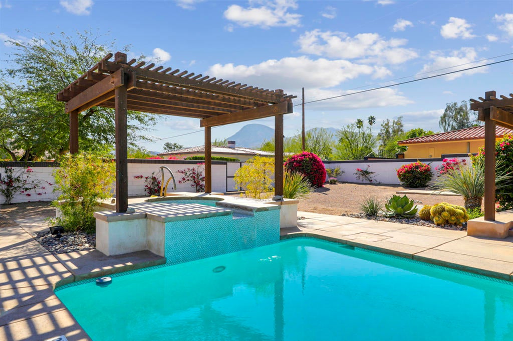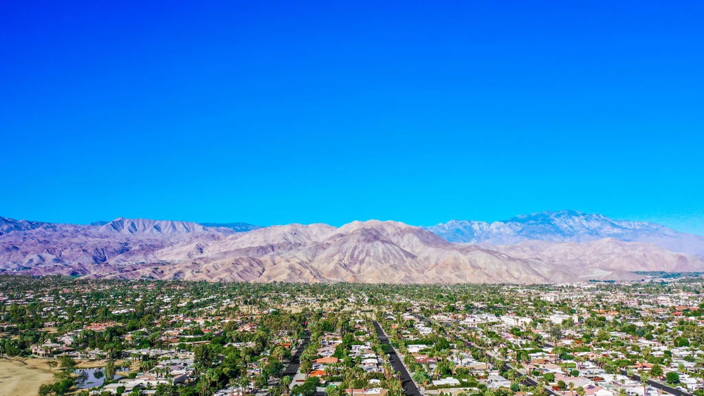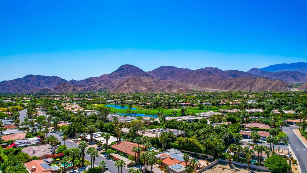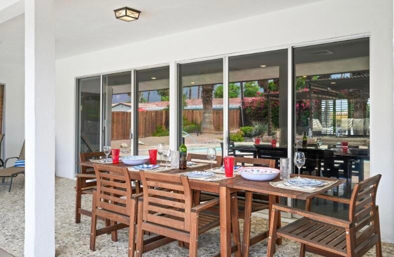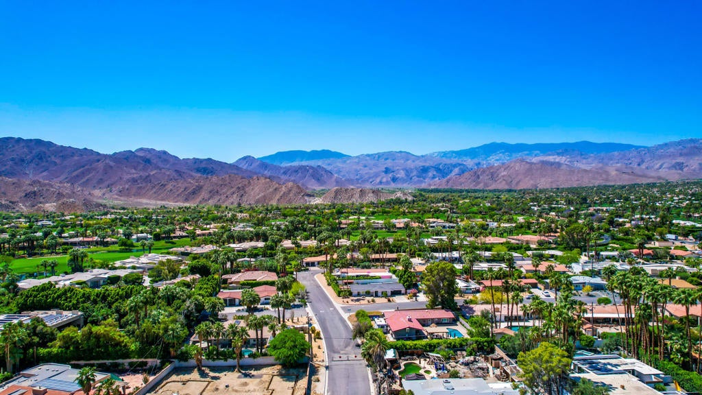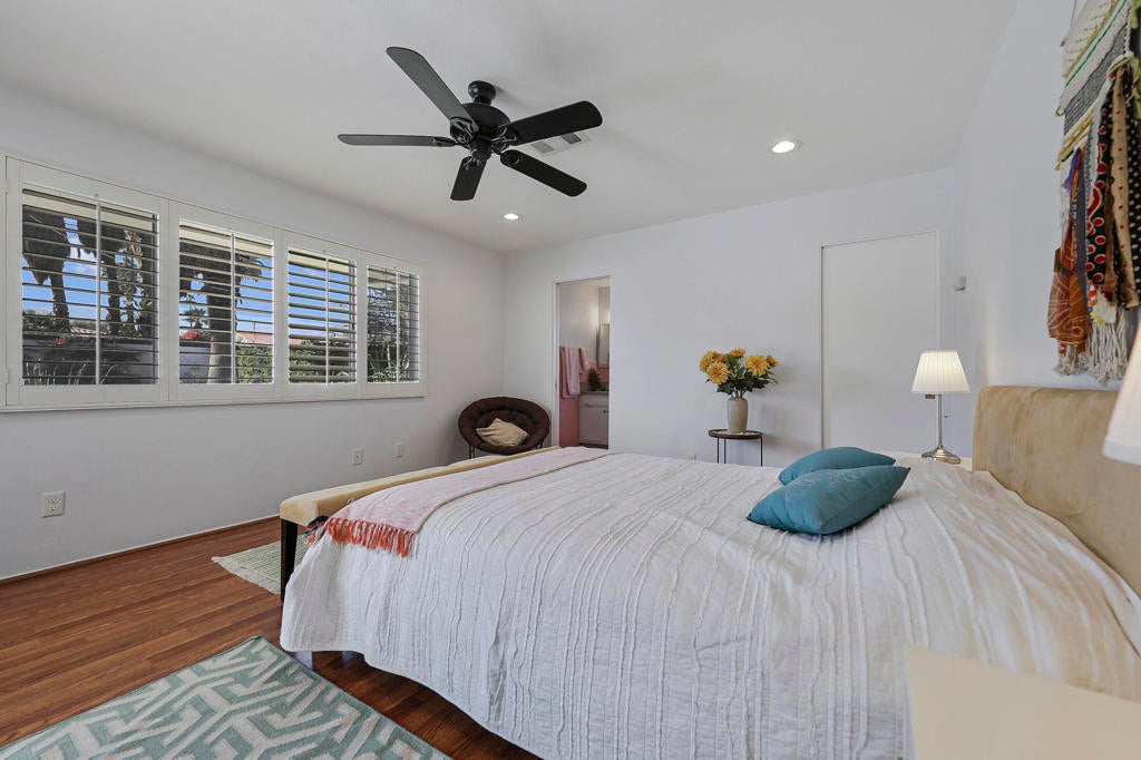 This one checks ALL the boxes!!! Prime location in sought-after prestigious neighborhood of SOUTH PALM DESERT! This spacious Mid-Century Modern 3-bedroom 3-bathroom ( all with walk in closets) is on a large 14520 square foot (1/3 acre).lot. Beautifully maintained by the discerning homeowner, retaining the originality of yesteryear, the 2,156 square-foot home is conveniently located near El Paseo with its fine-dining options and shopping, It boasts spectacular views from the large patio-shaded backyard outdoor living area, with backyard access from the dual master bedrooms. Not to be missed is the picturesque full-size slider window in the living room, with unobstructed Southerly views and the renovated 1960's pool and waterfall spa. There is a side gate for RV parking or a potential ADU for someone looking to build on for guests aging parents, or rental income. All three bedrooms have ensuite bathrooms and expansive walk-in closets. The stacked rock fireplace and sunken tubs is a time capsule for architects like Burns, Meiselman and Wexler in the 1960.s. The back yard and pool area is exactly what the desert lifestyle is all about!!! NO HOA , easy to show!!