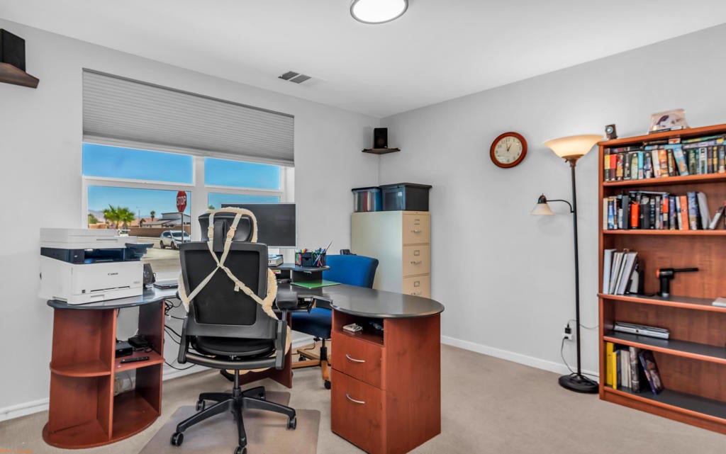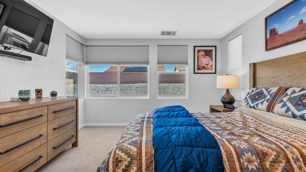Price Improvement! Corner Lot Home with Stunning San Jacinto Mountain ViewsCorner lot home thoughtfully designed by the renowned architecture offering custom-level finishes at a production-home price. This open-concept floor plan features soaring 11+ foot ceilings and a bright, naturally lit great room ideal for everyday living and entertaining.The spacious primary suite includes a well-appointed ensuite bathroom with a hand-crafted tiled shower, dual vanities, private water closet, and a large walk-in closet.Situated on an approximately 10,000 sq ft lot, the backyard offers privacy and functionality with a fully walled perimeter, fresh rock landscaping, a brand-new Alumawood patio cover, and convenient side street gate access. Enjoy panoramic views of the San Jacinto Mountains from your outdoor living space.Additional features include a paid solar system, energy-efficient design, GE stainless steel appliances, maple cabinetry, and porcelain tile flooring throughout.No HOA and no Mello Roo's.This property offers a combination of design, efficiency, and location at an improved price.