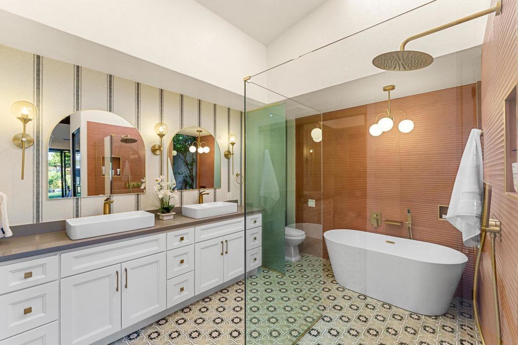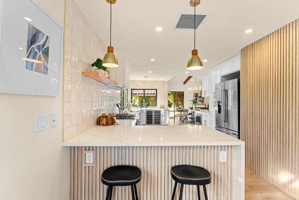 Extensively remodeled unfurnished long-term rental located in the prestigious gated community of Los Lagos in Indian Wells. This beautifully updated residence offers approximately 2,448 sq ft of open living space with vaulted wood-beamed ceilings and an upgraded fireplace with custom concrete finish. The home features upgraded appliances, custom kitchen cabinetry, updated flooring, fresh interior paint, remodeled bathrooms, and contemporary fixtures throughout. Enjoy serene lake and waterfall views from the kitchen, living room, den, and primary bedroom, creating a peaceful indoor-outdoor living experience. Detached casita with raised wood-beamed ceilings, updated flooring, and remodeled bathroom provides a private space for guests, extended family, or office use. Converted golf cart garage adds versatile bonus room ideal for gym, office, or creative studio. Outdoor areas feature interlocking brick pavers connecting patio and driveway, perfect for relaxing or entertaining. Situated in a quiet prime location within Los Lagos, a private community of 89 homes across 35 acres of lush landscaping, lakes, and waterfalls. Residents enjoy exclusive Indian Wells benefits including discounts to the BNP Paribas Open and local amenities. Rare opportunity to lease a fully upgraded unfurnished home in one of Indian Wells' most desirable communities.