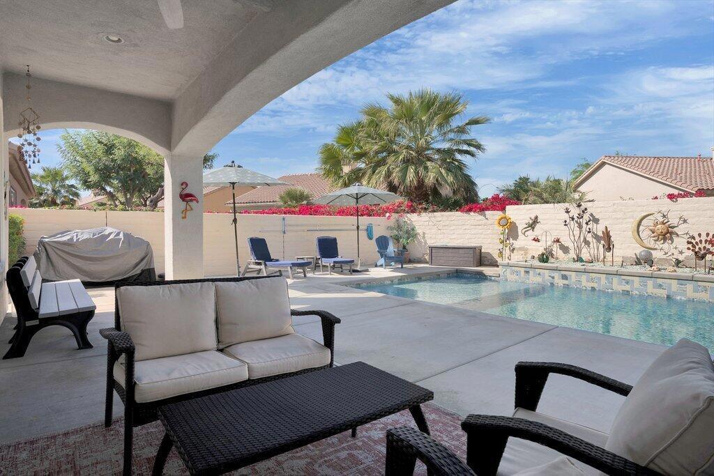 Opportunities like this don't come often--this San Benito model in Sun City Shadow Hills, is move-in-ready and is priced to sell. Offering 2,147 square feet of beautifully refreshed living space on an oversized 9,000+ square foot lot, this home delivers the perfect blend of comfort, style, and peace of mind with some major improvements already completed. Thoughtfully designed for both everyday living and entertaining, the open-concept layout features a huge primary suite, an additional bedroom with another full bath and two additional rooms to use as an office, a hobby room or you decide!Soaring ceilings create an airy, light-filled atmosphere that feels both expansive and inviting. This home truly stands out with extensive, high-value upgrades, including:All new windows (with white trim - the rest of the community has beige) for improved energy efficiency and natural lightNew living room slider and upgraded primary suite patio door for seamless indoor-outdoor flowFresh interior and exterior paint for a clean, modern finish (2025/2026)Upgraded 3.5-ton HVAC system for year-round comfort (2018)Newer (2018) water heaterSignificant attic plumbing replacement/upgrade for added reliability Step outside to your own private retreat, where a newer pool, professionally installed in 2021 creates a serene, resort-style setting--perfect for relaxing or entertaining with ease and complete with a 10'x8' tanning deckHomes with this level of care and value rarely stay on the market--this is a true turnkey opportunity you don't want to miss.Experience resort-style living at its finest in this premier 55+ community--an exclusive oasis that feels like a city within a city. Residents enjoy an exceptional array of amenities, including a restaurant, snack bar, elegant clubhouses, tennis courts, pickle ball courts, sparkling pools, two state-of-the-art fitness centers, indoor track, library, yoga studio, and a vibrant calendar of social and recreational activities.
