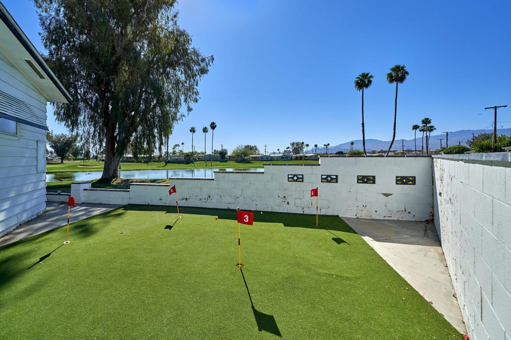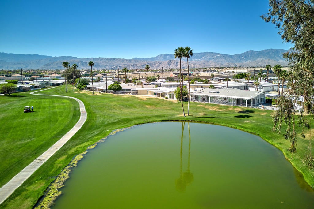 Beautifully updated golf course home in desirable Tri Palm Estates & Country Club! Ideally situated on an oversized private flag lot overlooking the 17th and 18th holes and tranquil pond, this spacious residence offers panoramic mountain and fairway views.Step inside to find a bright, open layout enhanced by designer paint, tasteful furnishings, and thoughtful upgrades throughout. Recent improvements include a new refrigerator, tasteful furnishing & fixtures, washer/dryer, new air conditioner and furnace--providing comfort and peace of mind. The functional utility room features a stacked washer/dryer along with ample additional storage.Enjoy seamless indoor-outdoor living with a wraparound patio--perfect for relaxing or entertaining while taking in the stunning golf course and mountain scenery. The property also includes an attached garage, separate golf cart garage/workshop, and abundant guest parking.Located just moments from the community entrance and clubhouse, this home offers both privacy and convenience. Tri Palm Estates & Country Club is a vibrant 55+ community where you own the land, and ownership includes unlimited golf for two deeded owners on both the 18-hole and 9-hole courses, as well as access to a putting green, pools and spas, tennis, pickleball, basketball, shuffleboard, and a full-service clubhouse with dining, bar, billiards, banquet space, and more.Conveniently close to shopping, dining, entertainment, and major amenities, with easy access to I-10 and nearby Rancho Mirage, Palm Desert, and Palm Springs. Clean, furnished, and move-in ready--an exceptional value for golf course living!