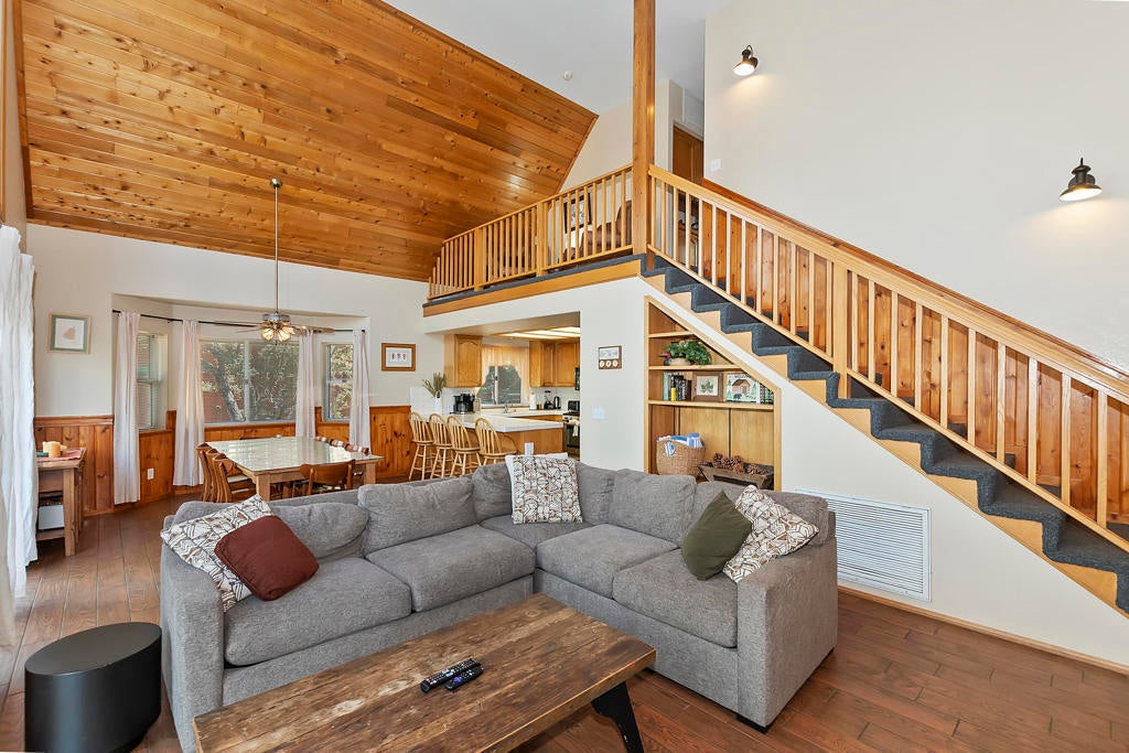 Breakfast Bar, Cathedral Ceiling(s), Separate/Formal Dining Room, High Ceilings, Living Room Deck Attached, Two Story Ceilings, Bedroom on Main Level, Loft, Partially Furnished