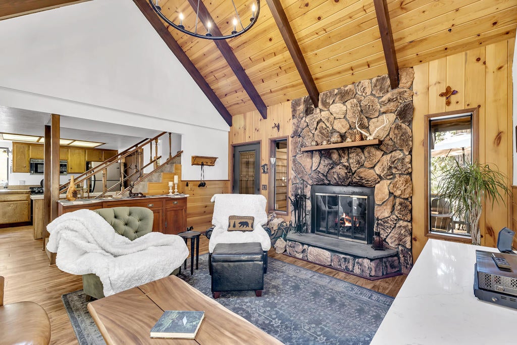Welcome to Hawk's Ledge, a serene mountain escape tucked into the highly sought-after Fern Valley area of Idyllwild, where peaceful living meets exceptional value. This beautifully maintained 3 bedroom, 2 bath cabin is being offered FURNISHED which is an incredible opportunity to own a true mountain retreat at a price point that is becoming increasingly hard to find in this location. From the moment you step inside, you're welcomed by soaring wood-beamed ceilings, expansive windows, and a cozy fireplace that anchors the space. Natural light pours in, highlighting the rich wood tones and craftsmanship that give this home its warm, inviting character. The open flow between the living, dining, and kitchen areas makes it ideal for both entertaining and quiet mountain evenings. The kitchen offers generous counter space, an expansive pantry, and everything needed for everyday living or weekend hosting, all while maintaining that classic cabin charm buyers are drawn to. Thoughtfully cared for over the years, this home features a newer roof installed just four years ago, as well as leach lines, along with recently stained and painted exterior, and giving buyers confidence and peace of mind. Whether you're looking for a full-time residence, weekend getaway, or investment opportunity, Hawk's Ledge delivers not only on charm and location, but on value. This is more than a home, it's a chance to own your piece of Idyllwild at a compelling price.