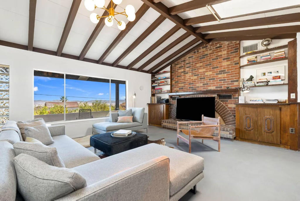Turnkey STR Investment: Restored Mid-Century modern on 3.15 Acres | $50K-$70K Annual Income Potential-Buyer may be an absentee owner!Rare opportunity: This fully restored 2,200 sq ft mid-century modern home on 3.15 private acres (5 separate lots) is TURNKEY for short-term rental income or your personal desert retreat. Located minutes from Joshua Tree National Park in an STR-approved zone, this property is ready to generate $50K-$70K in annual gross rental income--well above the $39K area average.The home features open-concept living with authentic mid-century finishes and abundant natural light. A spacious 2-car garage includes a separate workshop/studio area--a unique amenity that appeals to artist travelers, makers, and creative professionals seeking inspiration in the high desert. Outside, 3.15 acres of privacy include 5 consolidated parcels, 3 separate driveways, mature olive trees, and a productive fruit orchard that photographs beautifully for listing photos.Twentynine Palms STR properties average $185/night at 58% occupancy = $39K annually. This property's unique features (acreage, mature landscaping, workshop space, orchard) justify premium pricing of $275-$335/night, projecting $50K-$70K gross annual income. VHR permits are available but competitive (cap of 500 citywide, 386 issued/pending as of mid-2025).Perfect for: STR investors seeking high-cash-flow desert property Artists/creatives wanting live-work space + rental income Lifestyle buyers seeking privacy + income potential Owner-occupants who want STR income while travelingKey Features:- 2,200 sq ft restored mid-century modern- Turnkey STR setup (clean, photographed, ready to list)- 3.15 acres (5 parcels, 3 driveways) = privacy + flexibility- 2-car garage + separate workshop/studio space- Mature olive trees & productive fruit orchard- STR-friendly zoning (VHR permit required, available)- Minutes from Joshua Tree National Park east entrance- Unobstructed mountain & desert views