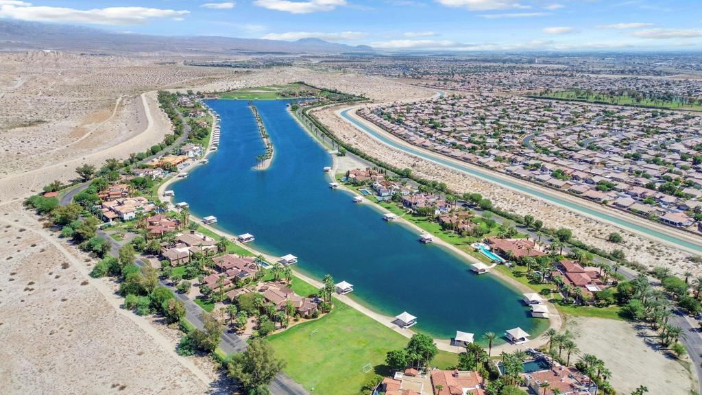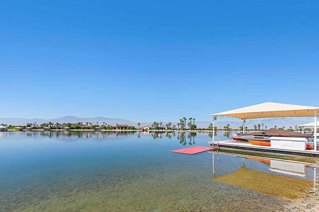 AVAILBLE NOW! Turnkey furnished- ask for discount for multiple months! Welcome to this gorgeous LAKE front, Private Beach and Boat Dock estate home at ShadowLake Estates, an active water ski & sport lake w/2 slalom water ski runs, paddle boarding, fishing, wakeboarding, sailing and efoil; only 21 min from Palm Springs. Four bedrooms, Theater Room, Game Room and open living, kitchen and dinning concept is 6000 sf. The dinning room is stunning and opens fully to the lake and back yard with easy sliders that tuck away. Fabulous open wine cellar and gorgeous artistic fireplace is the focal point between the blurred lines of indoor and outdoor space. This drop dead gorgeous LAKE front home features seamless indoor outdoor resort style living. The outdoor living space will be your favorite hangout. You even have your own Private boat dock & lift & Private Sandy Beach. This home is available furnished and made for living, attention to every detail in form and function. ShadowLake Estates is 20 min to El Paseo, 3 min to Landmark Golf, 5 min from Polo Fields / Coachella, 10 min to PGA West, 7 min to the Acrisure Arena, 7 min to Bermuda Dunes or the Thermal Private Airports, 21 min to Palm Springs. This home is a dream get away a place for the entire family, you might even get the kids to put down their phones!