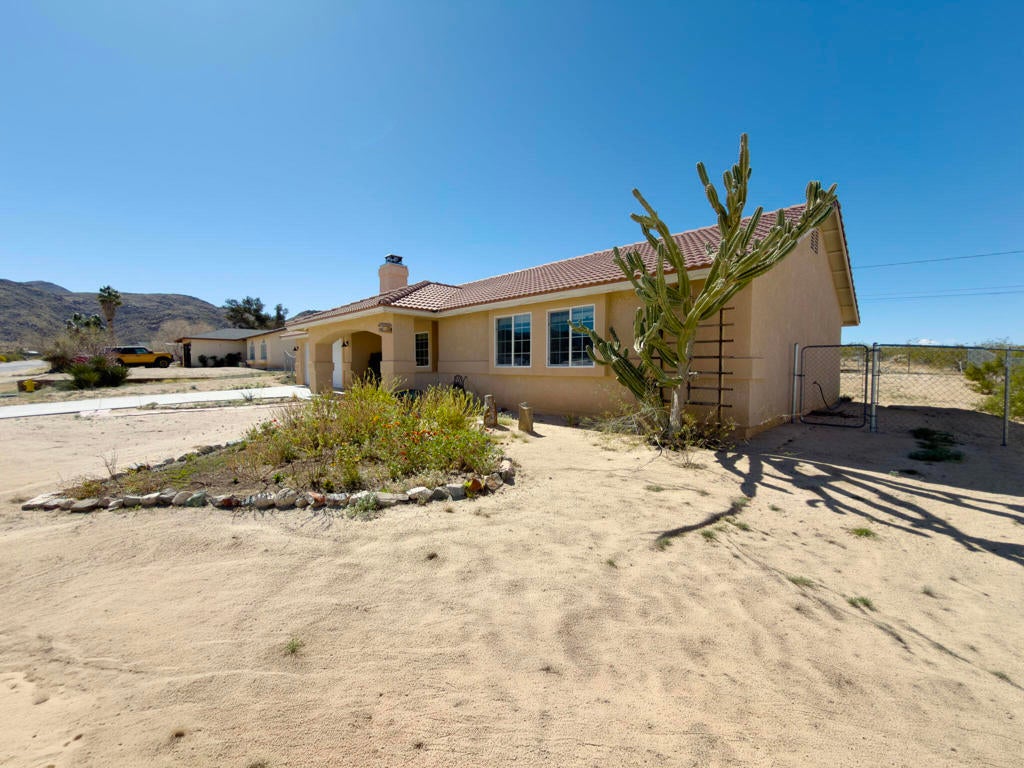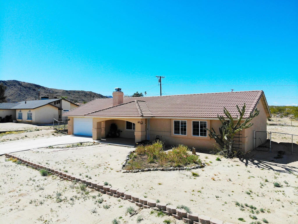 The Sherman Heights neighborhood has views to the north and lies in the transitions between 29 Palms and Joshua Tree and is on the slope between the highway and the Joshua Tree National Park. This has been meticulously maintained, has updated kitchen a bathrooms. There is also a new ''optimized power arbitrage'' solar system which provides extra targeted savings, that can be deliver paid or assumed along with all (<2 year) new appliances and water heater and water filtration and softener systems. The home is 3 Bedrooms and 2 bathrooms plus a Bonus room and dedicated laundry room along with a finished garage. The Living and kitchen spaces feature high ceilings a central wood fireplace and a ''U'' shaped floor plan. A hall way leads to Bedrooms, and Bathrooms and the laundry room off the kitchen leads to the Bonus room and garage. All rooms have ceiling fans and recessed lighting. The exterior of this home has no neighbor behind and well kept curbapeal in the front. Both sides have space for RV access. Just minuets from MCAGCC 29 palms, in close proximity to three Joshua Tree National Park entrances and Palm Springs, enjoy all the outdoors and night life the desert has to offer, and close proximity to Las Vegas, San Diego, Mexico and Los Angles.