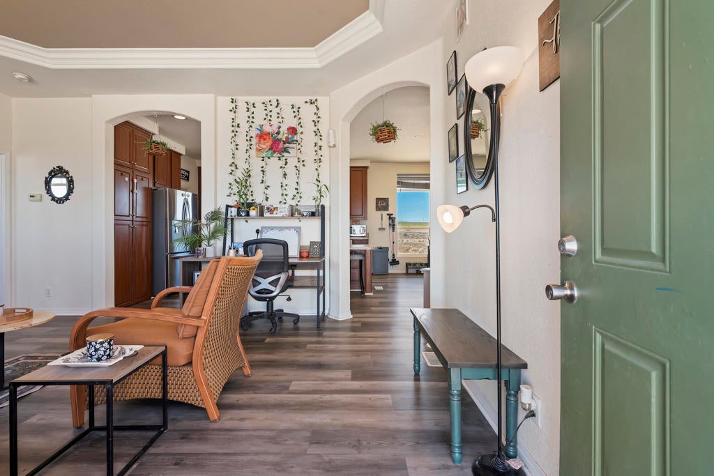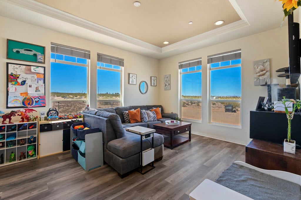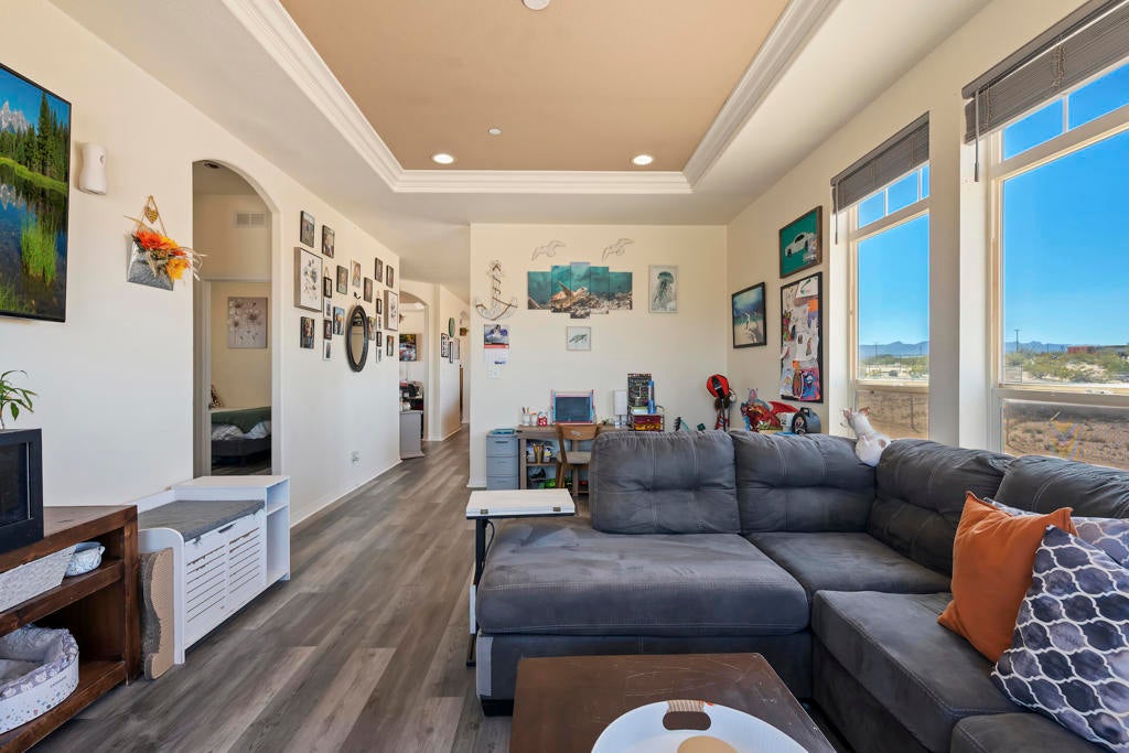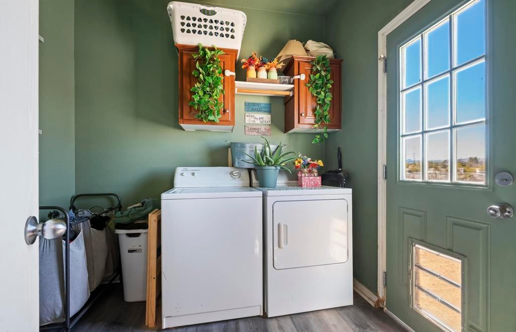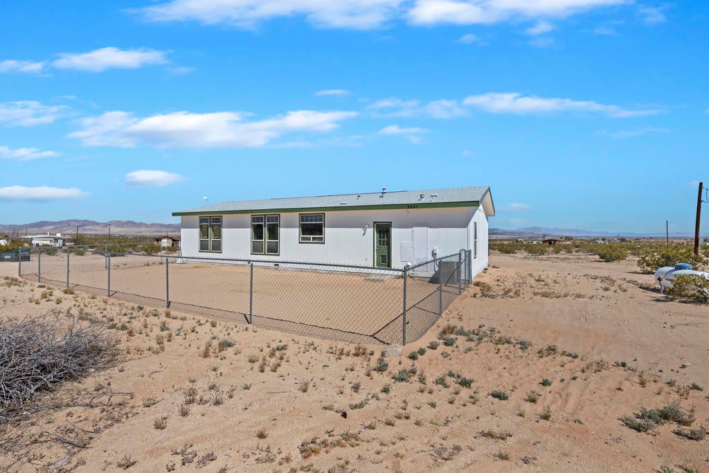 Welcome to your private desert retreat, where space, comfort, and stunning natural beauty come together on 2.5 expansive acres. This well-maintained 1,620 sq ft manufactured home, built in 2013, offers the perfect balance of peaceful seclusion and convenient access to town--located just a half mile down a well-maintained dirt road in a quiet, spacious neighborhood with no close neighbors.Positioned to capture breathtaking desert views in every direction, the home is thoughtfully placed so bedrooms greet the sunrise each morning, while the living areas enjoy glowing sunset views to the west. With minimal light pollution, the night skies here are nothing short of spectacular.Inside, you'll find a bright and airy layout enhanced by high ceilings and an abundance of natural light pouring in through double-pane windows throughout. The home features updated luxury vinyl flooring (just 2 years old) and matching cordless blinds, creating a clean, modern feel. Fresh exterior paint adds to the home's well-cared-for appeal.The spacious floor plan includes two separate living areas, offering flexibility for a home office, media room, or even the potential for a fourth bedroom conversion. The kitchen is open and inviting, complete with a walk-in, lighted pantry and a dining area perfect for gathering. Adjacent to the kitchen is a functional laundry room with its own exterior entrance, providing additional storage and convenience.The primary suite offers a comfortable retreat with a walk-in closet, double sinks, walk-in shower, linen cabinets, and built-in shelving. Two additional bedrooms and a second bathroom are thoughtfully situated near the secondary living space.Designed with both practicality and lifestyle in mind, the attached laundry room can be closed off from the rest of the home and features direct access to the fenced backyard, complete with a doggie door--ideal for keeping pets comfortable with access to shade, AC, and outdoor space.Additional highlights include a recently updated AC motor (2 years old), a clean and well-maintained under space, a $4,000 40-foot shipping container, and an $8,000 Home Depot Tuff Shed with attic space--perfect for storage, hobbies, or workspace needs.With endless room for toys, expansion, or simply enjoying the wide-open space, this property offers a rare opportunity to experience peaceful desert living without sacrificing modern comforts. Relaxation and tranquility truly await you here.