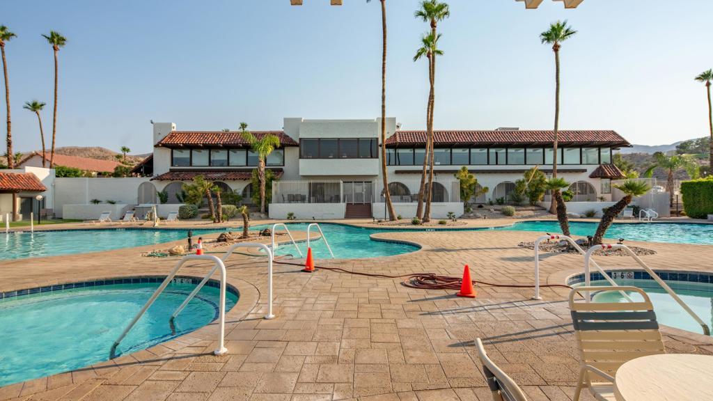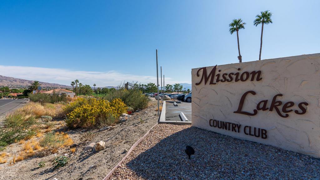 Welcome to this charming corner-lot home located in the highly desirable Mission Lakes Country Club--just 15 minutes from vibrant downtown Palm Springs!Perfectly positioned on a spacious corner lot, this light-filled and airy 2-bedroom, 2-bathroom residence offers added privacy, extra outdoor space, and great curb appeal. Situated in a peaceful setting, the home welcomes you with an open and inviting layout, enhanced by beautiful vinyl flooring that flows seamlessly throughout. Both bathrooms have been thoughtfully upgraded, providing a fresh, modern feel.The kitchen is equipped for convenience with a brand-new refrigerator installed in December and a new dishwasher added in November, making this home truly move-in ready. Natural light pours in through the windows, creating a warm and uplifting atmosphere in every room.Enjoy added energy efficiency with solar system in place with 18 panels on a purchase plan helping you stay comfortable year-round. As part of Mission Lakes Country Club, you'll have access to an array of resort-style amenities, including unlimited golf for two on a Ted Robinson-designed course, a sparkling pool and spa, fully equipped fitness center, pickleball courts, clubhouse dining, and more--offering an active and social lifestyle right at your doorstep.Perfectly located in a quiet and serene neighborhood, this home offers the best of both worlds: peaceful living with close proximity to shopping, dining, and entertainment in Palm Springs.Don't miss this opportunity to own a beautiful corner-lot home in a sought-after golf course community ready for its new owner to move in and enjoy!