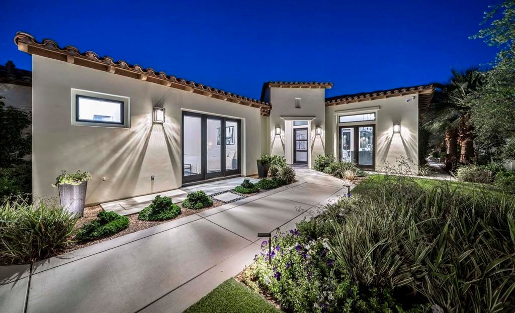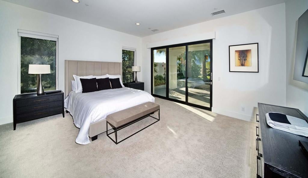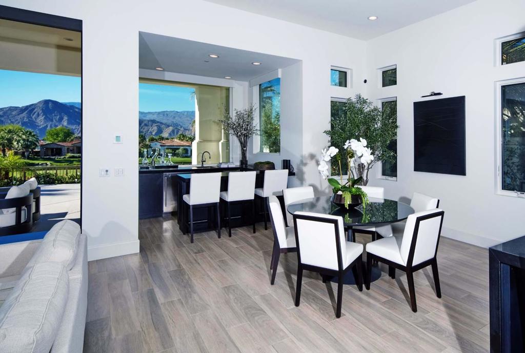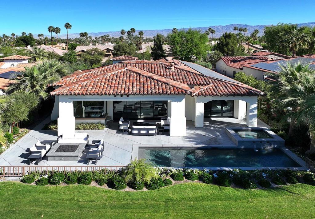 This newer-built Plan 531 inside Toscana Country Club is ideally situated on the 12th fairway of the Jack Nicklaus Signature North Course, offering beautiful south-facing views and a serene desert setting. Designed with contemporary finishes throughout, the home showcases an open-concept floorplan that seamlessly blends indoor and outdoor living, highlighted by expansive pocketing sliders that open to the outdoor spaces. Owned solar adds efficiency and long-term value.The spacious great room flows effortlessly into the dining area and gourmet kitchen, creating the perfect space for entertaining. The kitchen is centered around a large island with breakfast bar seating and is appointed with ample cabinetry, generous counter space, and premium Wolf and Sub-Zero appliances--ideal for both everyday living and hosting.The primary suite offers a private retreat with a spa-like en-suite bath, while guests are comfortably accommodated in the main home guest rooms, each with their own en-suite baths. Whether enjoying the sunshine, taking in the fairway views, or relaxing in the thoughtfully designed living spaces, this home embodies the best of desert luxury living.