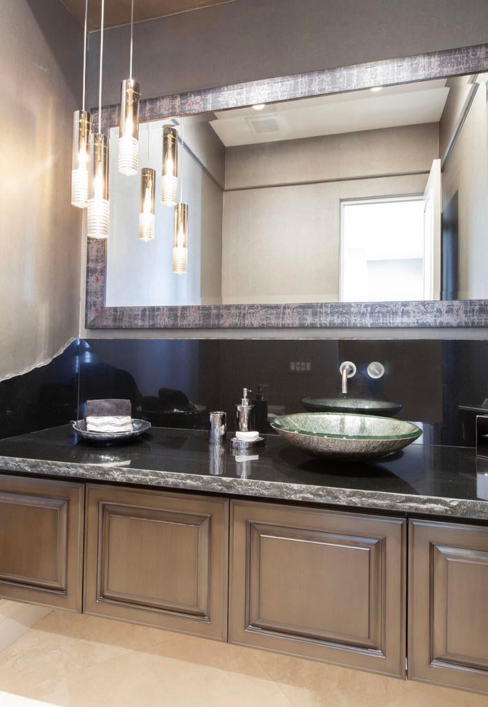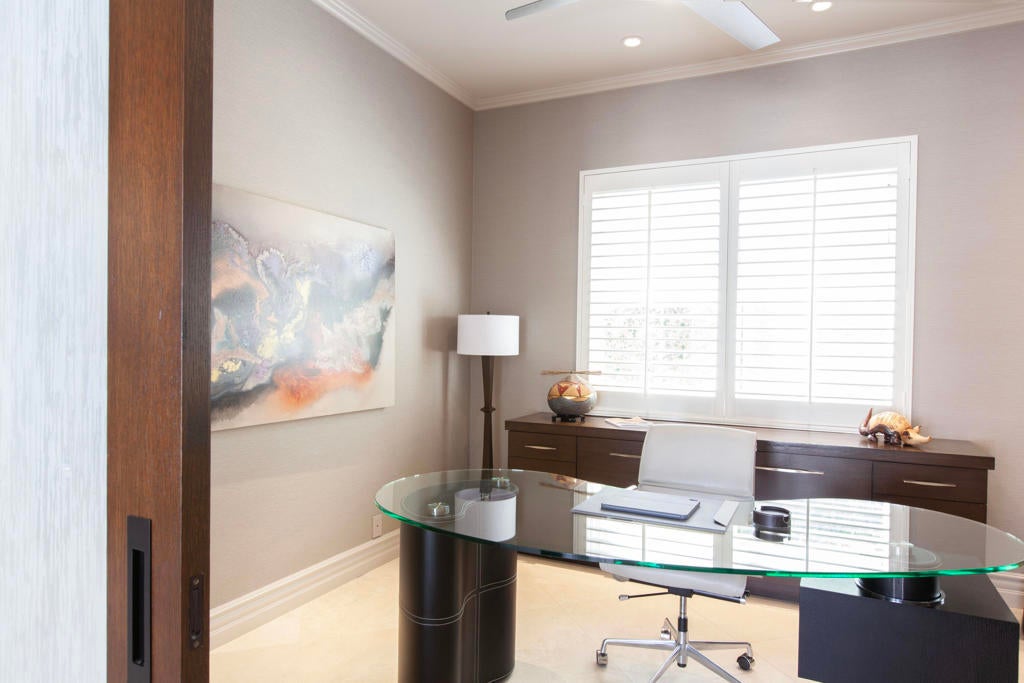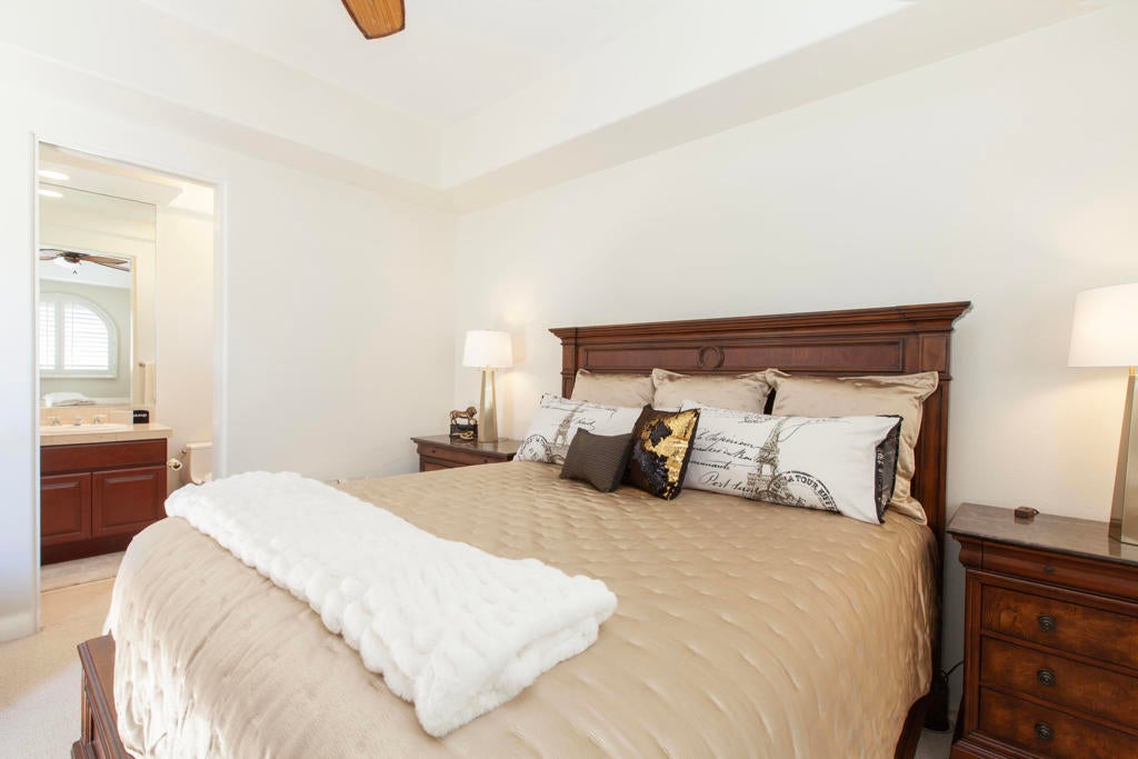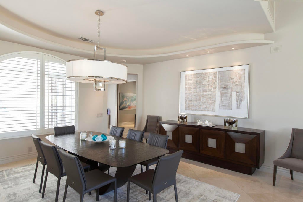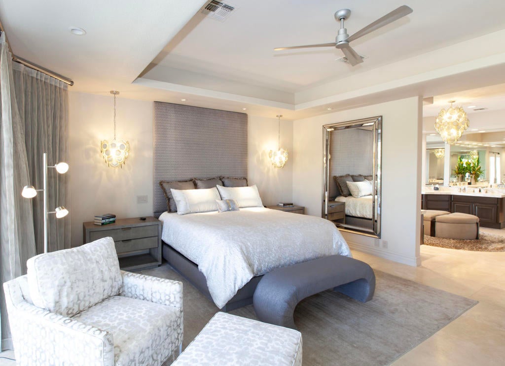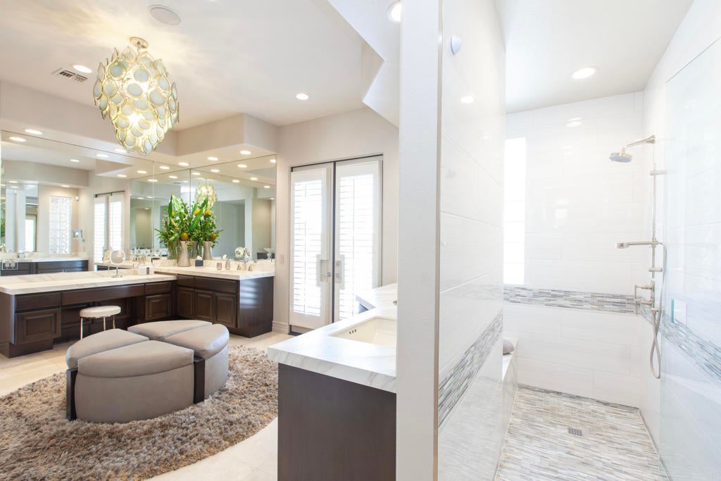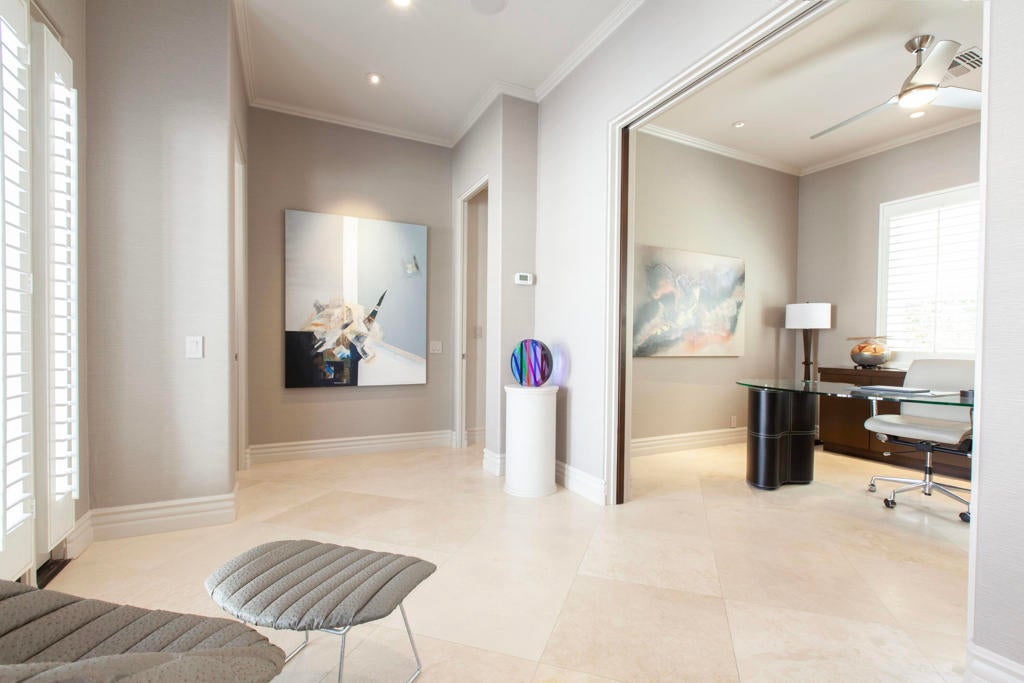 Set within the prestigious gates of Rancho La Quinta Country Club, this one-of-a-kind reimagined Montana I residence evokes the elevated design and refined aesthetic of a custom home, offering a rare blend of architectural sophistication, modern luxury, and breathtaking natural beauty. Positioned on an expansive 15,246 sq. ft. cul-de-sac lot, the home is elevated to capture sweeping views of the Santa Rosa Mountains, rugged foothills, and multiple fairways--creating a dramatic and ever-changing desert backdrop. A striking arrival begins with contemporary dual wood and frosted glass entry doors, opening to a custom half-moon marble-topped foyer accented by an art niche, designer lighting, custom paint, and curated wall coverings. Inside, the home has been completely redesigned to deliver a modern, gallery-like living experience. Expansive great room living is anchored by a cantilevered floating 8-foot fireplace beneath a sleek suspended TV wall, all set atop 24'' x 24'' travertine stone flooring that flows seamlessly throughout. The reimagined floor plan includes a reshaped dining area and a sophisticated open-concept layout ideal for both intimate living and grand entertaining. The designer kitchen is a true showpiece, featuring quartz countertops, a large center island, and premium stainless appliances including a Sub-Zero refrigerator, Wolf microwave and double ovens, Bosch dishwasher, and wine refrigeration.The primary suite is a luxurious retreat, thoughtfully redesigned with a floating 5-foot fireplace and modern TV wall, while the spa-inspired bath offers a step-in, step-out shower, soaking tub, and French doors opening directly to the resort-style backyard. One guest bedroom has been transformed into a contemporary office, while two guest casitas provide exceptional privacy and flexibility for visitors. Outdoor living reaches new heights with a spectacular resort pool environment featuring a large swimmer's pool, separate party pool, dual waterfalls, spa, and an elevated viewing deck--all designed to maximize the stunning panoramic setting. A spacious BBQ island anchors the entertainer's patio, while the fenced backyard adds both definition and functionality. Additional enhancements include custom window coverings with electronically controlled shades, newly painted exterior, and professionally redesigned landscaping. Three-car garage features air conditioning, epoxy flooring and built-in storage. See Improvements List. Turnkey Furnished