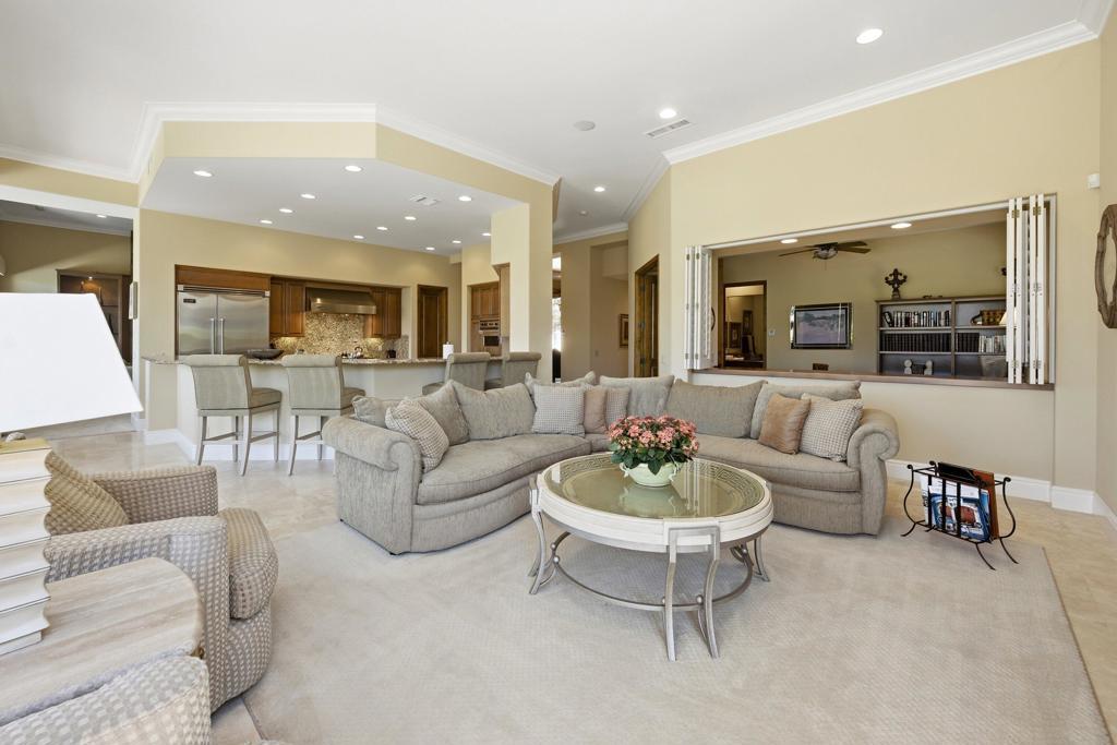 Located on one of the most sought-after streets in PGA West, this exceptional Summit home is perfectly positioned on the private Tom Weiskopf course, capturing some of the most iconic views in the entire community. The property overlooks the famed Bermuda Triangle, spanning holes 10, 11, and 12, and showcases a rare combination of three fairways, lake views, and breathtaking southwestern mountain vistas. This is one of the most desirable view corridors in PGA West, offering depth, sunshine, and a true resort-style setting. Well constructed with a highly functional floor plan, the home is designed for both comfortable living and effortless entertaining. The layout includes a private casita, ideal for guests, along with spacious living areas that seamlessly connect to the outdoors. The kitchen is equipped with premium Viking appliances and opens to the main living space, enhancing the indoor-outdoor flow that PGA West buyers are looking for. The backyard is built for desert living, featuring an oversized pool and spa, built-in BBQ, and expansive patio space positioned to fully capture the golf course, lake, and mountain views. A gated courtyard entry with a tranquil water feature creates a welcoming and private entrance. Offered turnkey furnished, including a golf cart, this property allows for immediate enjoyment. The home has also been pre-inspected with a report available, providing added transparency and confidence. Opportunities with this level of view, location, and setting on the Weiskopf private course are hard to find.