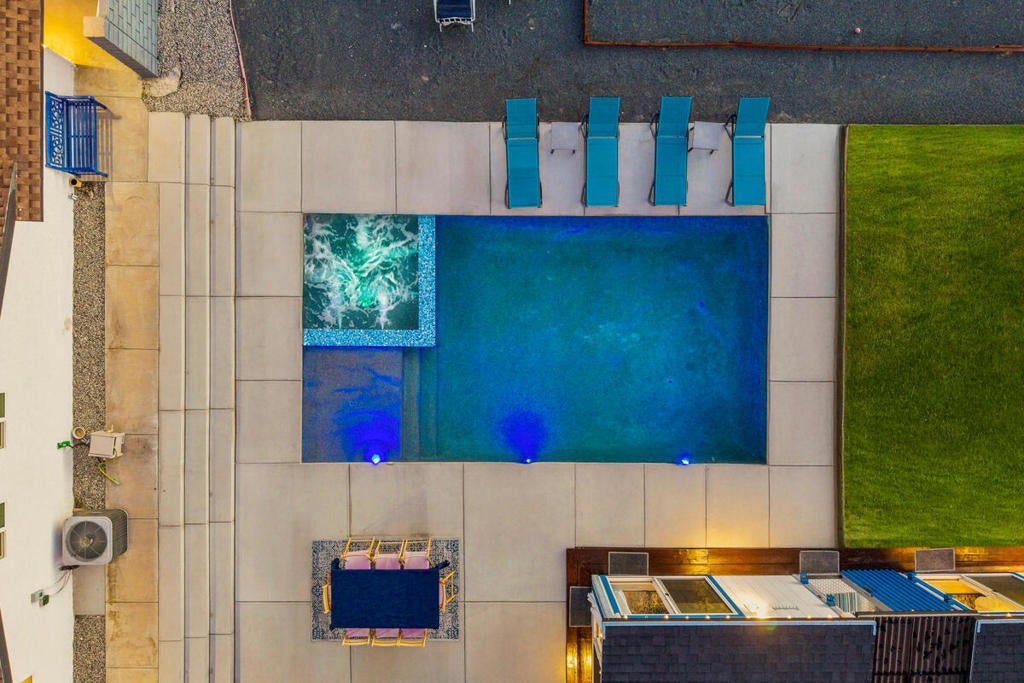Now offered at $529,000, start living your dream today! A private desert playground set on nearly half an acre awaits. This fully refreshed move-in ready retreat is ready for you to enjoy from day one. The showpiece is the saltwater pool and spa, surrounded by unobstructed San Jacinto and San Gorgonio Mountain views; perfect for sun-soaked afternoons, golden-hour swims, and starlit dips. Designed for entertaining, the backyard features an outdoor kitchen for sunset dinners, an outdoor bathroom with shower, poolside cabanas, a bocce ball court, and a glowing fire pit for gatherings that last late into the evening. Two RV parking areas, one with full hookups, add flexibility and rare functionality. Inside, an open and light-filled layout offers generous living spaces, while the private casita with its own entrance and parking is ideal for guests, extended family, a private retreat, or rental income. With extensive updates, owned solar, resort-style amenities, and a prime location near Palm Springs dining, shopping, world-class golf, resorts, and wellness destinations, this is not a home you will want to miss!