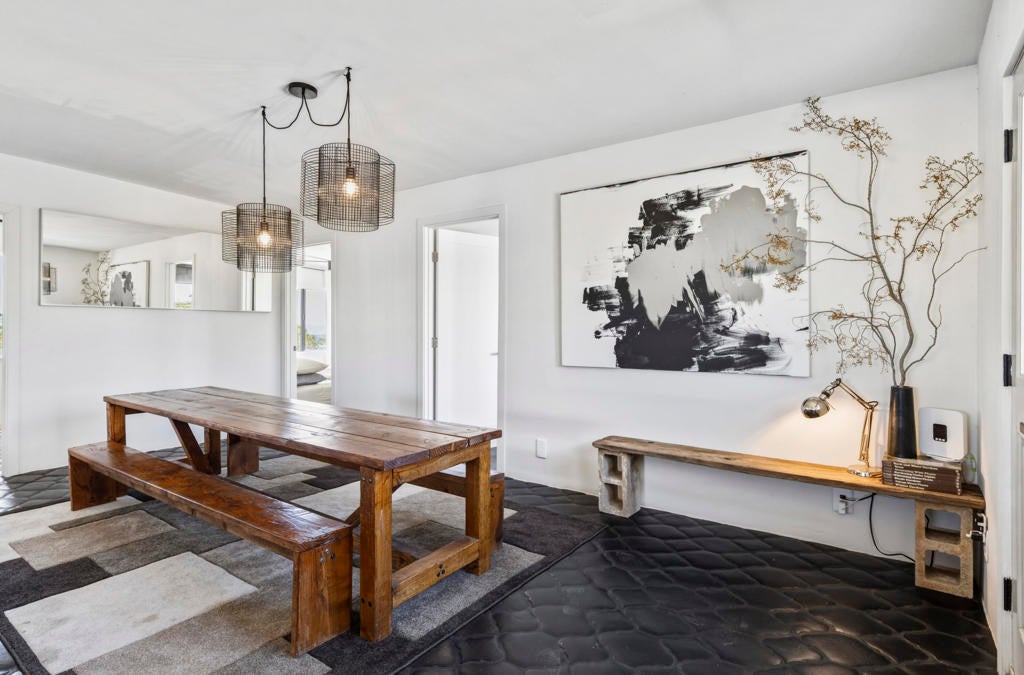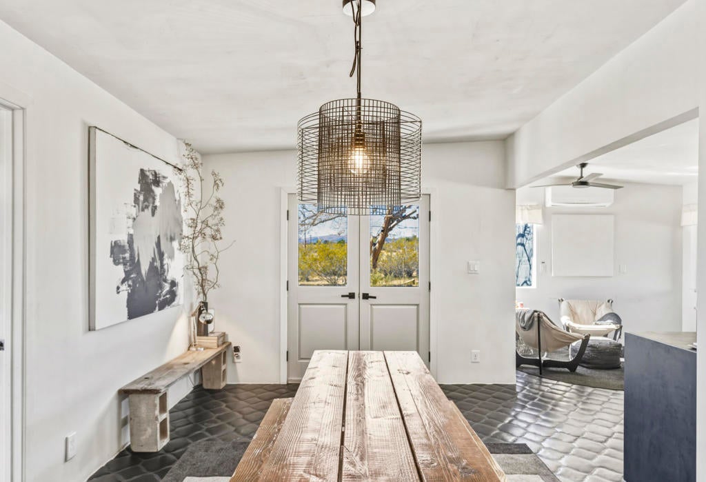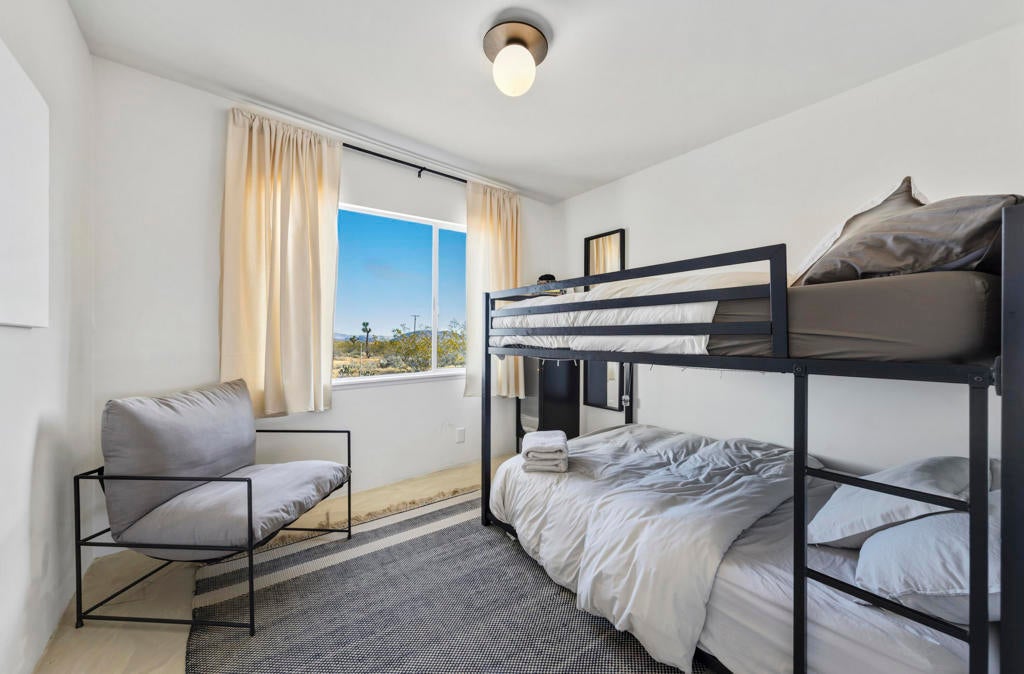 Nestled just a stone's throw from the iconic La Copine restaurant, this 1962 mid-century desert cottage is a rare gem in the heart of Yucca Valley's trendy Flamingo Heights. Set on an expansive 2.7-acre lot of stunning high desert landscape, this property is a dream waiting to be realized. With 2 bedrooms, 2 bathrooms, and an incredible bonus room that can flex as a private office or an extra bedroom, the home offers both charm and versatility for modern living.Inside, vintage character meets thoughtful upgrades, including a show-stopping Smeg refrigerator that adds a pop of retro elegance to the kitchen. Original architectural elements celebrate the home's mid-century roots, while the open layout invites your creative vision to craft the ultimate desert escape.Step outside, and the magic continues. The expansive outdoor spaces feature breathtaking panoramic desert vistas and a sense of peace and privacy that's hard to match. Whether you're hosting friends, stargazing under the crystal-clear skies, or embracing your inner child on the built-in in-ground trampoline, this property is designed for unforgettable moments.All this, just minutes from Joshua Tree National Park, local shops, and a vibrant dining scene. Whether you're seeking a serene retreat, a creative haven, or an investment opportunity, this property perfectly balances style, seclusion, and convenience. Your desert oasis awaits.