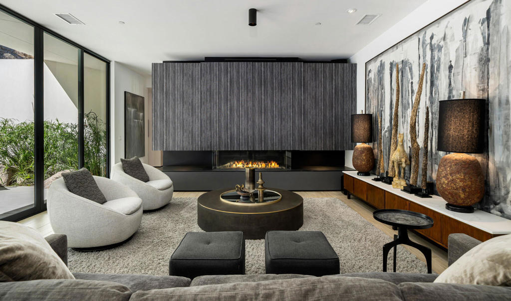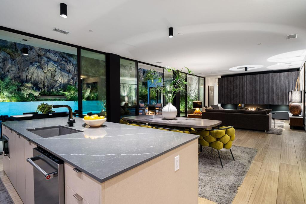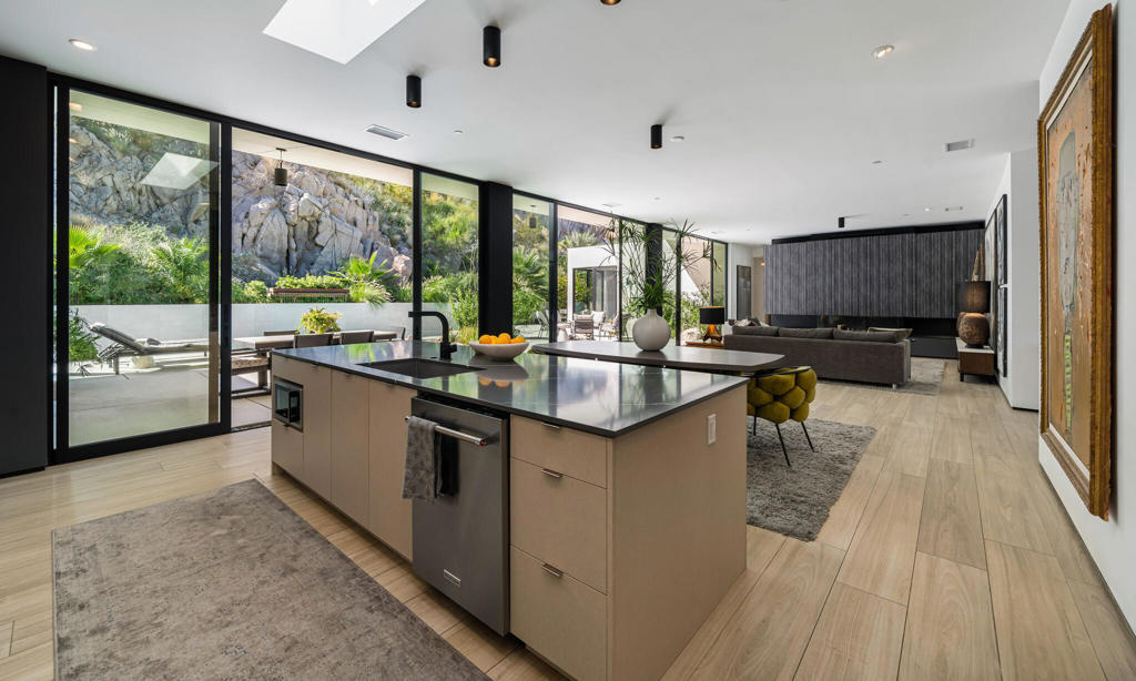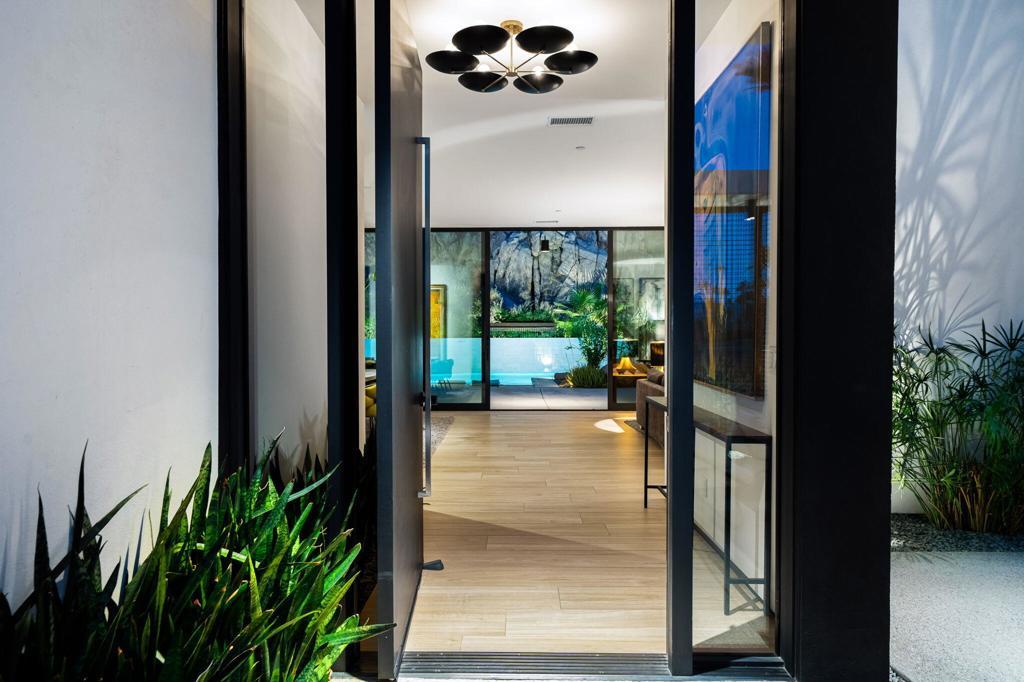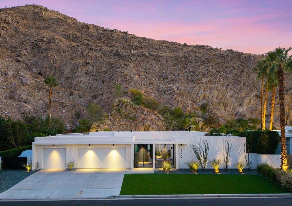 Stunning Mid-Century Modern Home in Historic Indian Wells Country Club. Built in 2021, this 4BD/3BA residence is a masterful blend of new construction and classic mid-century modern design, showcasing high-end finishes and thoughtful craftsmanship throughout. Perfectly positioned within the Indian Wells Country Club, this home offers classic style and effortless indoor-outdoor living, with sweeping fairway views from the front courtyard and a truly exceptional setting unique to only a handful of properties in Indian Wells CC--nestled in the mountain with a completely private backyard.From the moment you enter, you're welcomed by a breathtaking mountain backdrop and a sophisticated open floor plan that features high ceilings, custom plank porcelain flooring, smooth coat interior walls, dimmable recessed lighting, and expansive sliding glass doors in every room that fill the space with natural light. Richly appointed bedrooms are complemented by spa-inspired bathrooms, including two serene outdoor showers. The gourmet kitchen is a focal point of the home, featuring sleek quartz countertops and stainless-steel appliances, all overlooking a spacious great room with a striking fireplace and three floor-to-ceiling glass sliding doors that provide a flawless transition to your private desert retreat. Outside, take in a picturesque desert setting complete with a hybrid saltwater lap/swim pool with multicolored lighting, a gas fire pit, low-maintenance natural landscaping, and extensive outdoor lighting--perfectly designed for both daytime lounging and evening entertaining.Additionally, a fully detached, self-contained casita adds versatility, equipped with a full kitchen and washer/dryer--ideal for guests or extended stays. Bonus: No HOA dues, owned solar system, 3-zone controlled HVAC, artificial turf, oversized 3-car garage with golf cart parking, and just a 5-minute walk to the Indian Wells CC clubhouse. This is desert living reimagined--modern luxury, classic charm, and a prime location.