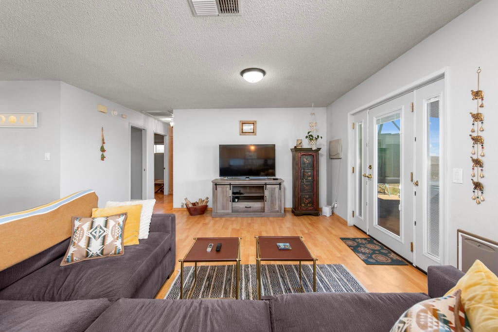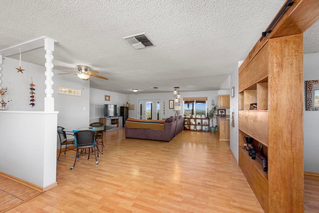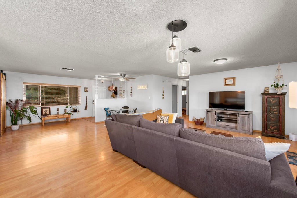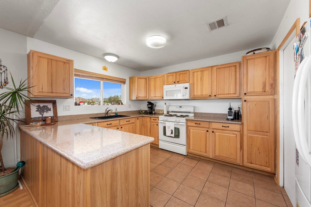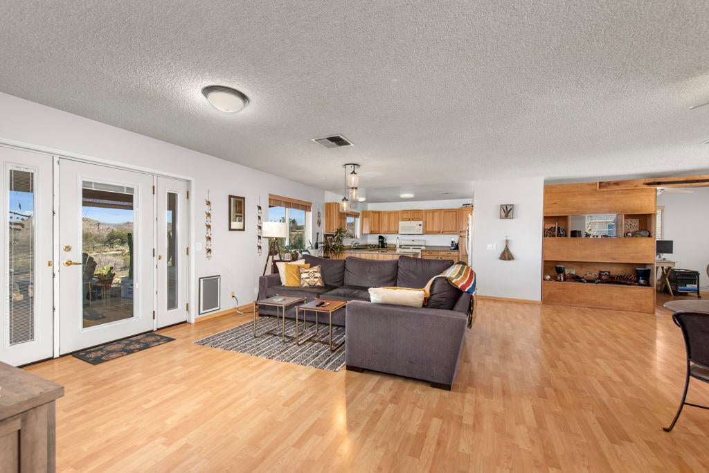 Experience elevated Joshua Tree living at 6773 San Angelo, where sweeping views over Joshua Tree Village, generous living space, and a peaceful close-to-town setting come together in one rare opportunity. This 2 bedroom, 2 bathroom home offers approximately 1,500 square feet of living space in a location that feels quiet and private while still being close enough to enjoy the shops, dining, amenities, nearby hiking trails, and convenient access to the Joshua Tree National Park entrance that make this area so desirable. Set in an ideal orientation to capture beautiful eastern views and natural light, the home features upgraded dual pane windows and an open concept layout that makes the most of the scenery. The spacious bonus room has been sectioned off with a wood bookshelf to create a flexible office area, perfect for working from home, creative space, or added functionality. The guest bedroom offers direct access to the backyard patio, while the primary suite connects through the bathroom to the expansive 2 car garage, creating a practical mudroom-style entry. Outside, the large backyard offers exceptional potential to create the desert retreat you have been dreaming of. There is plenty of space to add an infinity-edge pool that takes full advantage of the property's elevated setting and sweeping views, along with room for an ADU, workshop, outdoor entertaining area, or other future improvements. Both sides of the property offer room for RV parking, trailers, and recreational vehicles, while the front yard provides ample additional parking alongside the oversized 2 car garage. Properties with this combination of square footage, elevated views, usable outdoor space, and proximity to Joshua Tree Village are hard to find. Whether you are looking for a full-time residence, desert getaway, or investment opportunity, 6773 San Angelo is a property you will not want to miss. Schedule your showing today.