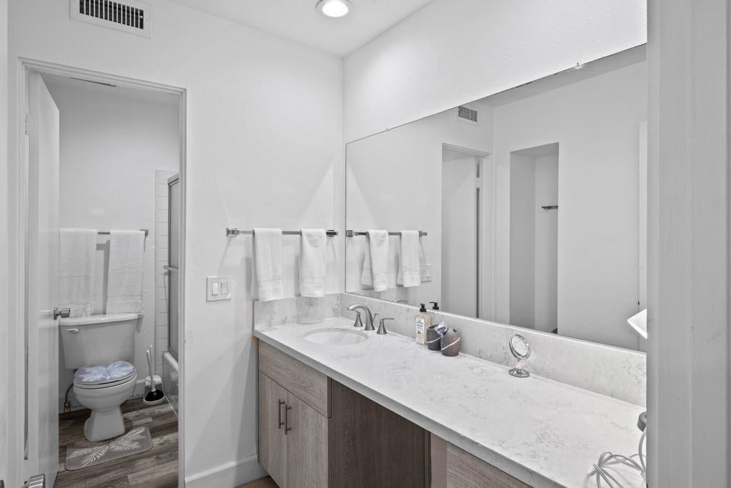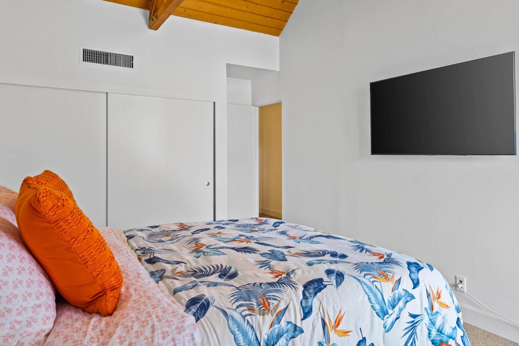 Airbnb/short-term-rental-friendly in Indian Wells, this remodeled and furnished 2BD/2BA end-unit condo in guard-gated Mountain Cove offers a flexible two-level layout with mountain, desert, and greenbelt views. The main level features an open living area, private patio, and updated kitchen with quartz counters, stainless appliances, custom storage, and an oversized island with bar seating. Upstairs, both bedrooms open to a shared balcony that captures the surrounding mountain setting, ideal for morning coffee or evening sunsets. Newer carpet in the living areas and luxury vinyl plank in the kitchen and baths create a polished, low-maintenance finish. Just a short walk to community pools and citrus-lined paths, this lock-and-leave retreat also benefits from Indian Wells resident perks, including discounts at select golf, dining, spa, and resort destinations. A strong fit for a vacation rental, second home, or full-time residence within Mountain Cove's 7-night minimum rental policy. Buyer to verify HOA, city rules, and lease-land terms. Located south of Highway 111 near golf, dining, shopping, and El Paseo. Turnkey furnished per written inventory. Enjoy access to Indian Wells Golf Resort, the Tennis Garden, and central valley conveniences from this low-maintenance desert home base.