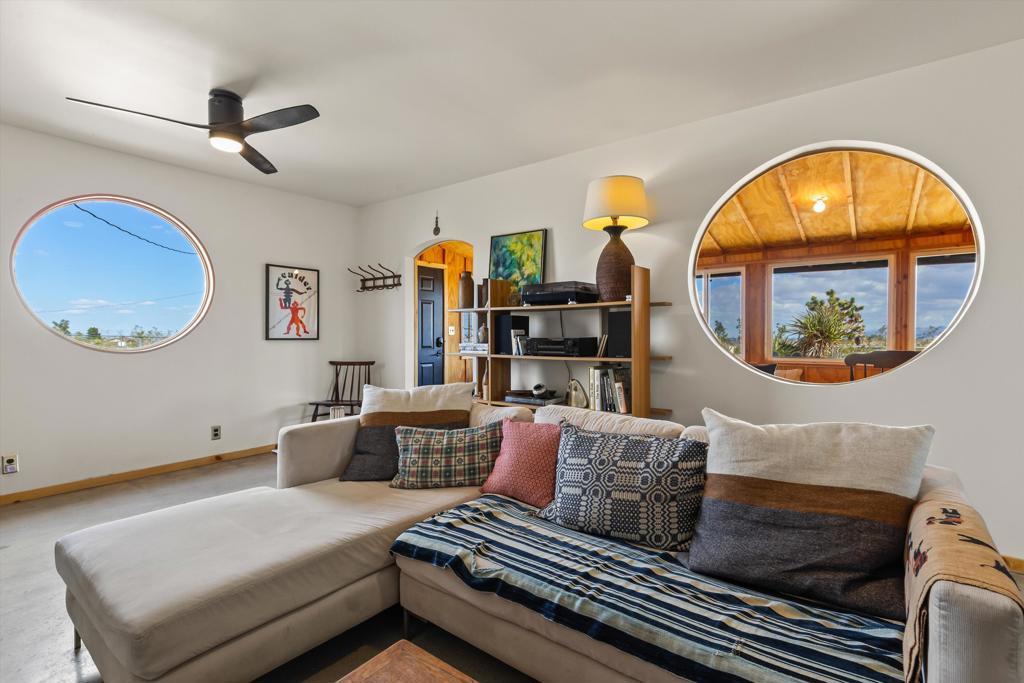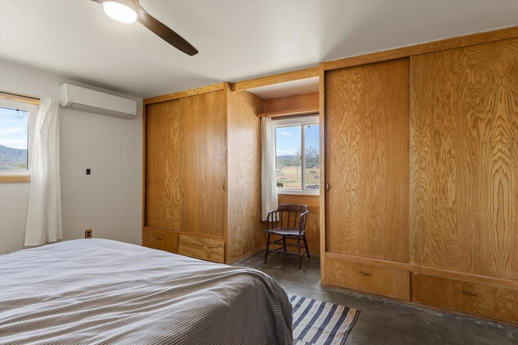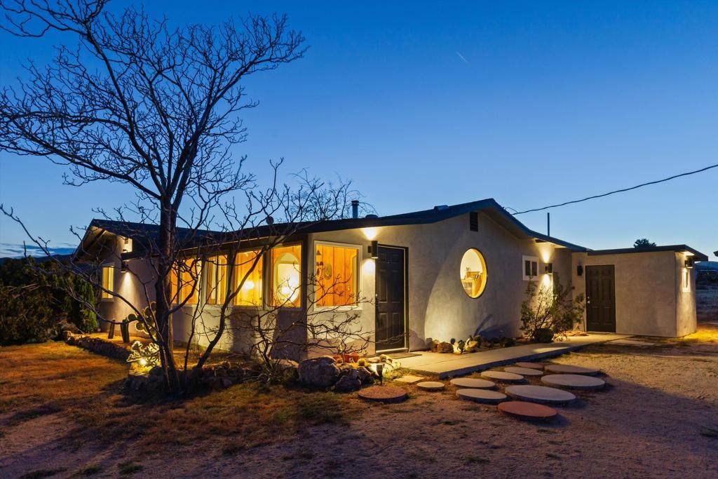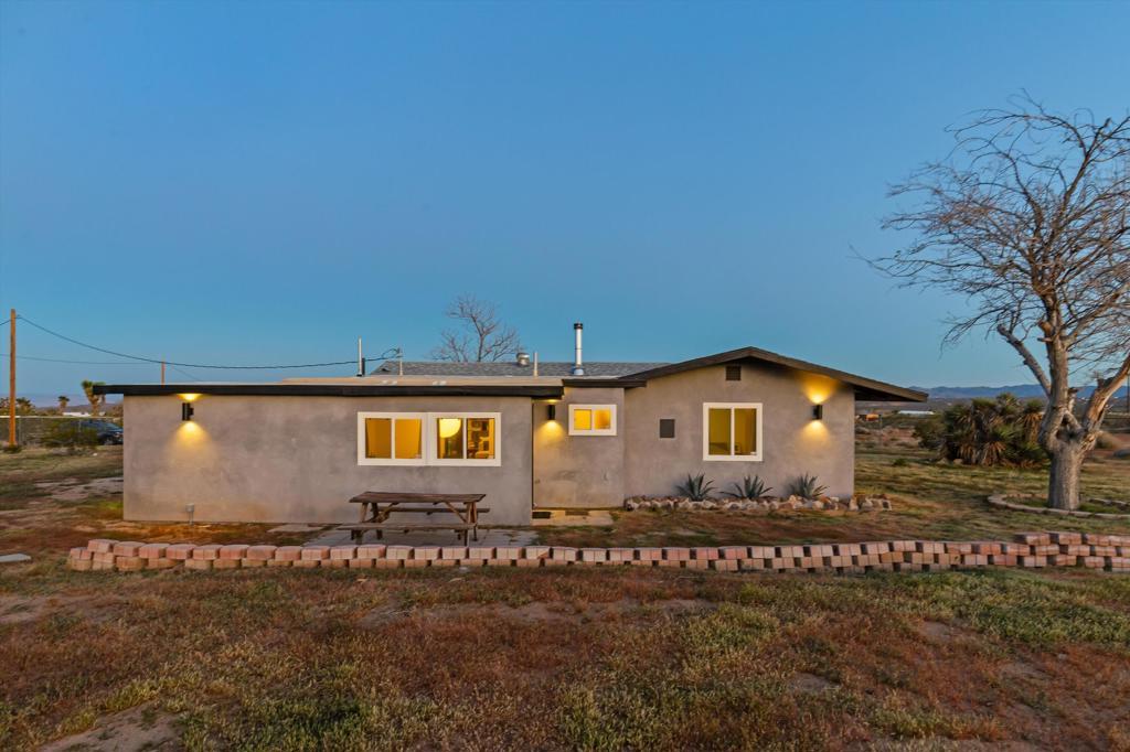 Set on 2.5 acres in Flamingo Heights, this beautifully reimagined desert home opens to wide horizons and a rare sense of quiet, just moments from protected desert land near Black Lava Butte.Originally built in 1957 and thoughtfully transformed, the home blends clean, modern design with warmth and ease. Light moves softly through the interiors, creating a calm, grounded atmosphere that feels both elevated and comfortable.The home is anchored by a main bedroom, with two additional large, flexible rooms used for sleeping, along with a fully redesigned bathroom and a new kitchen featuring updated appliances and simple, refined finishes. Subtle textures, custom carpentry, and carefully selected lighting carry throughout, giving the home a cohesive, design-forward feel.Nearly every major system has been updated, including new septic, plumbing, electrical, insulation, drywall, a five-zone mini split system, tankless water heater, and wood burning stove.The fenced yard creates an intimate outdoor setting, while the full 2.5 acre parcel extends well beyond, offering space, privacy, and room to grow. A separate, detached oversized two-car garage adds flexibility and convenience.Well located near Joshua Tree National Park, Pioneertown, and local favorites like La Copine, with access to hiking and some of the best stargazing in the area. Comfortable as a full-time home, weekend escape, or a thoughtfully designed rental.