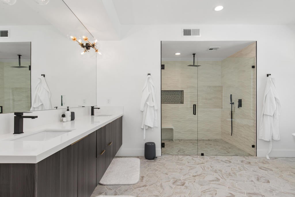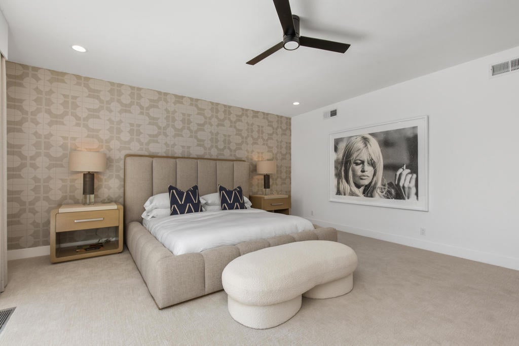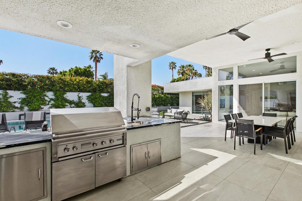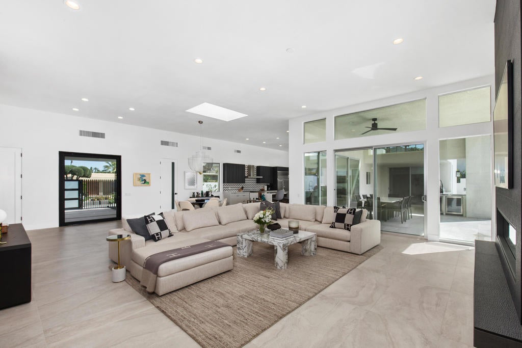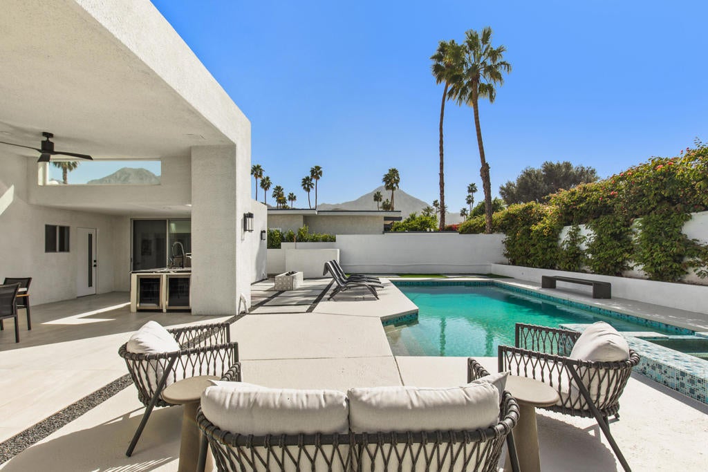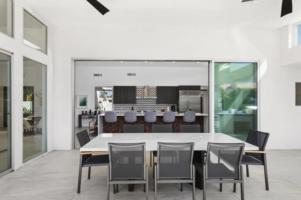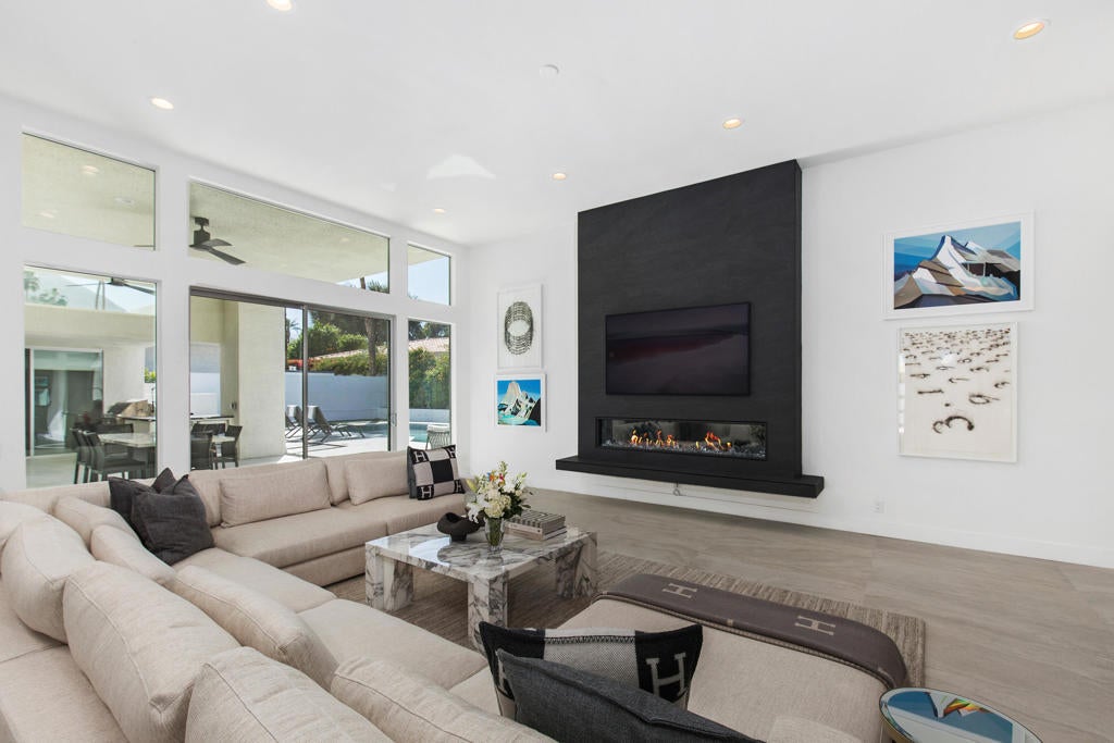 Available NOW! Turnkey- For Summer 2025 and Season 2026 Ready for you- ask for discount prices for the summer and multiple months.This remarkable contemporary luxury home, completely renovated, is nestled in one of Indian Wells' most prestigious neighborhoods and is available for rent. Upon entry, you're greeted by an impressive all-glass center pivot architectural door, setting the stage for an exceptional desert living experience. Inside, the spacious open floor plan features expansive dining areas, soaring 12-foot ceilings, a captivating ''Fire and Ice'' fireplace, and stylish modern appointments throughout.Enjoy seamless indoor/outdoor living with an impressive 18-foot floor-to-ceiling pocket door and beautiful porcelain tile flooring both inside and out. The newly renovated gourmet Chef's kitchen boasts modern cabinetry, quartz countertops, a Wolf double oven range, Sub Zero refrigerator/freezer, a chic glass-enclosed wine closet, and a separate walk-in pantry.Retreat to the luxurious Master Primary Suite overlooking the pool and stunning mountain views, complete with a spa-like bath and expansive walk-in closet for ultimate comfort and relaxation. Outside, the private outdoor living space offers a resort-like experience for you and your guests, with a covered living/dining area, outdoor kitchen, PebbleTec pool and spa, Cabo style cabanas, a spacious firepit with lounge area, and a putting green. Prices vary on dates and length of stay!
