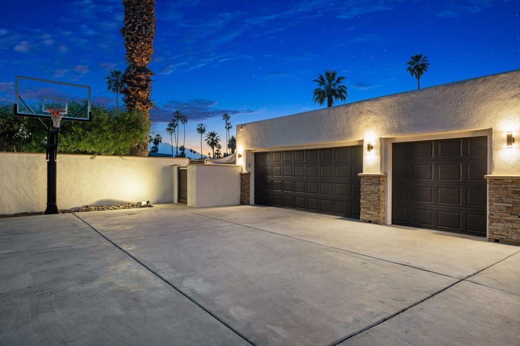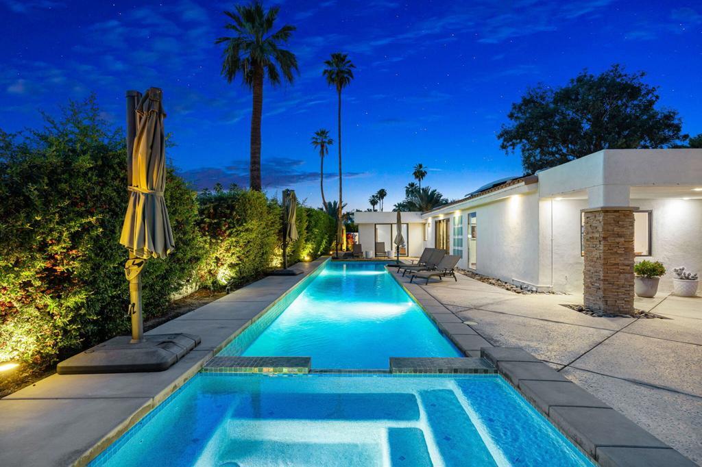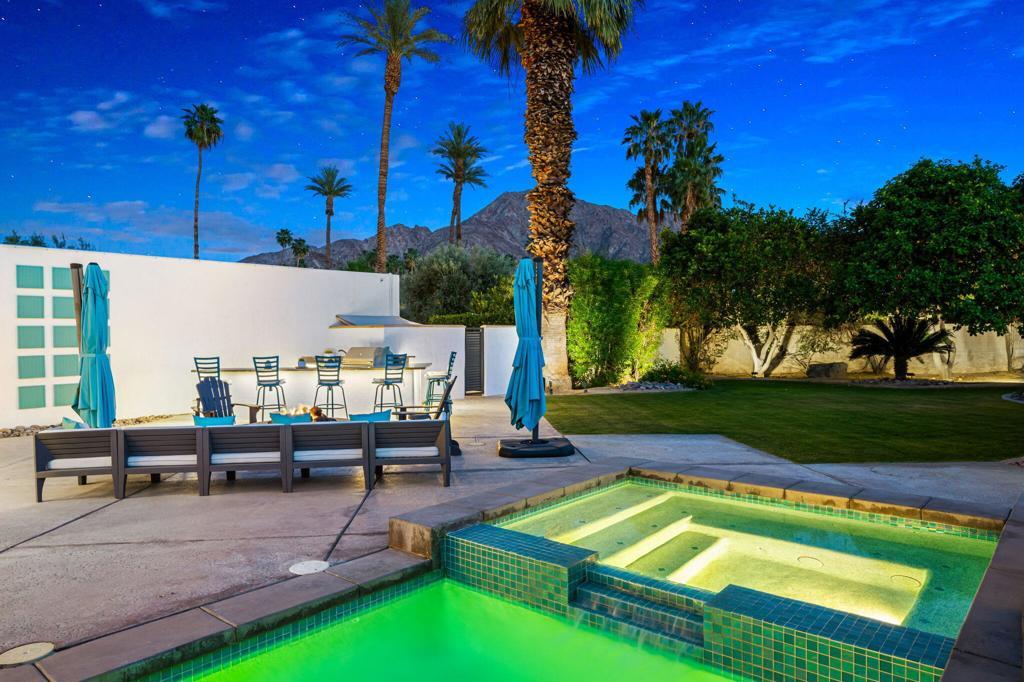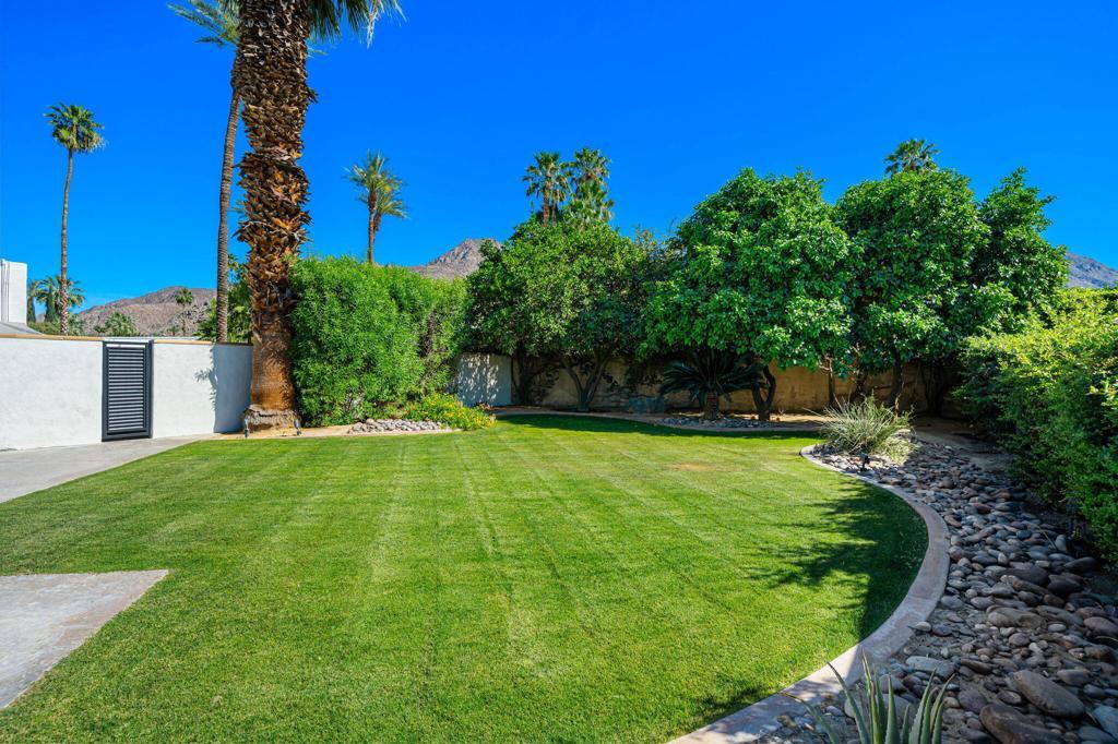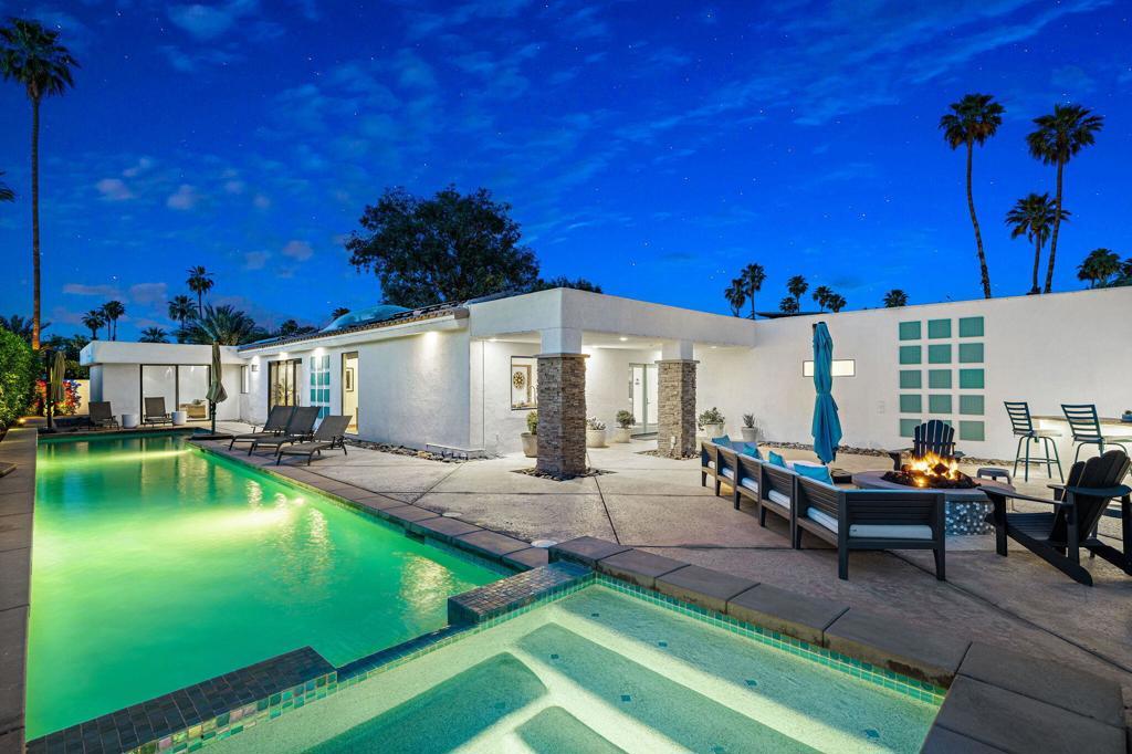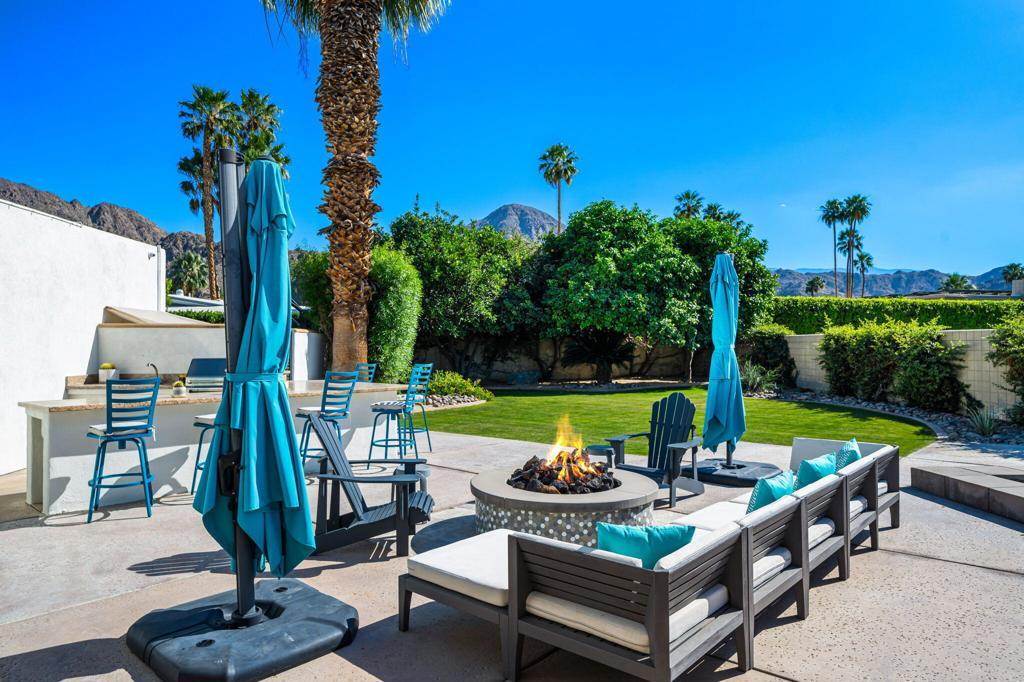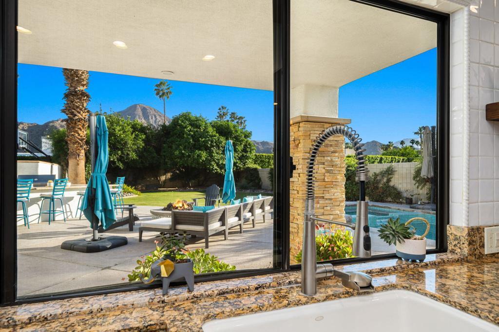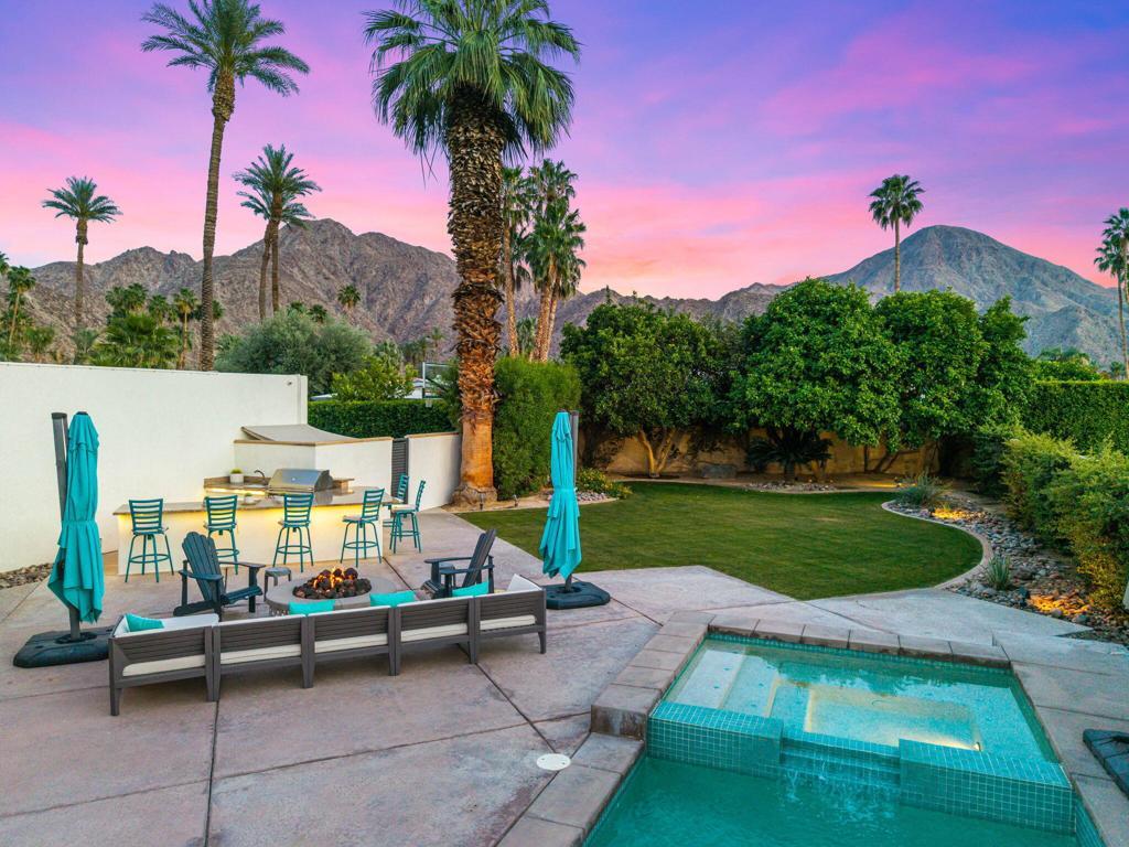 Indian Wells Luxury on .43 Acres | 84 Solar Panels | Lap Pool + Eisenhower Views. Desert modernism doesn't get more authentic than this. Conceived by a celebrated local designer, Vicki McDermott in 1978, this single-story Indian Wells estate carries the architectural DNA of the Palm Springs design tradition. Tasteful contemporary updates make it feel completely at home in 2026. Timeless character, gracious proportions, and a one-of-a-kind provenance that simply cannot be replicated. At 5,323 square feet on nearly a half acre, this is the largest home and lot on the street. A genuinely custom offering at a scale that is increasingly rare in Indian Wells. The soaring great room, with ceilings over 22 feet high, two statement fireplaces, travertine floors, exposed beams, and solid alder wood doors and trim throughout deliver architectural character that no newer construction can touch. Five bedrooms offer flexible configurations, a primary suite and junior suite each with private en-suite baths, two additional bedrooms sharing a Jack-and-Jill bath, a dedicated guest bath off the playroom, and a private walled entry courtyard with a tranquil water feature. Multiple sets of sliding glass doors create seamless indoor-outdoor flow out to your private desert oasis with panoramic mountain views. Outside, the lap pool and spa anchor a true entertainer's paradise. Built-in Alfresco professional grill, outdoor bar with sink, gas fire pit, full mister system, and smart exterior lighting throughout. The fully walled grounds are framed by mature privacy hedges, a towering Washingtonian palm, and a working citrus and fig orchard, tangelo, orange, and fig trees that produce generously in season. The 84-panel owned solar array means energy costs that are a fraction of comparable properties. A Tesla EV charger, epoxy-sealed garage floor, and full permitted natural gas system replacement round out an infrastructure story with zero deferred maintenance questions. No HOA. No gates. No monthly fees. Indian Wells prestige, walking distance to Eldorado Country Club, Indian Wells Country Club, and The Vintage Club, and minutes to the BNP Paribas Open and El Paseo. Whether you are here for tournament season or year-round desert living, this is complete California freedom on your own terms. Furnishings available separately. This home can be turn-key for the right buyer.