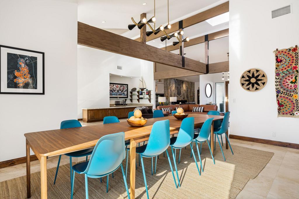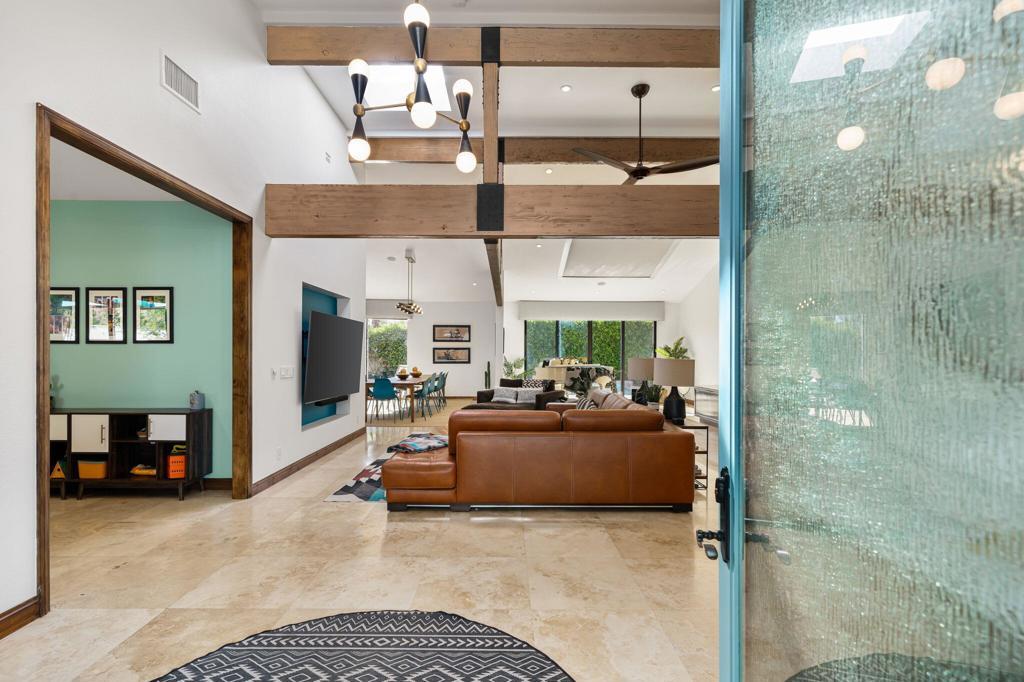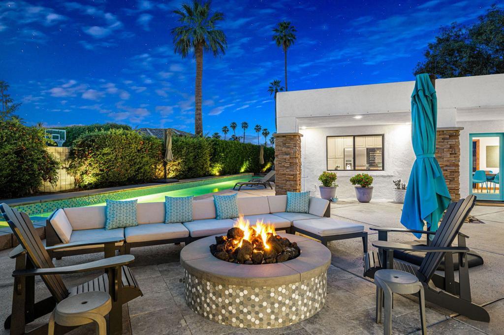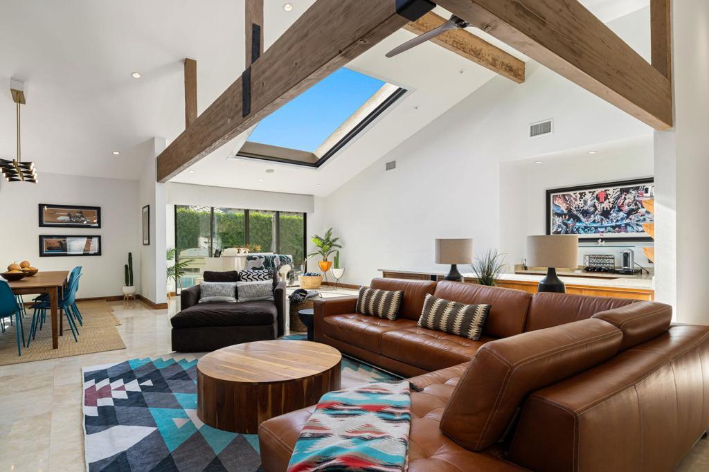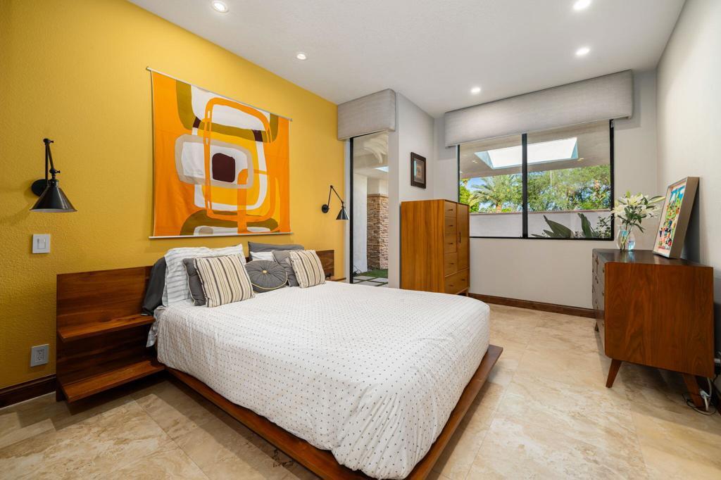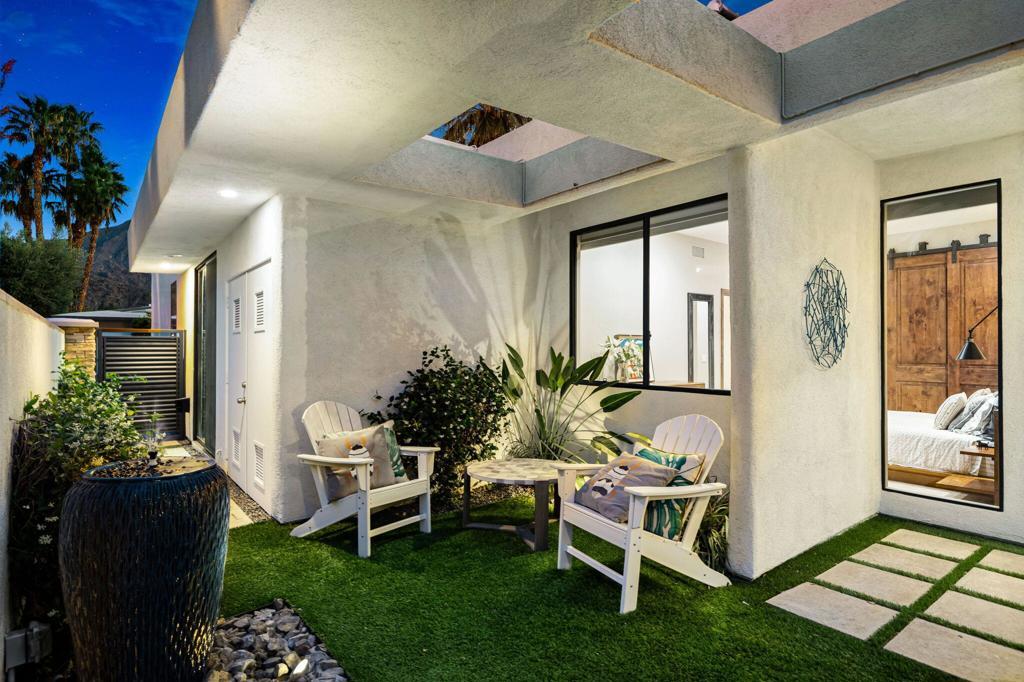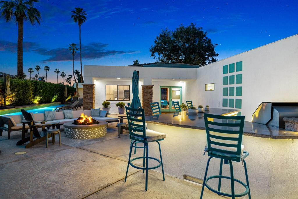 Indian Wells Luxury on .43 Acres | 84 Solar Panels | Lap Pool + Eisenhower Views. Desert modernism doesn't get more authentic than this. Conceived by a celebrated local designer, Vicki McDermott in 1978, this single-story Indian Wells estate carries the architectural DNA of the Palm Springs design tradition. Tasteful contemporary updates make it feel completely at home in 2026. Timeless character, gracious proportions, and a one-of-a-kind provenance that simply cannot be replicated. At 5,323 square feet on nearly a half acre, this is the largest home and lot on the street. A genuinely custom offering at a scale that is increasingly rare in Indian Wells. The soaring great room, with ceilings over 22 feet high, two statement fireplaces, travertine floors, exposed beams, and solid alder wood doors and trim throughout deliver architectural character that no newer construction can touch. Five bedrooms offer flexible configurations, a primary suite and junior suite each with private en-suite baths, two additional bedrooms sharing a Jack-and-Jill bath, a dedicated guest bath off the playroom, and a private walled entry courtyard with a tranquil water feature. Multiple sets of sliding glass doors create seamless indoor-outdoor flow out to your private desert oasis with panoramic mountain views. Outside, the lap pool and spa anchor a true entertainer's paradise. Built-in Alfresco professional grill, outdoor bar with sink, gas fire pit, full mister system, and smart exterior lighting throughout. The fully walled grounds are framed by mature privacy hedges, a towering Washingtonian palm, and a working citrus and fig orchard, tangelo, orange, and fig trees that produce generously in season. The 84-panel owned solar array means energy costs that are a fraction of comparable properties. A Tesla EV charger, epoxy-sealed garage floor, and full permitted natural gas system replacement round out an infrastructure story with zero deferred maintenance questions. No HOA. No gates. No monthly fees. Indian Wells prestige, walking distance to Eldorado Country Club, Indian Wells Country Club, and The Vintage Club, and minutes to the BNP Paribas Open and El Paseo. Whether you are here for tournament season or year-round desert living, this is complete California freedom on your own terms. Furnishings available separately. This home can be turn-key for the right buyer.